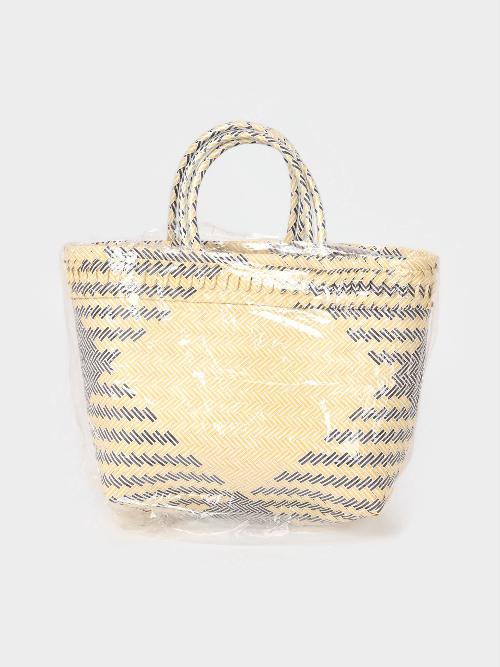 Сумка плетёная, 30x15x35 см, пластик, бежевая с чёрным, 15x30x30 см., Индонезия
