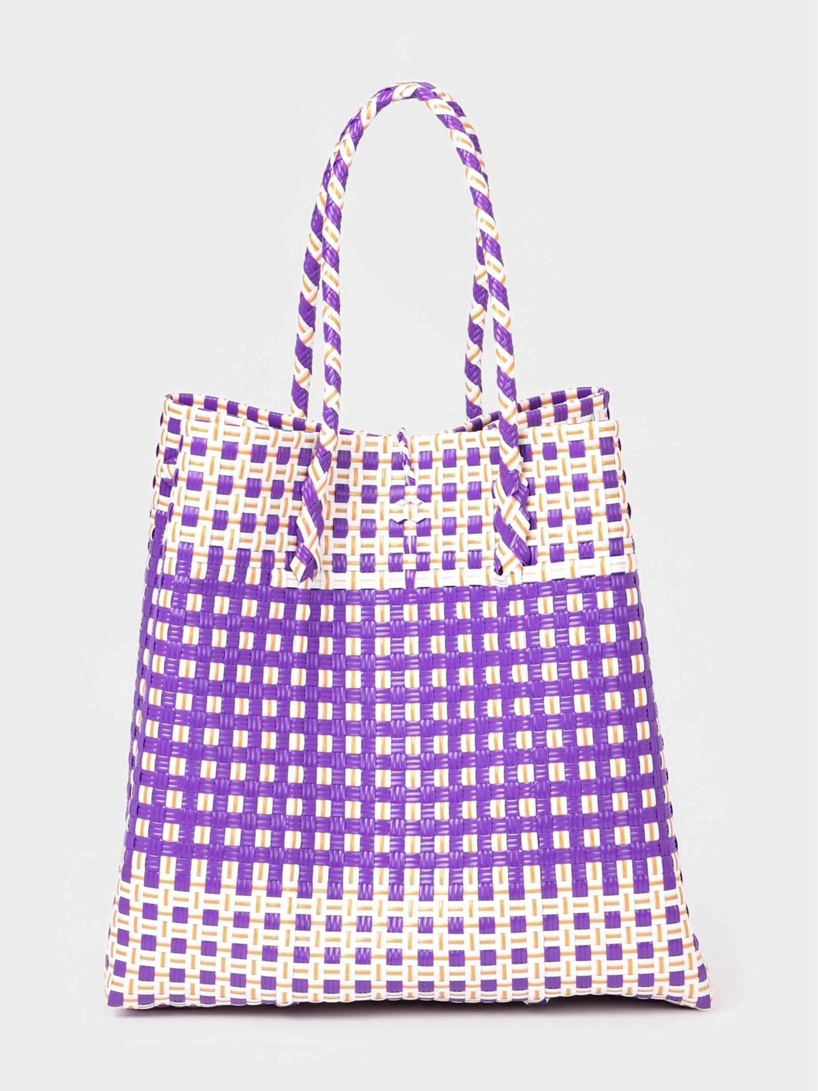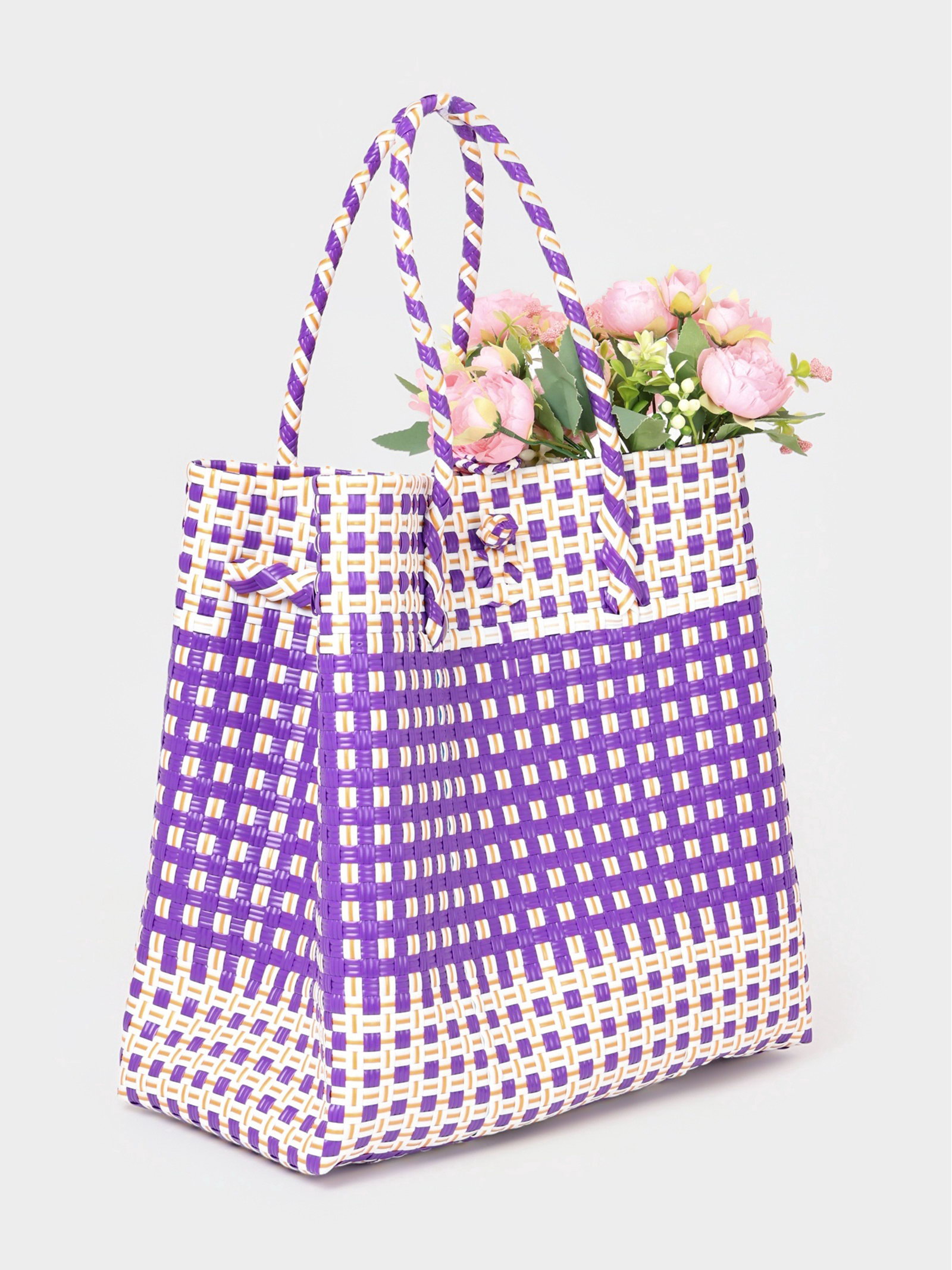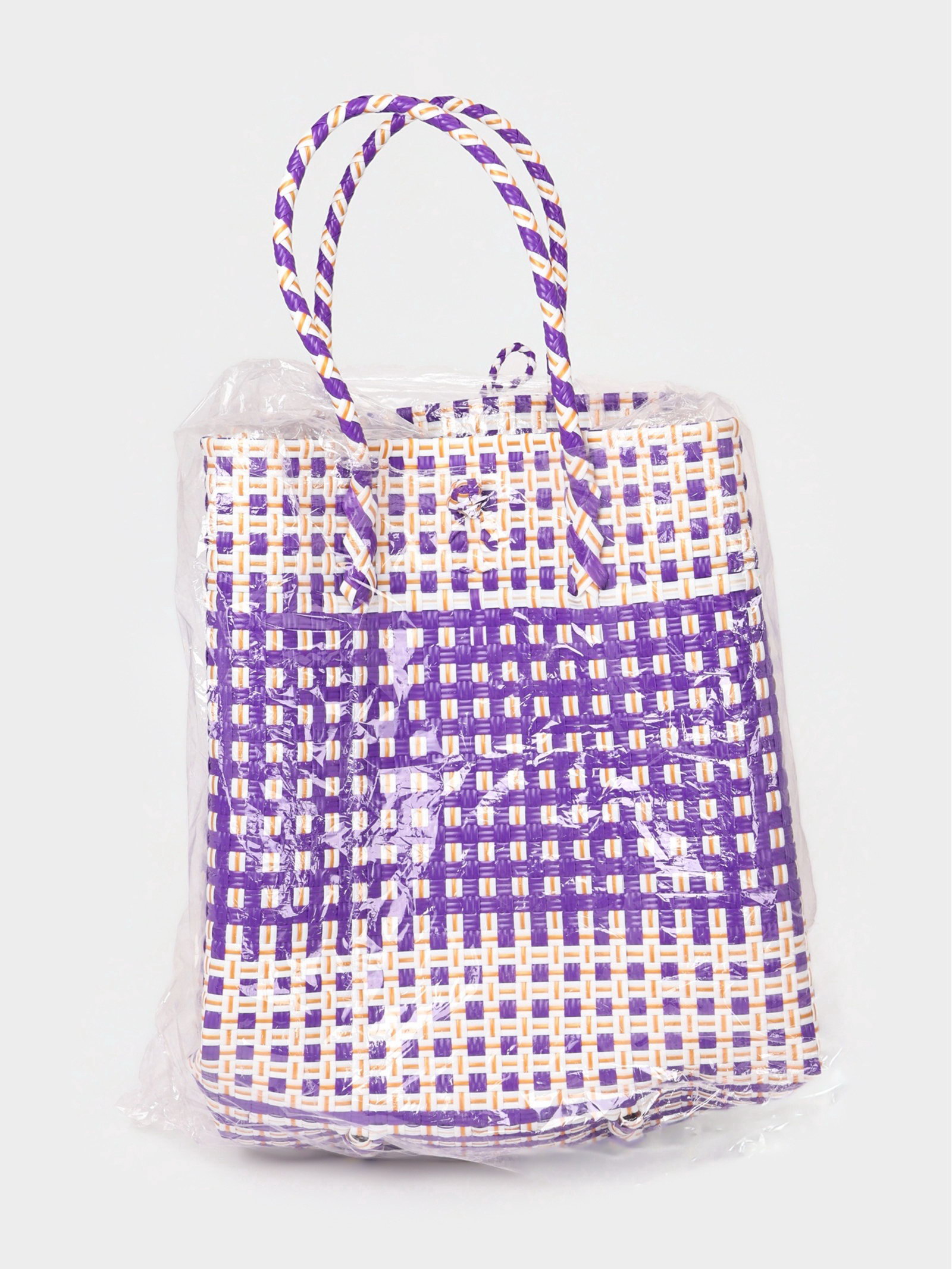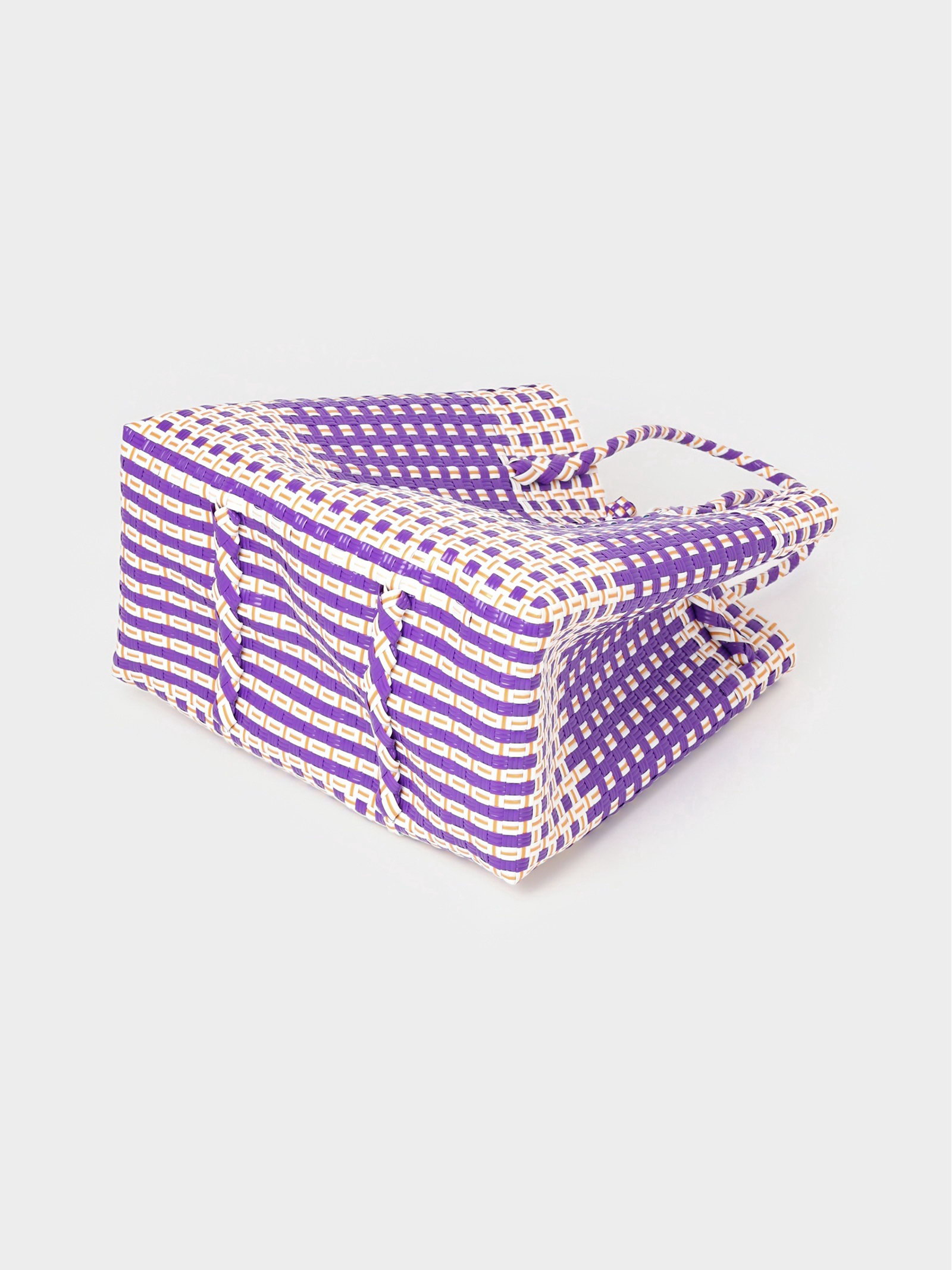Сумка плетёная, 40x20x55 см, пластик, фиолетово-белая, 20x40x40 см., Индонезия