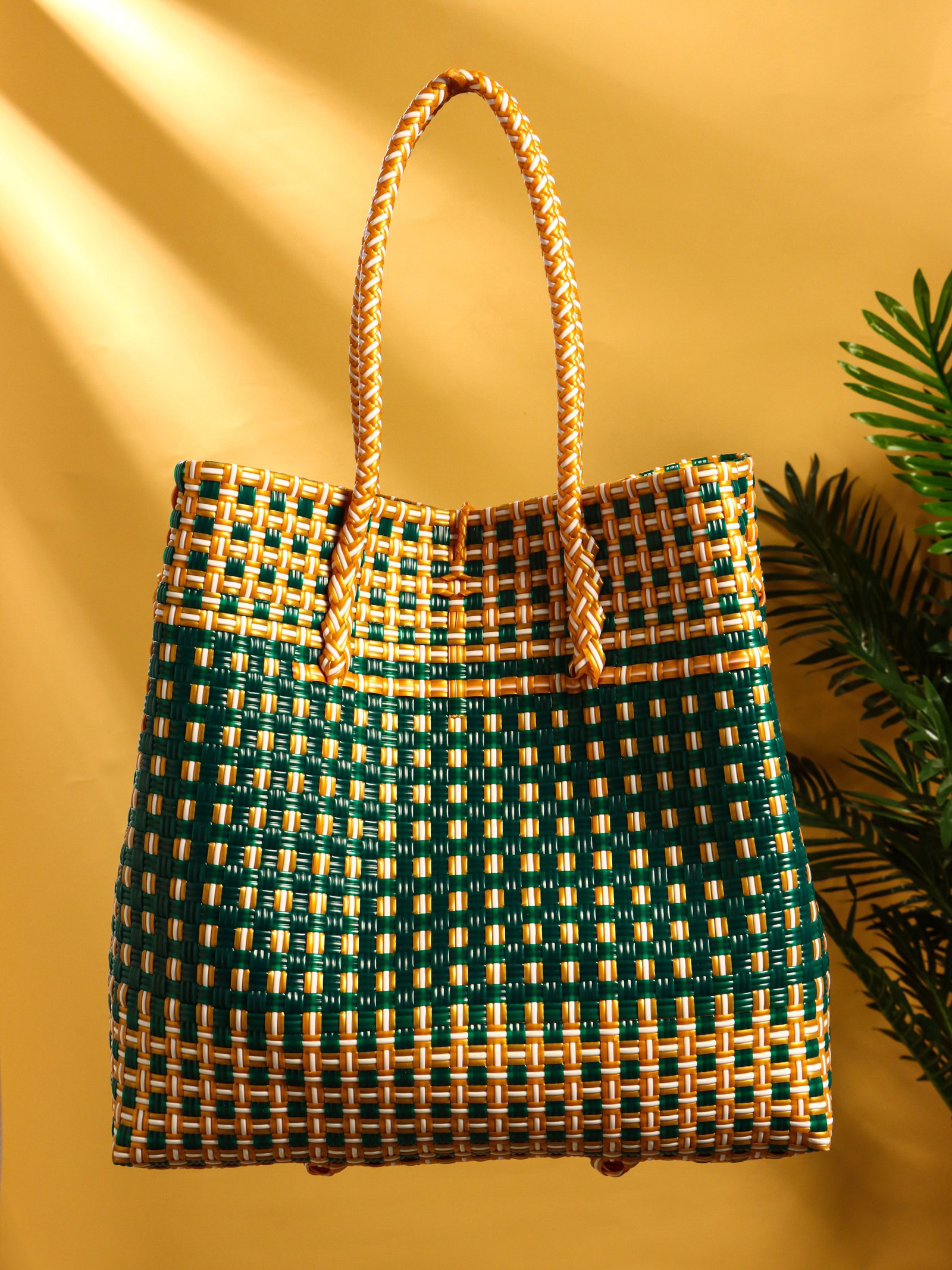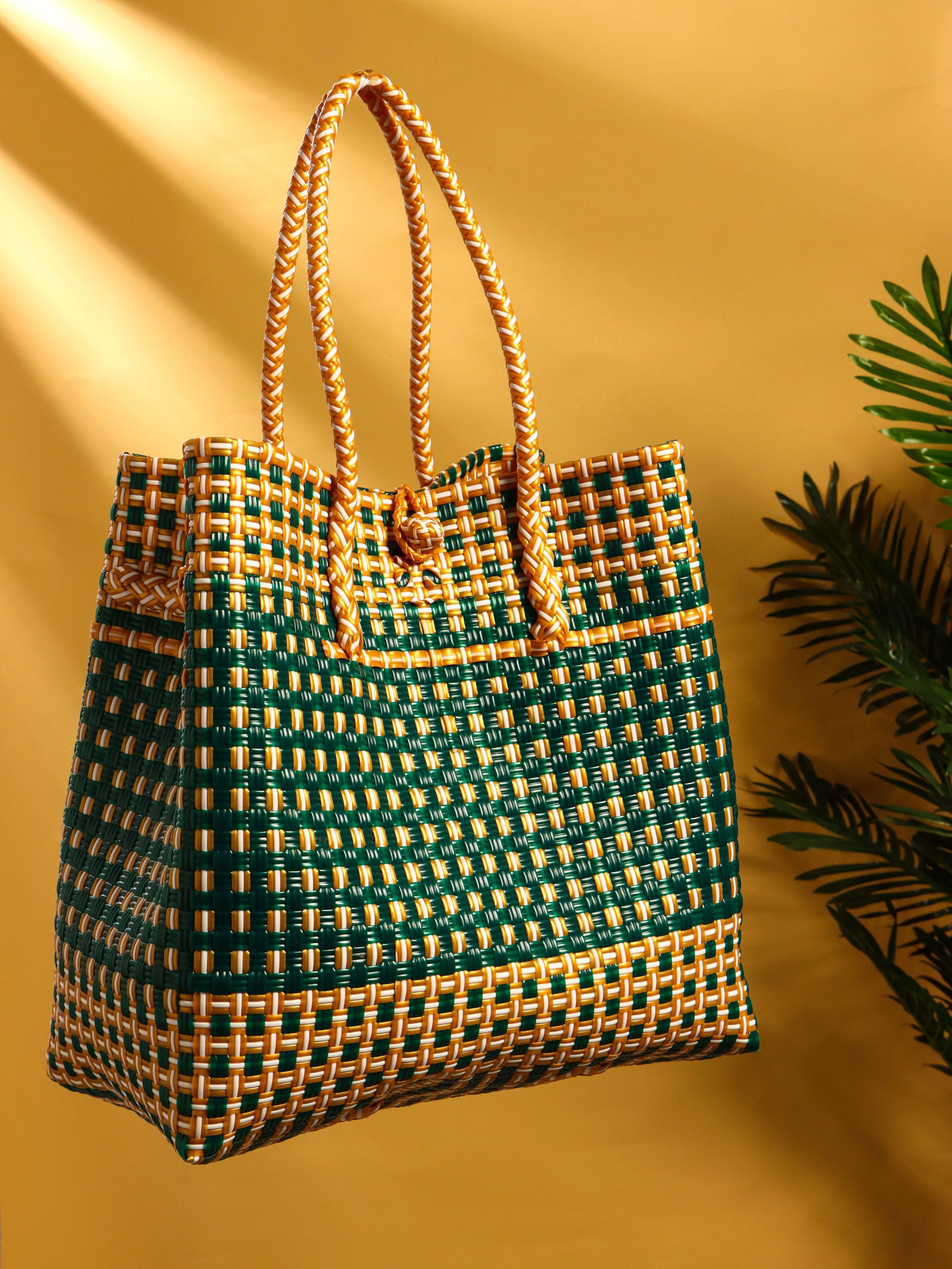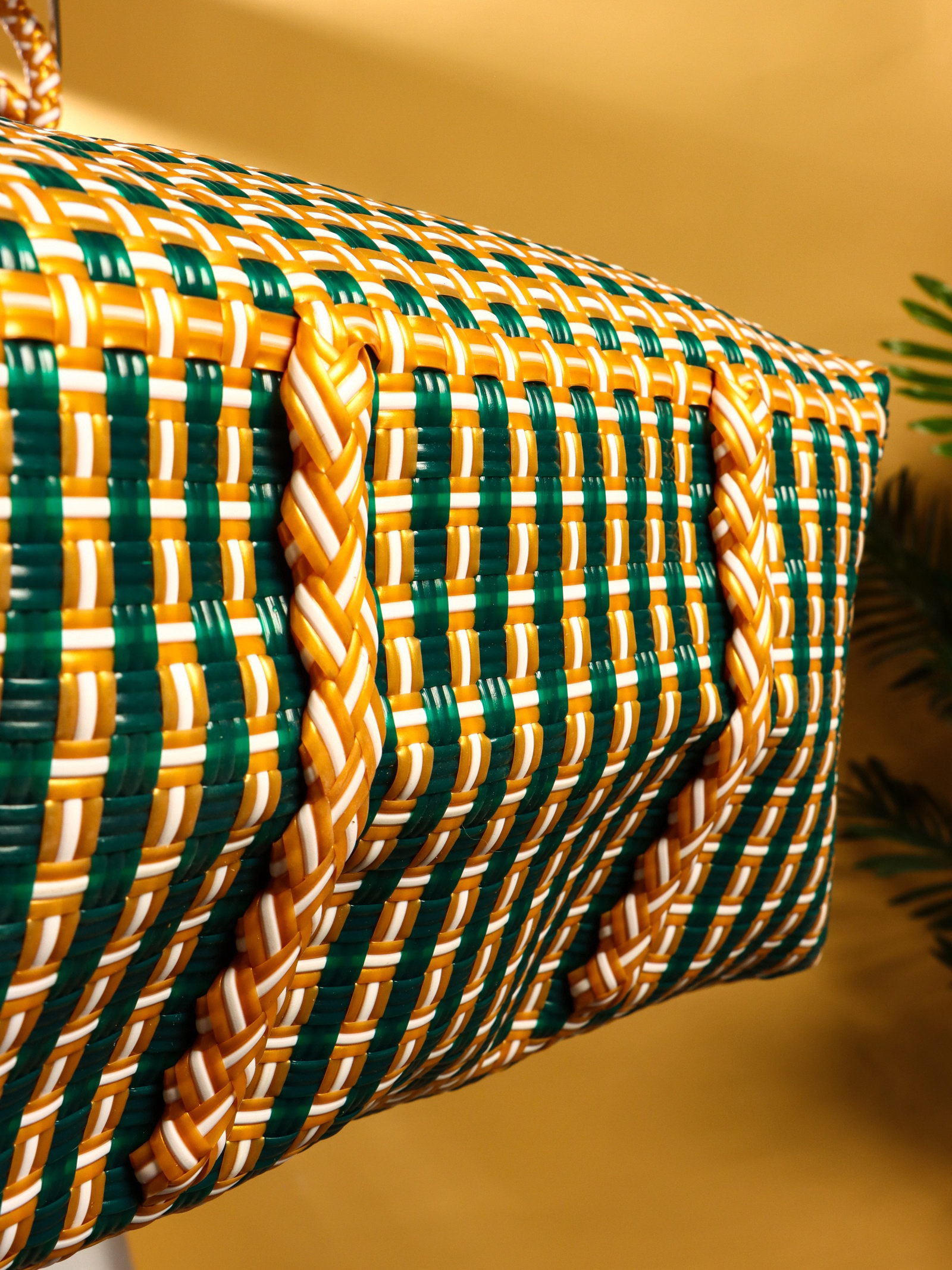 Сумка плетёная, 40x20x55 см, пластик, зелёно-бежевая, 20x40x40 см., Индонезия