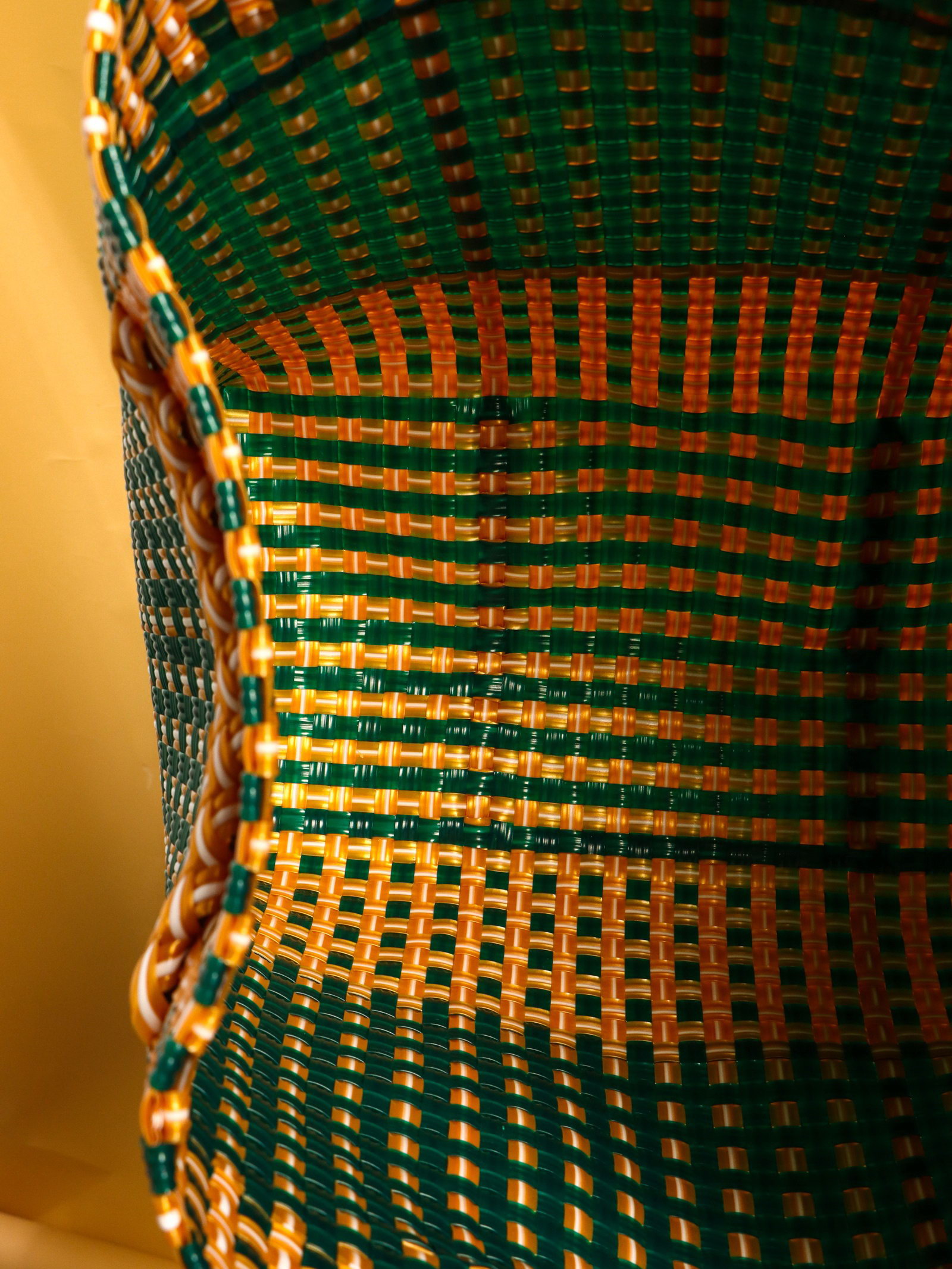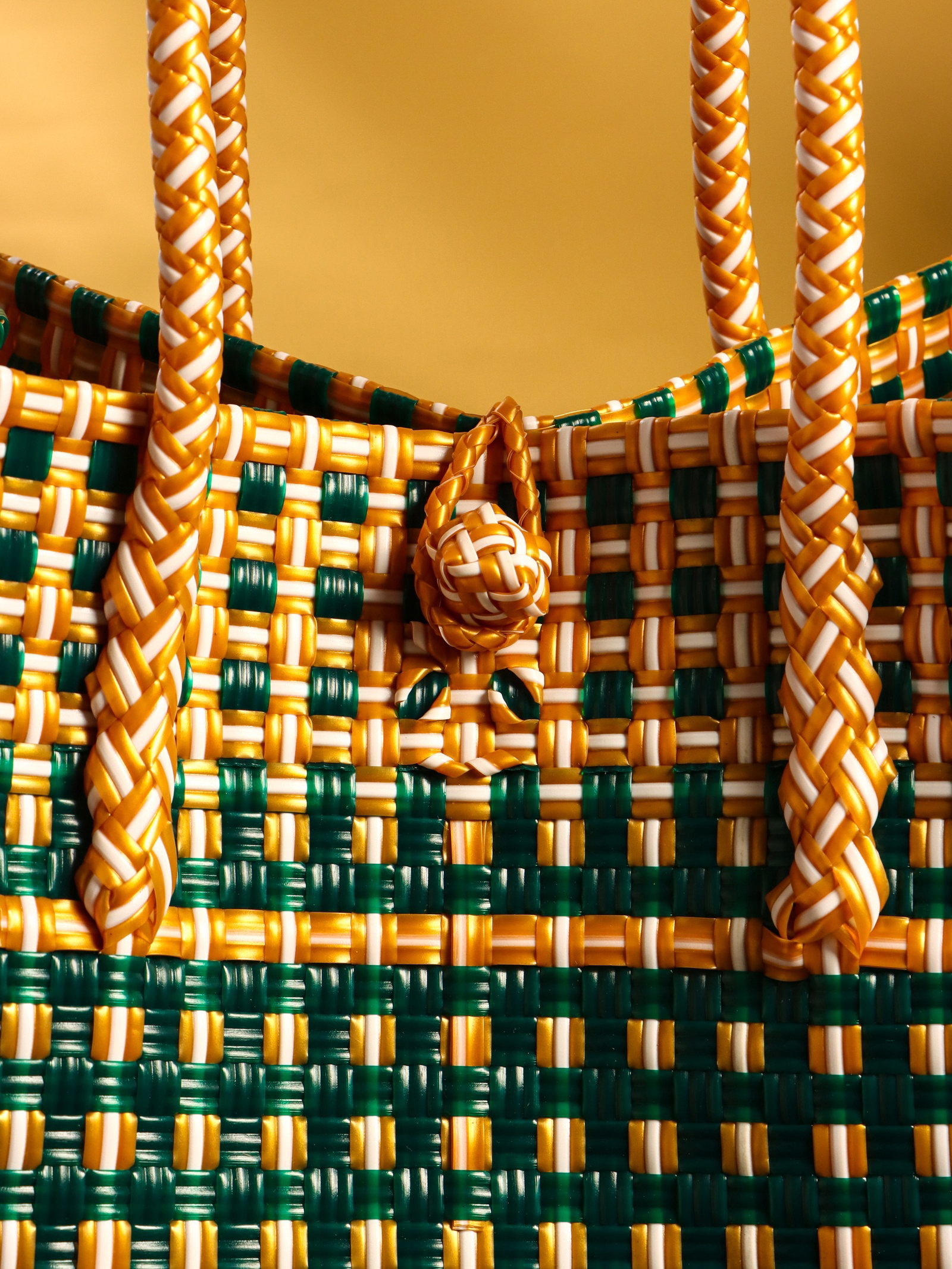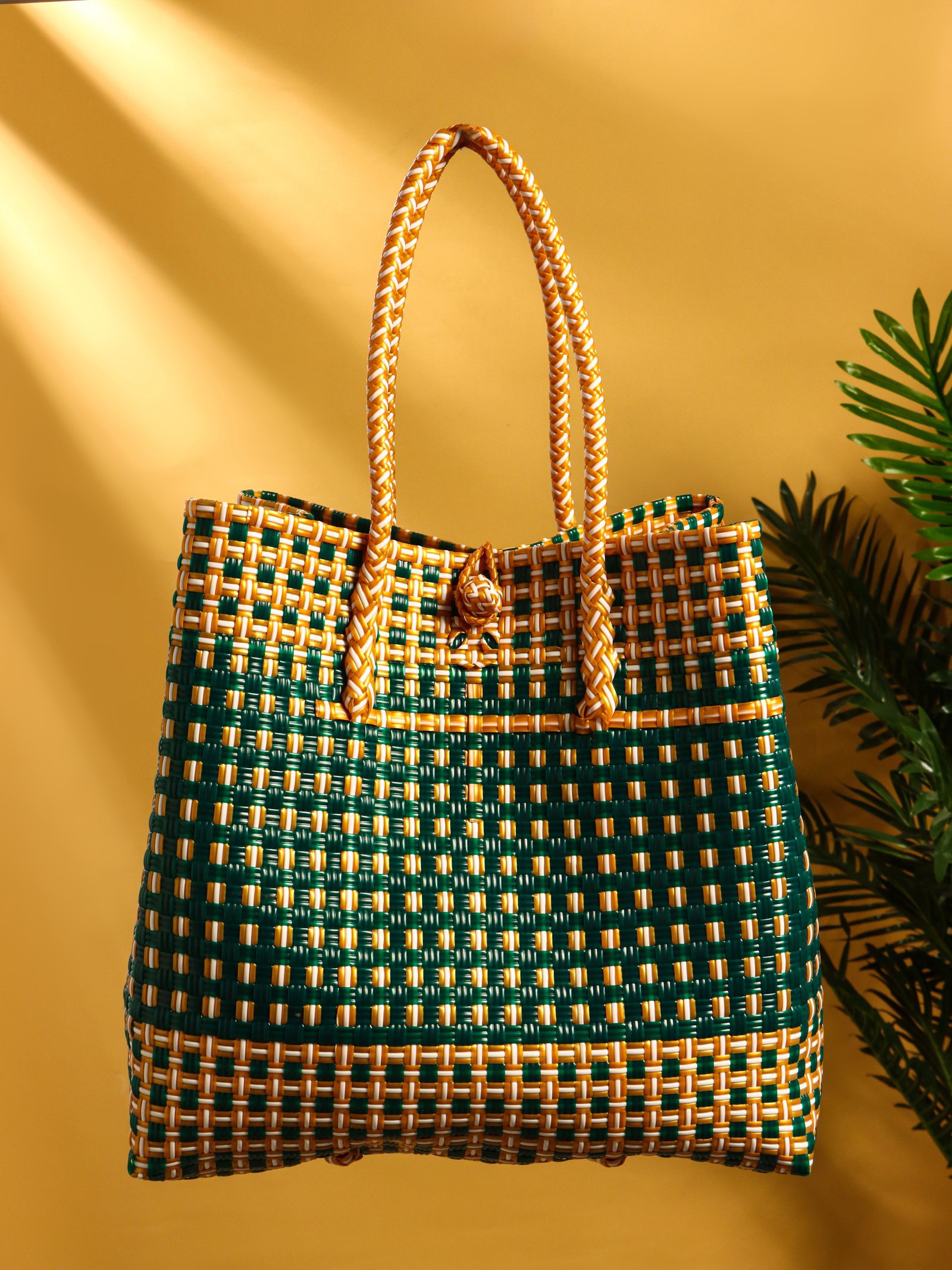 Сумка плетёная, 40x20x55 см, пластик, зелёно-бежевая, 20x40x40 см., Индонезия