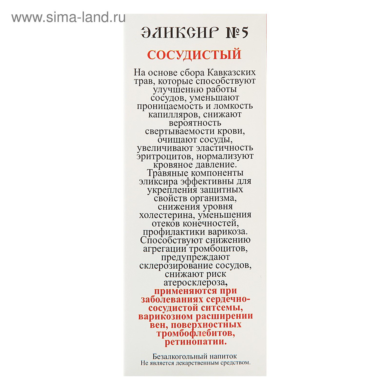 Способ применения: принимать внутрь по одной чайной ложке в день, запивая большим количеством воды. Можно развести в стакане воды (50 мл). Срок годности 2 года. Состав: кавказский мёд, медовый экстракт: полынь, эстрагон, черноплодная рябина, шиповник, лист малины, лист чайного куста, репешок, иван-чай, лист смородины. Курс приёма препарата 21 день. Для прохождения курса понадобится примерно 4 бутылочки эликсира. | ||