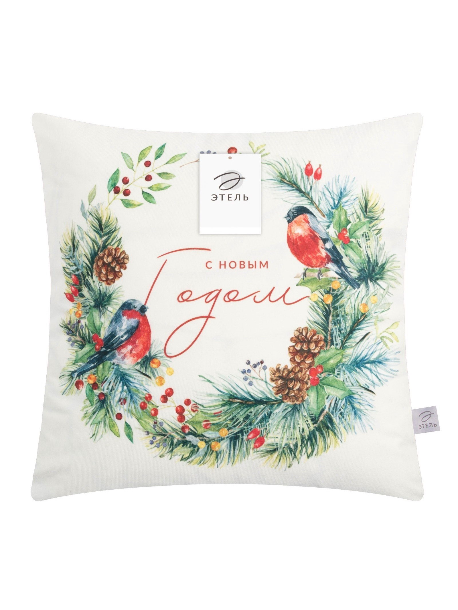Наволочка декоративная новогодняя "Этель. Венок", 40x40 см, велюр, 40x40x1 см., Этель, Китай