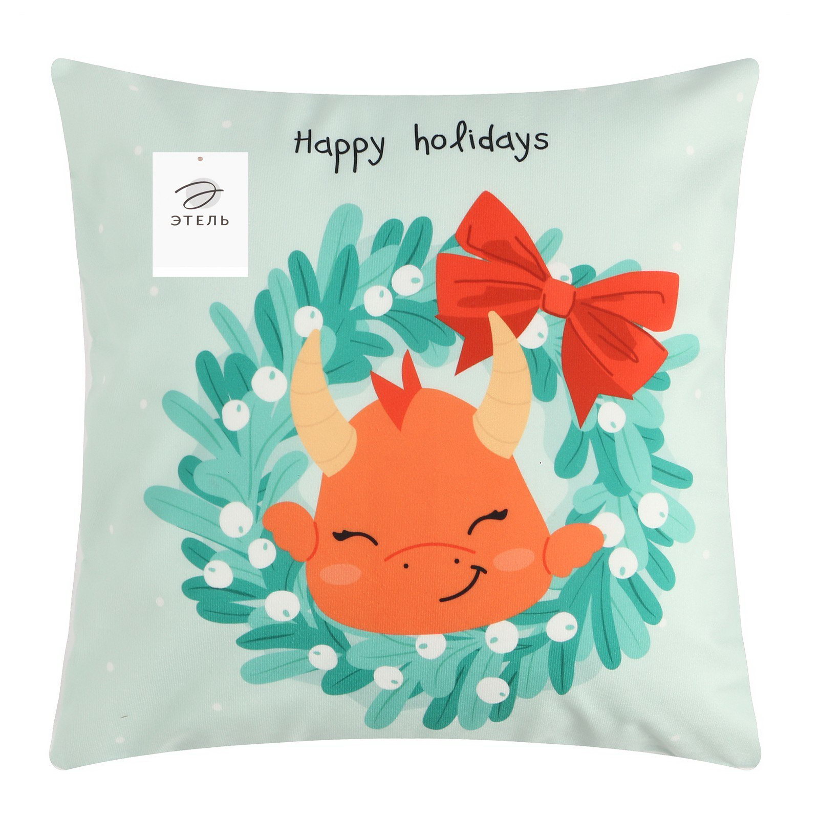 Наволочка декоративная Happy holidays 40x40 см, велюр, 40x40x1 см., Этель, Китай
