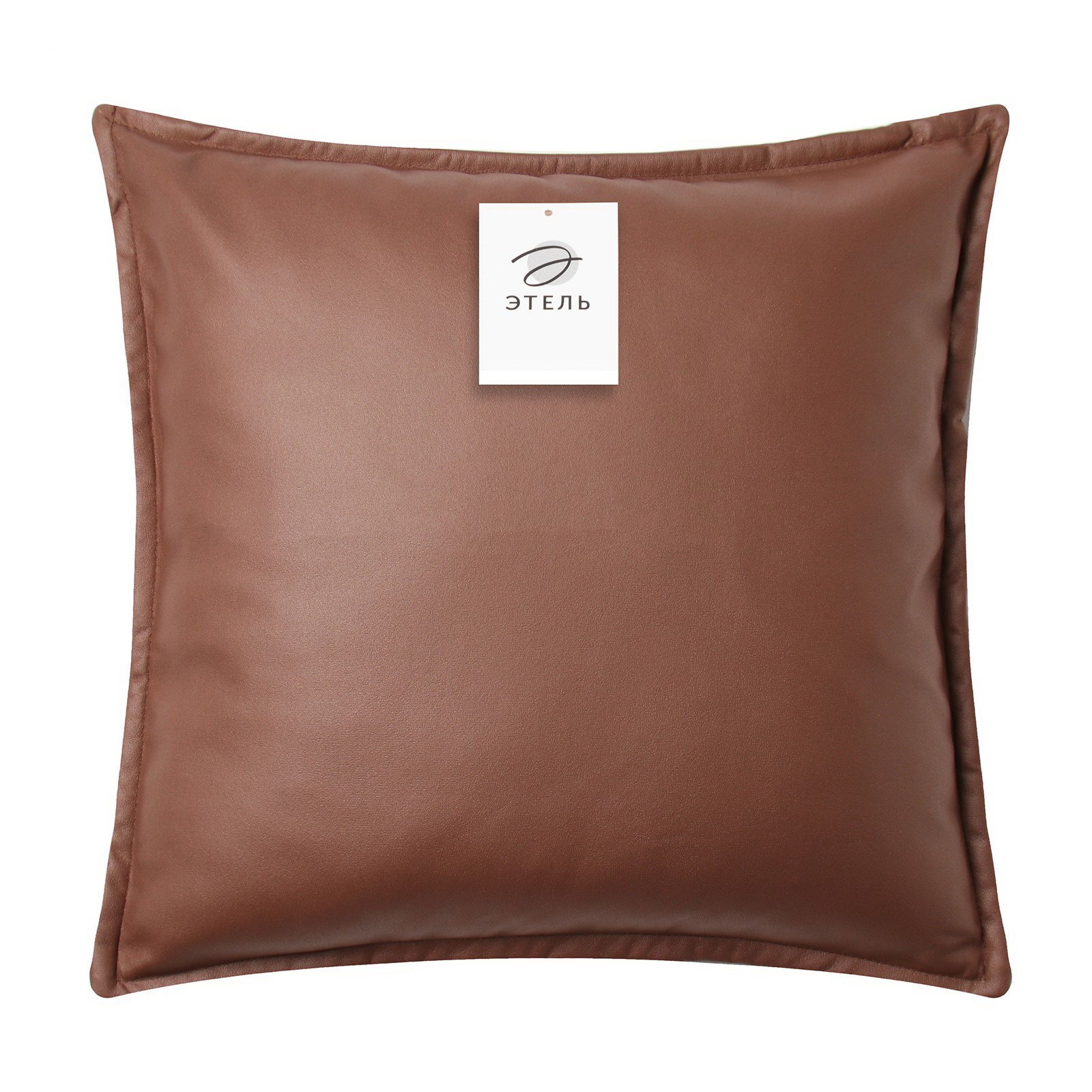 Наволочка декоративная кожзам 45x45 см, коричневый, 45x45 см., Этель, Китай