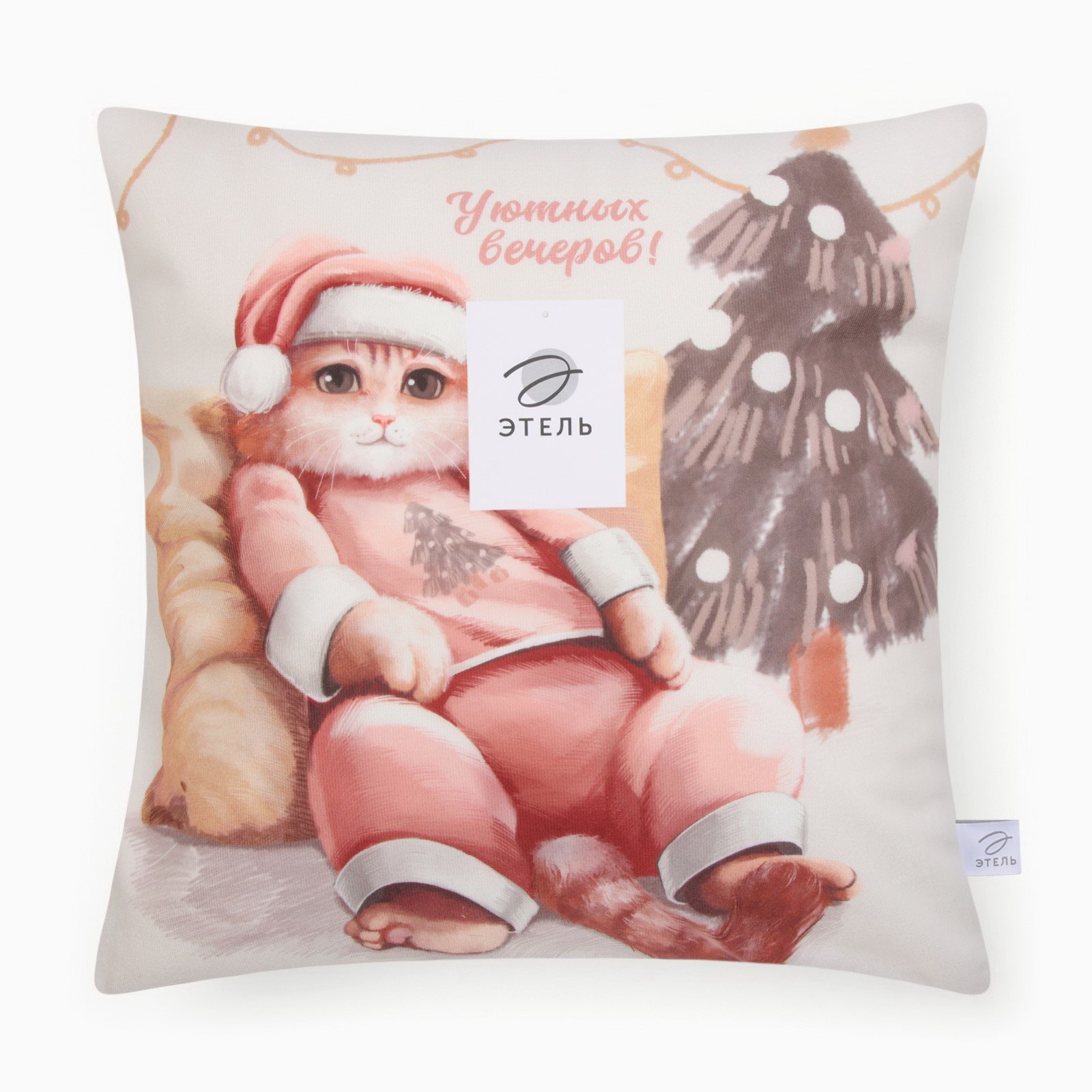 Наволочка декоративная новогодняя "Этель. Уютных вечеров", 40x40 см, велюр, 40x40x1 см., Этель, Китай