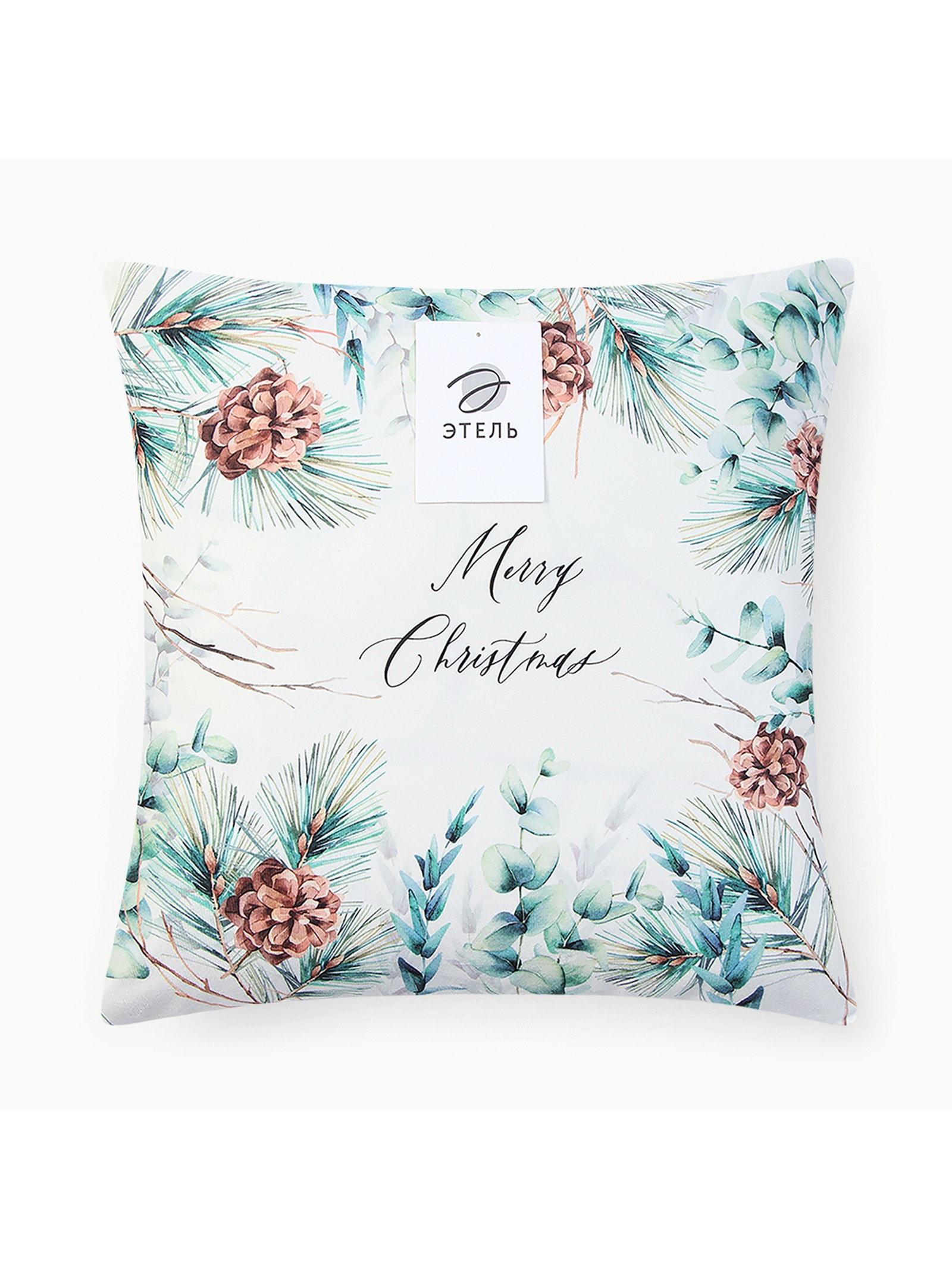 Наволочка декоративная новогодняя "Этель. Merry Christmas", с шишками, 40x40 см, велюр, 40x40x1 см., Этель, Китай
