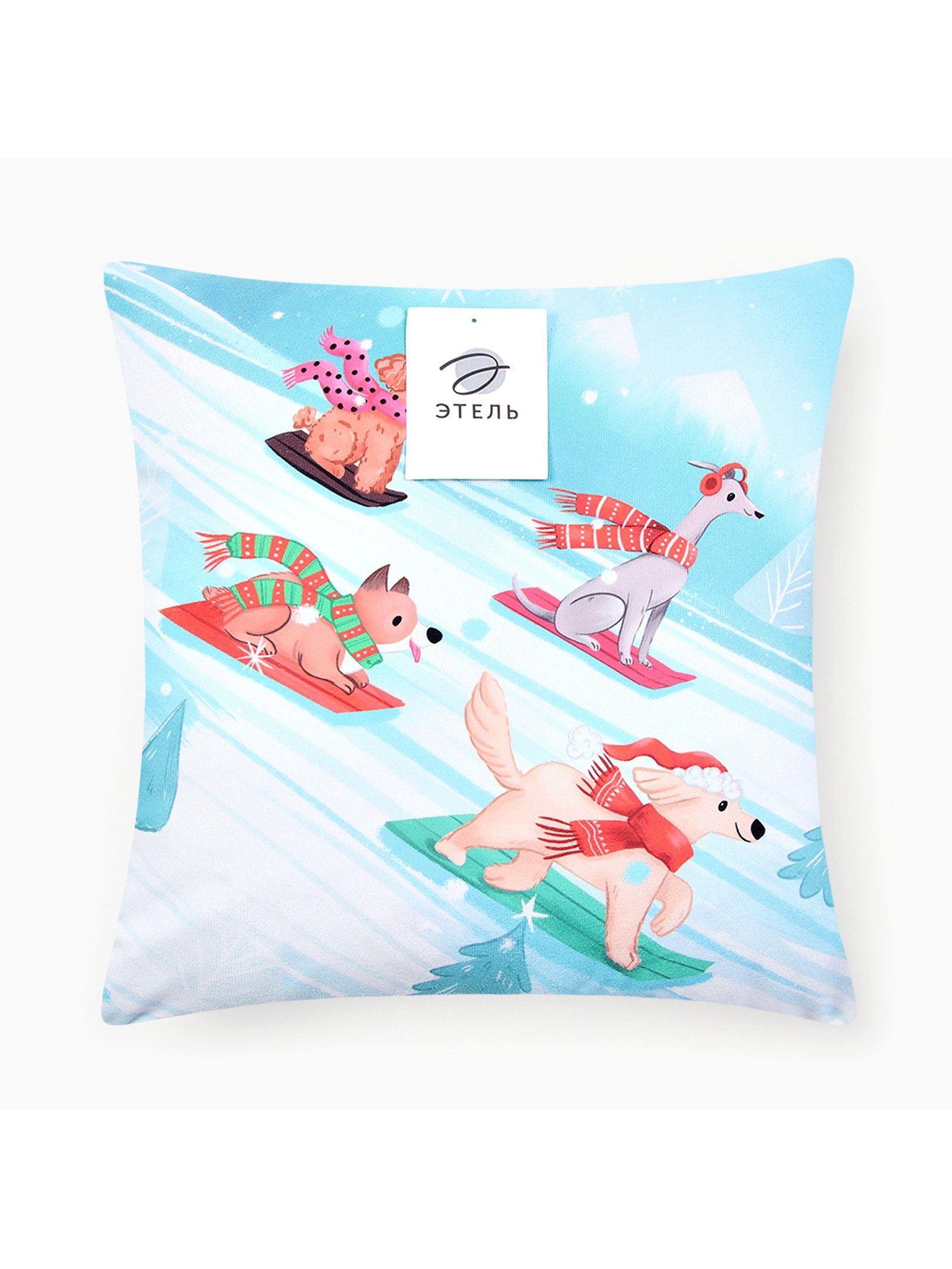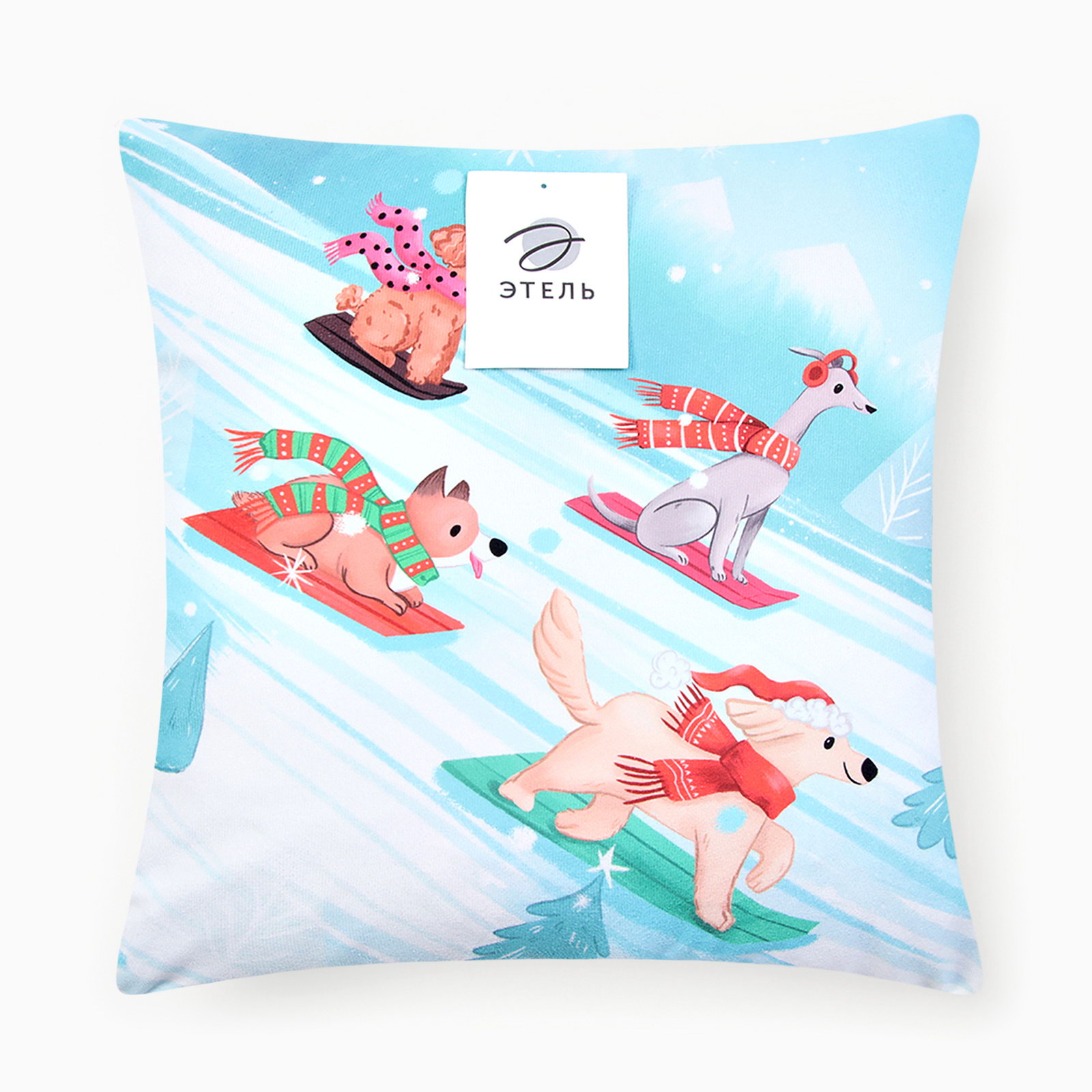 Наволочка декоративная новогодняя "Этель. Snowboarding dogs" 40x40 см, велюр, Этель, Китай