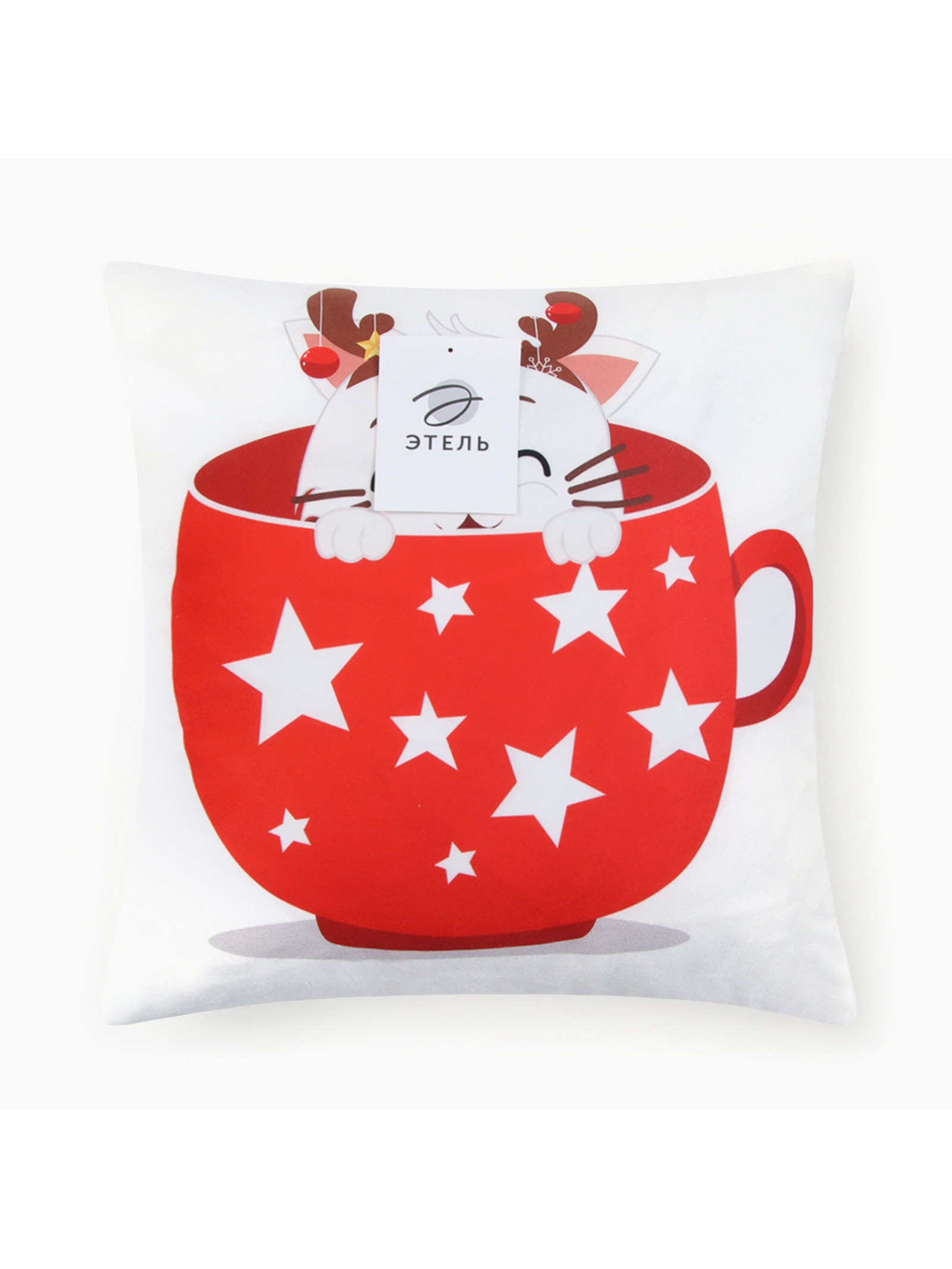 Наволочка декоративная новогодняя "Этель. Новогодняя чашка со звёздами" 40x40 см, Этель, Китай