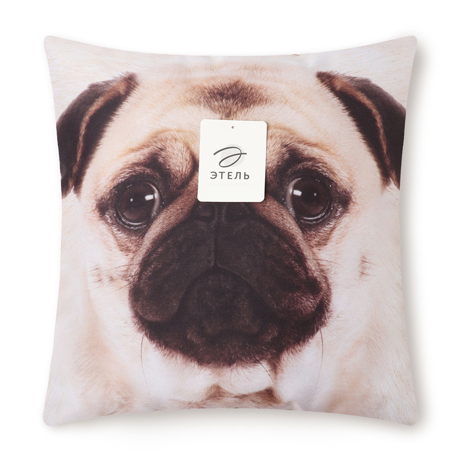 Подушка декоративная "Мопс" 40х40 см, габардин, 100% п/э, Этель, Россия