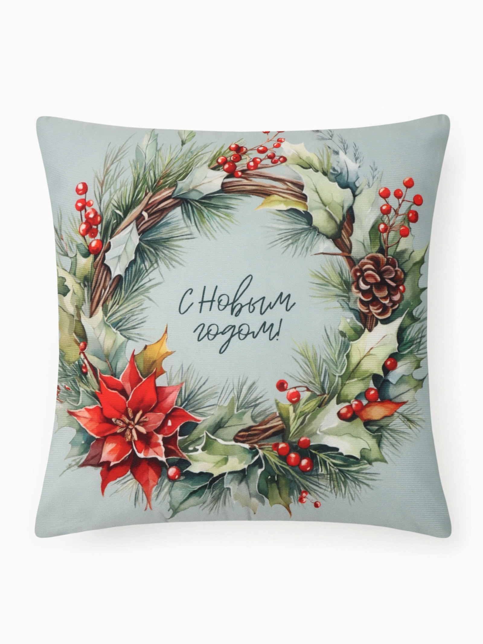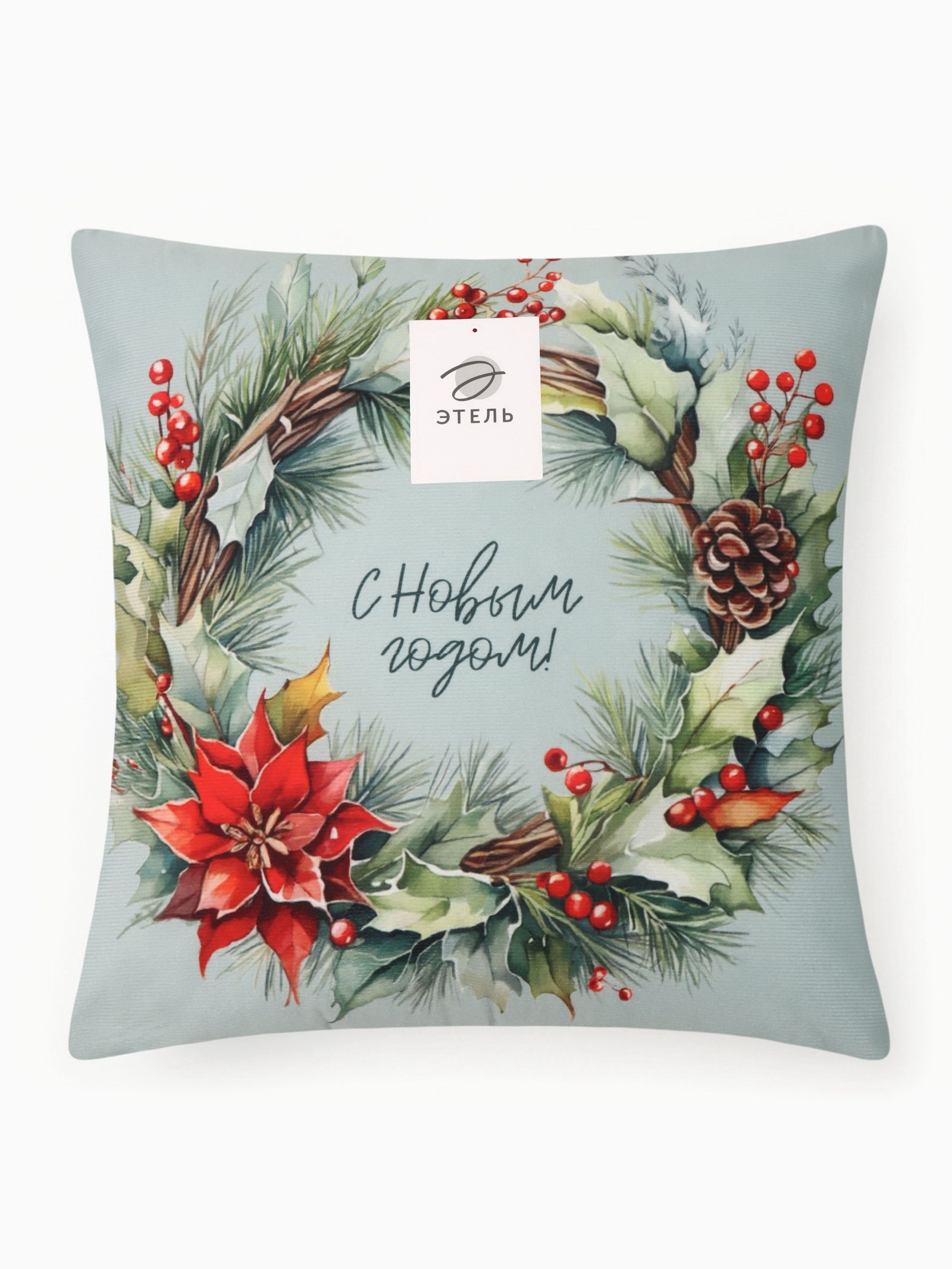 Подушка декоративная новогодняя "Этель. Венок: С Новым годом", 40x40 см, велюр, Этель, Россия