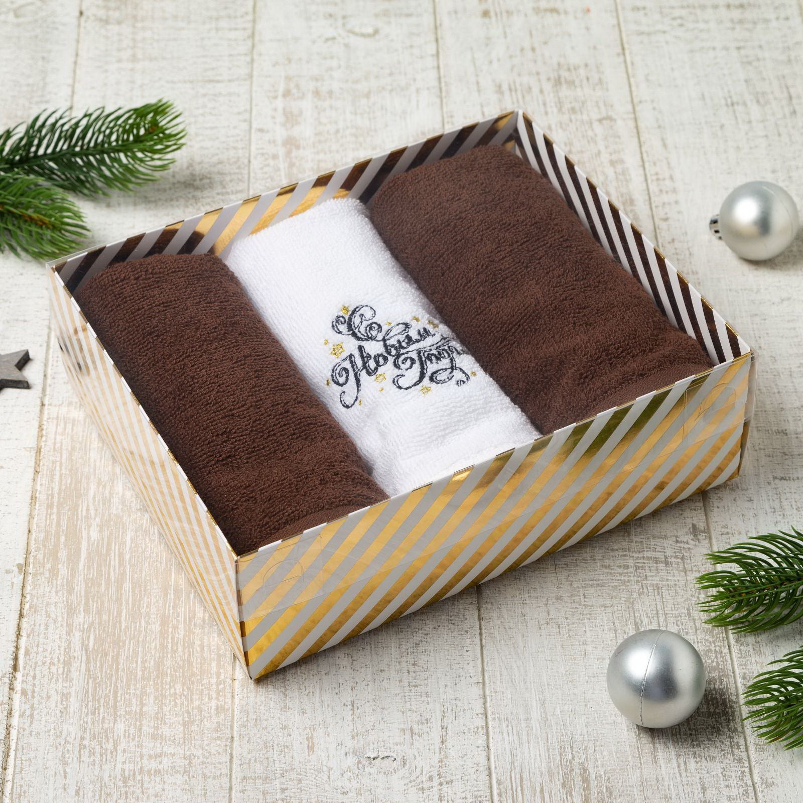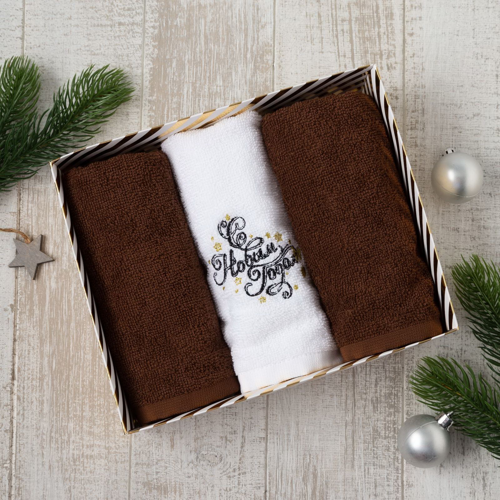 Набор новогодних полотенец "С Новым Годом!" 30x60 см - 3штуки, Экономь и Я, Россия