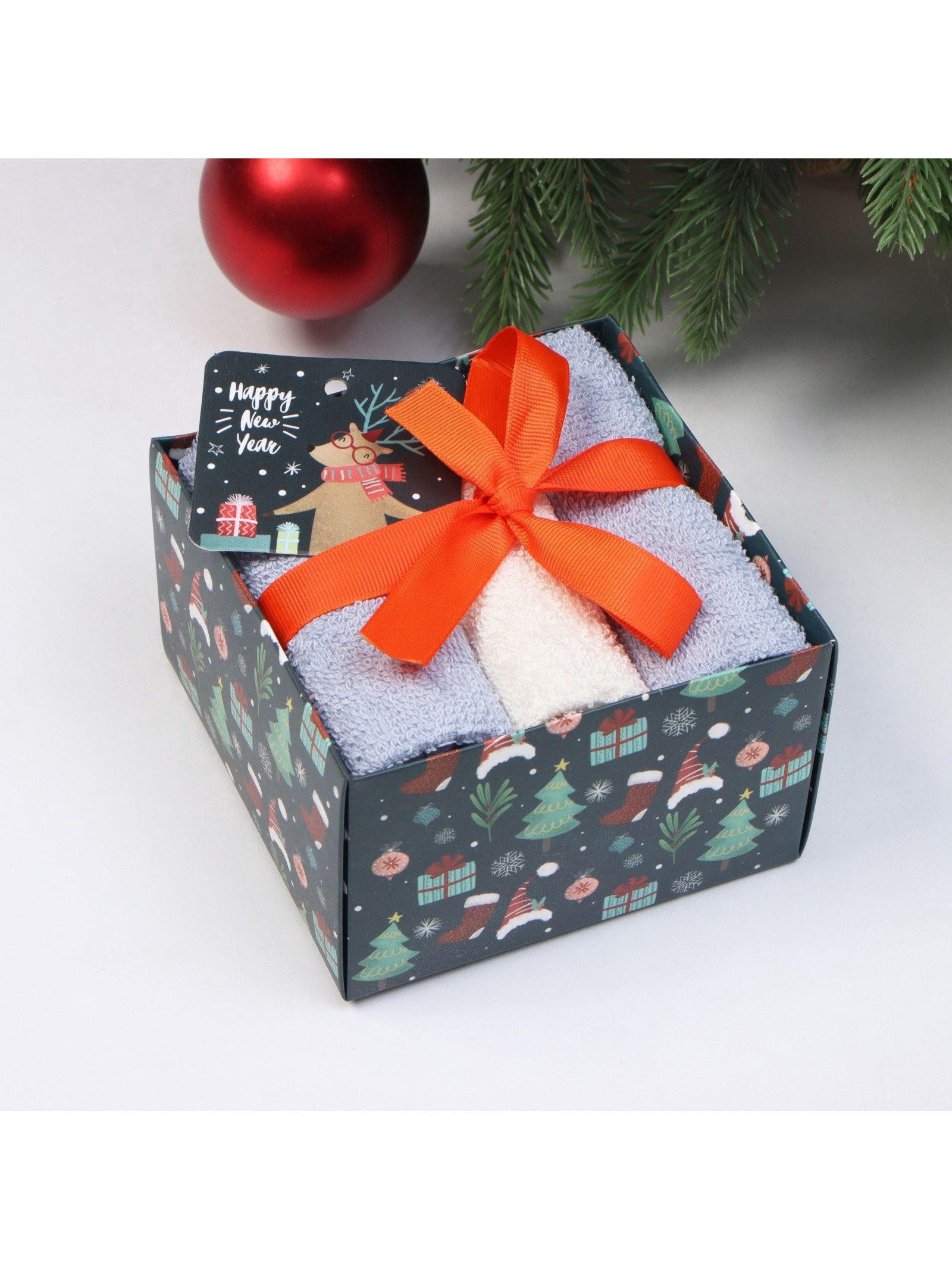 Набор махровых полотенец "Этель. Новогодние забавы", 30x30 см - 3 шт., хлопок 100%, Этель, Россия