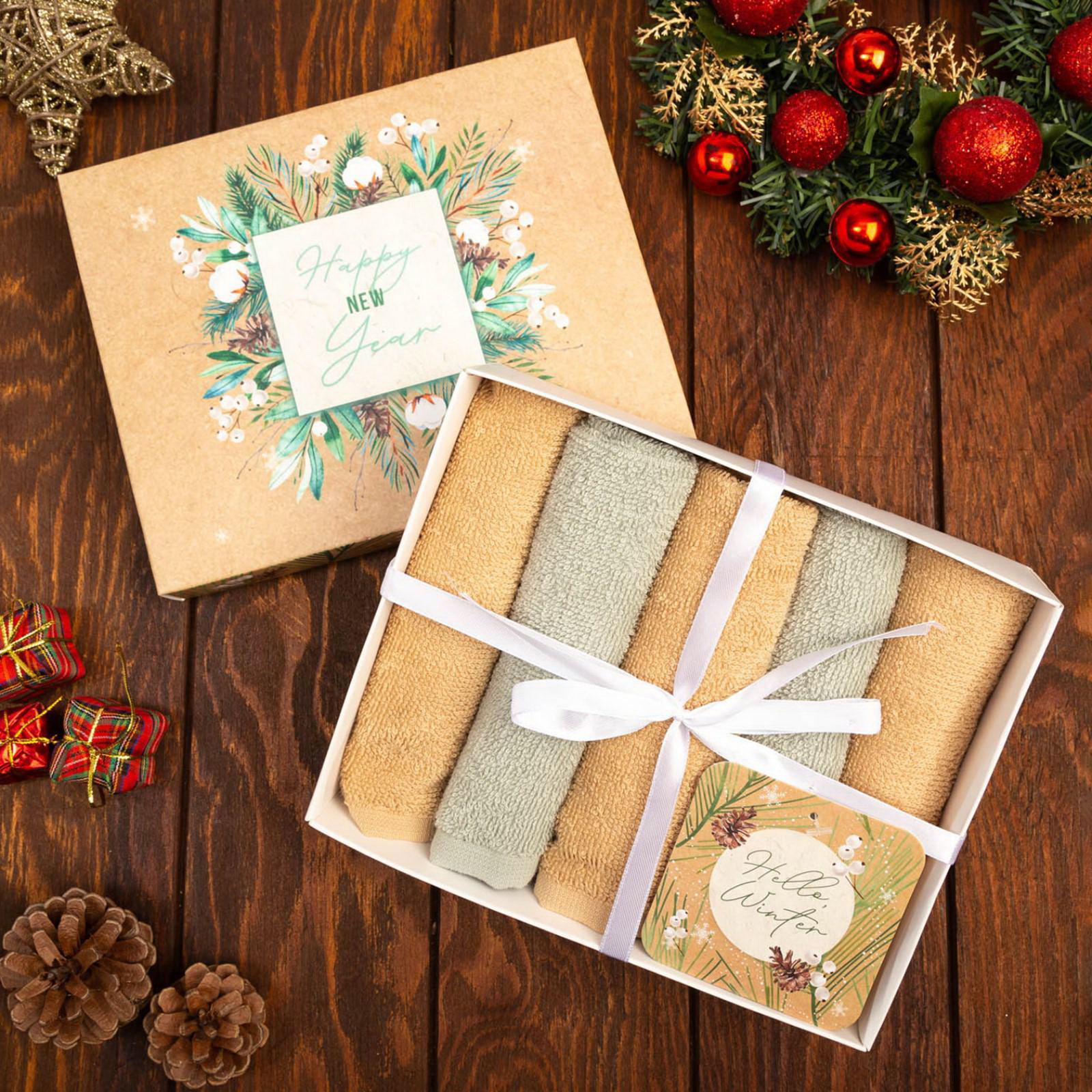 Цвет: Бежевый, Зелёный Сезон: Весна, Зима, Лето, Осень Вид упаковки: Подарочная коробка, Термоусадочная плёнка Рекомендации по уходу: Барабанная сушка при низкой температуре, Глажка при 150 ℃, Не отбеливать, Стирка при 40 ℃ Комплектация: 5 полотенец, 5 салфеток Размер упаковки: 16.5 x 6.5 x 20.5 см. В подарочной упаковке: Да tnved: 6302600000 tnved: 6302600000 Набор: Да Температурное ограничение: Нет Плотность, г/?2: 340 Состав ткани: Хлопок Тематика праздника: Новый год Размер, см: 30 x 30 Ткань: Махра Назначение полотенец: Для рук Фактура материала: Махровый Составляющие набора: Полотенце Декоративные элементы: Без элементов Маркировка: Честный знак Тип принадлежности к праздникам: Новый год В наборе, шт.: 5 Адресат: Без адресата Для кого: Унисекс Тематика подарка: Текстиль Тематика: Новогодняя Коллекция: Новогодние наборы полотенец Особенности: Без особенностей | ||