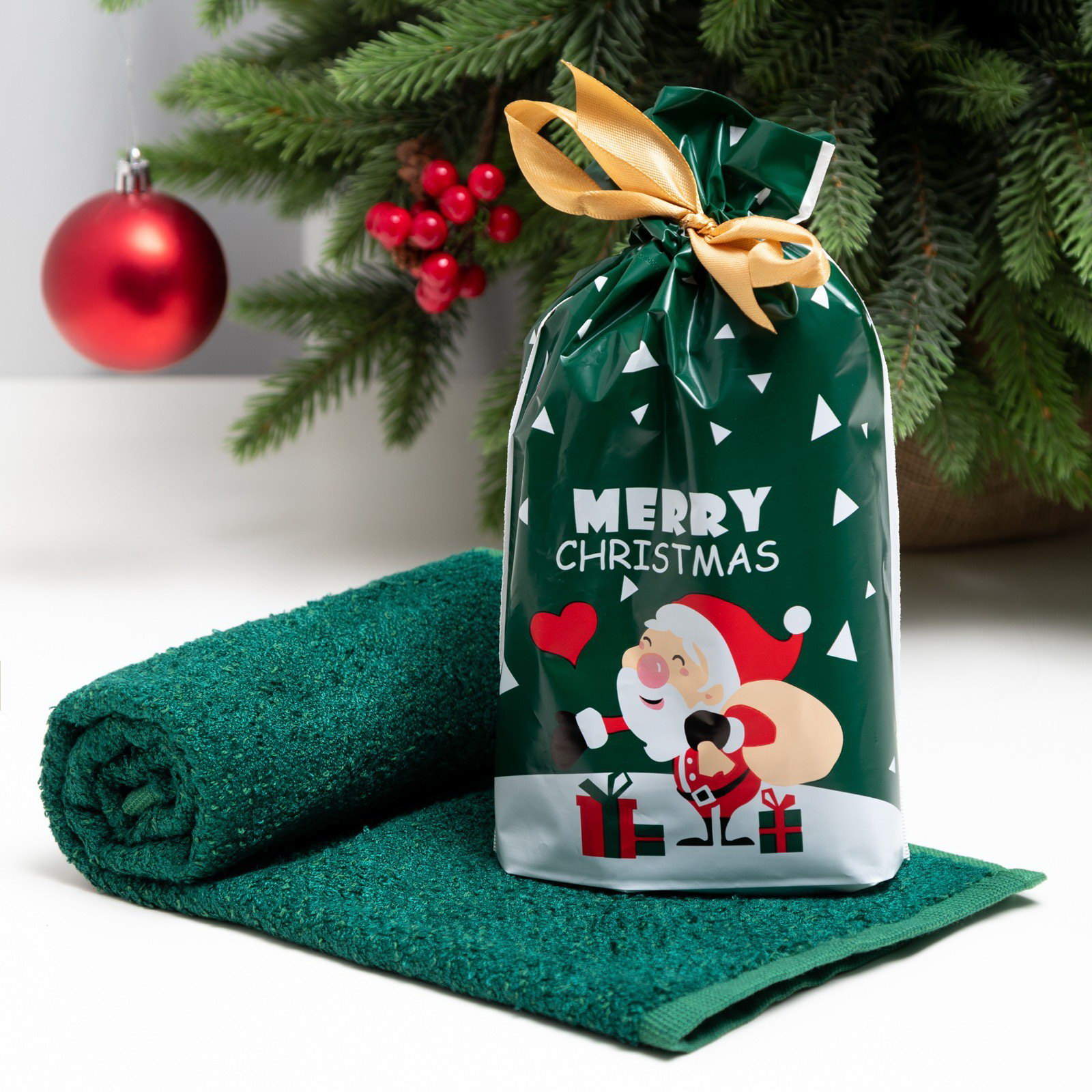 Полотенце махровое "Экономь и Я. Дед Мороз" 30x60 см, 100% хлопок, 340 г/?2, зелёное, Экономь и Я, Россия