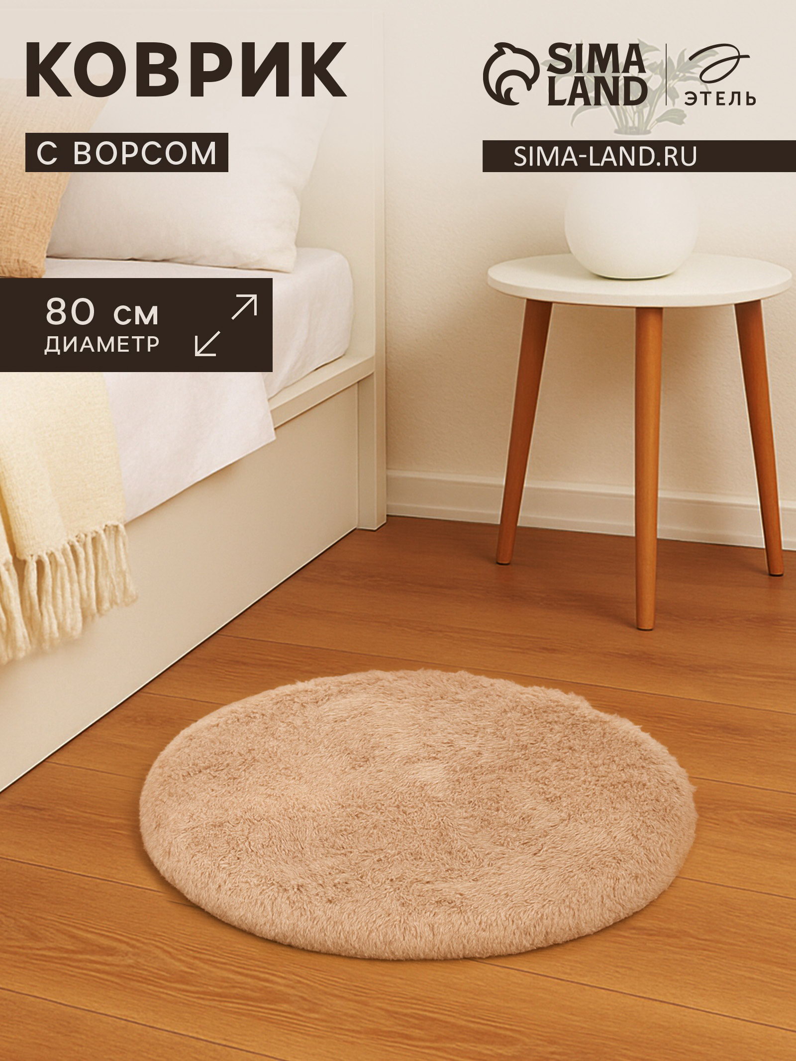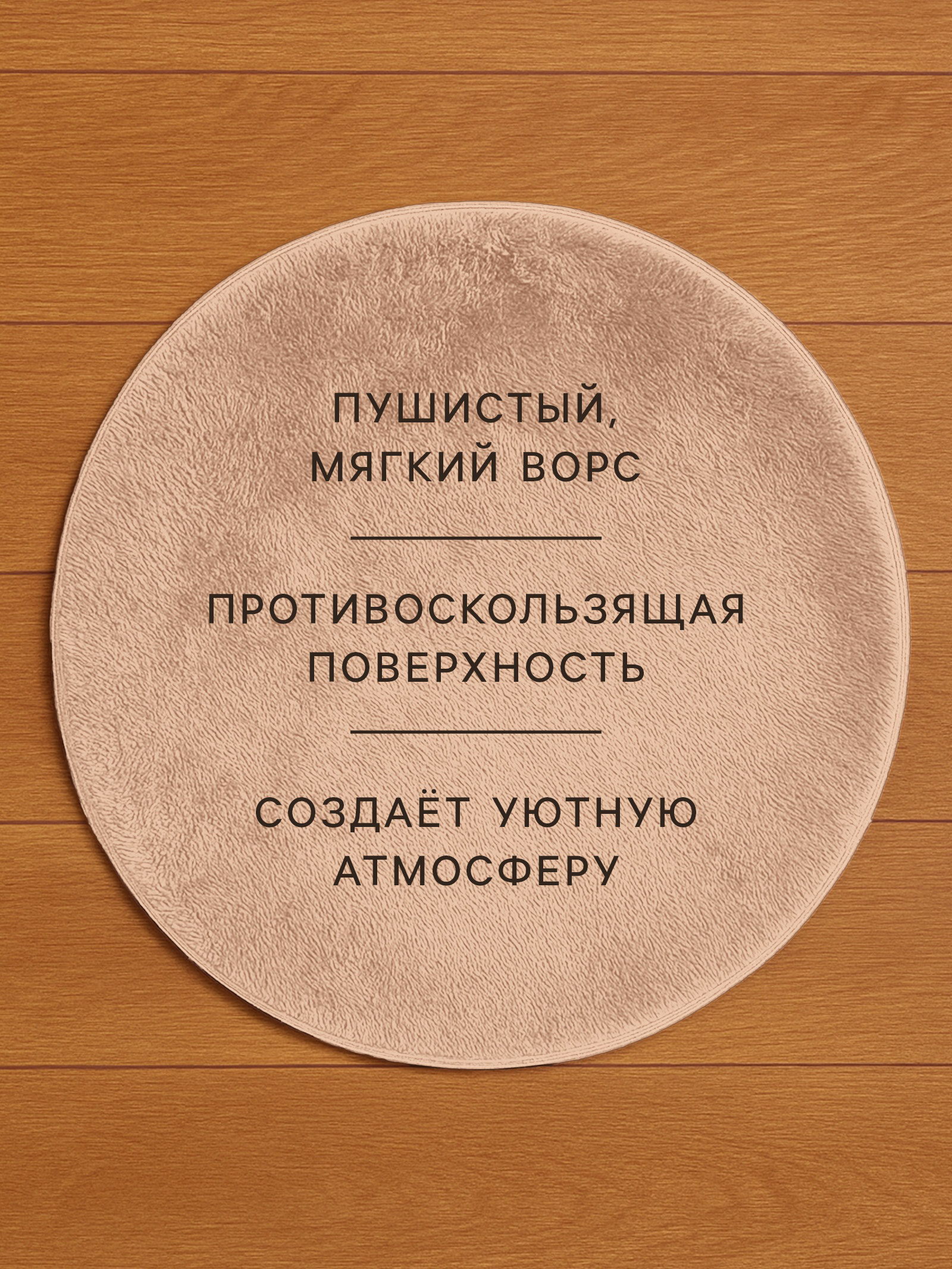 Ковёр круглый с ворсом d=80 см, бежевый, 80x80x1 см., Этель, Китай