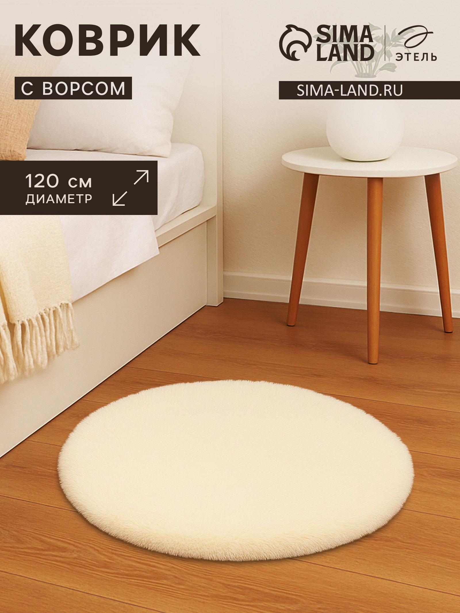 Ковер с ворсом d=120 см, молочный, 120x120x1 см., Этель, Китай