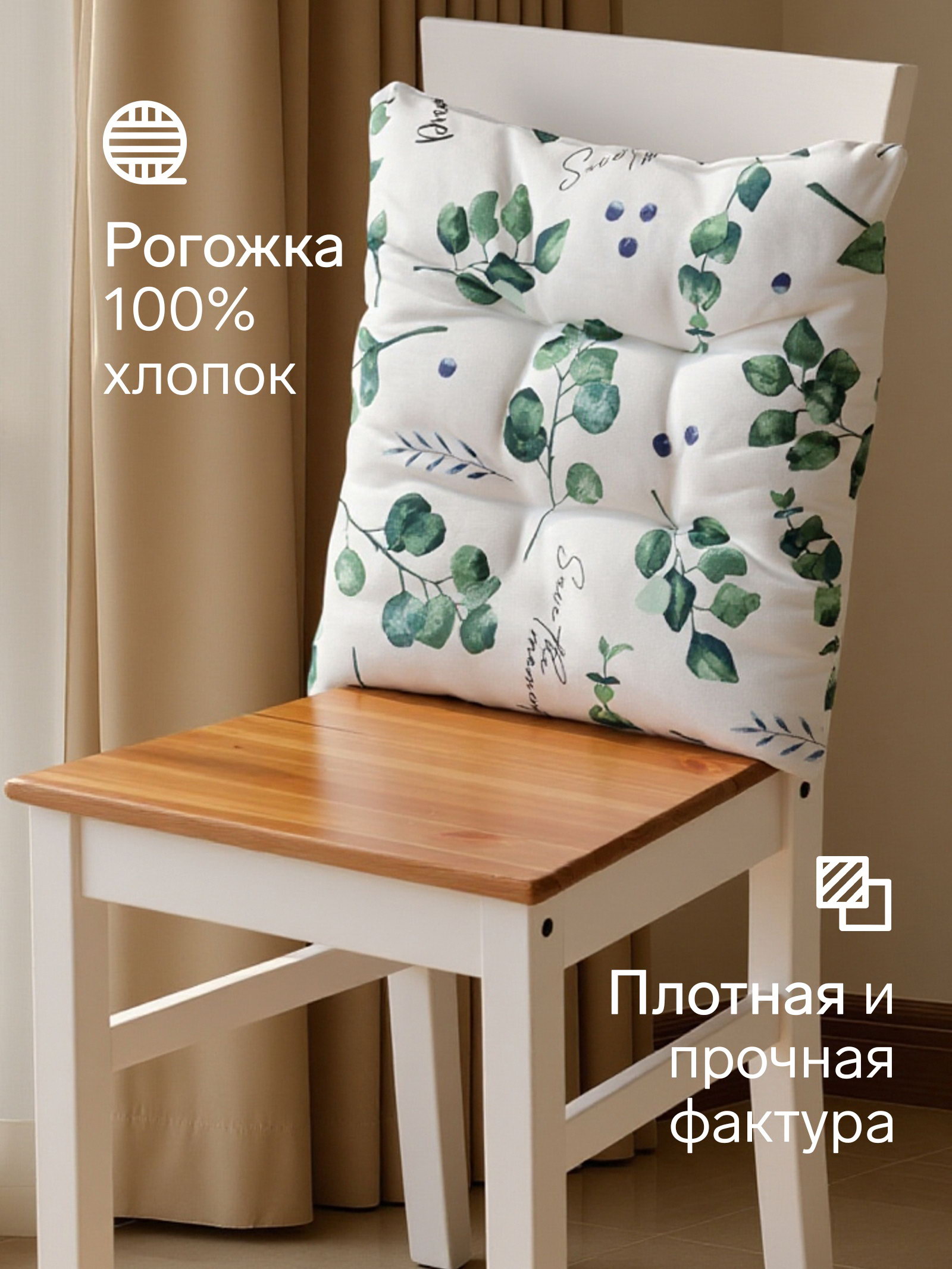 Подушка на стул Eucalyptus, 42x42x7 см, белая, 42x42x7 см., Доляна, Россия