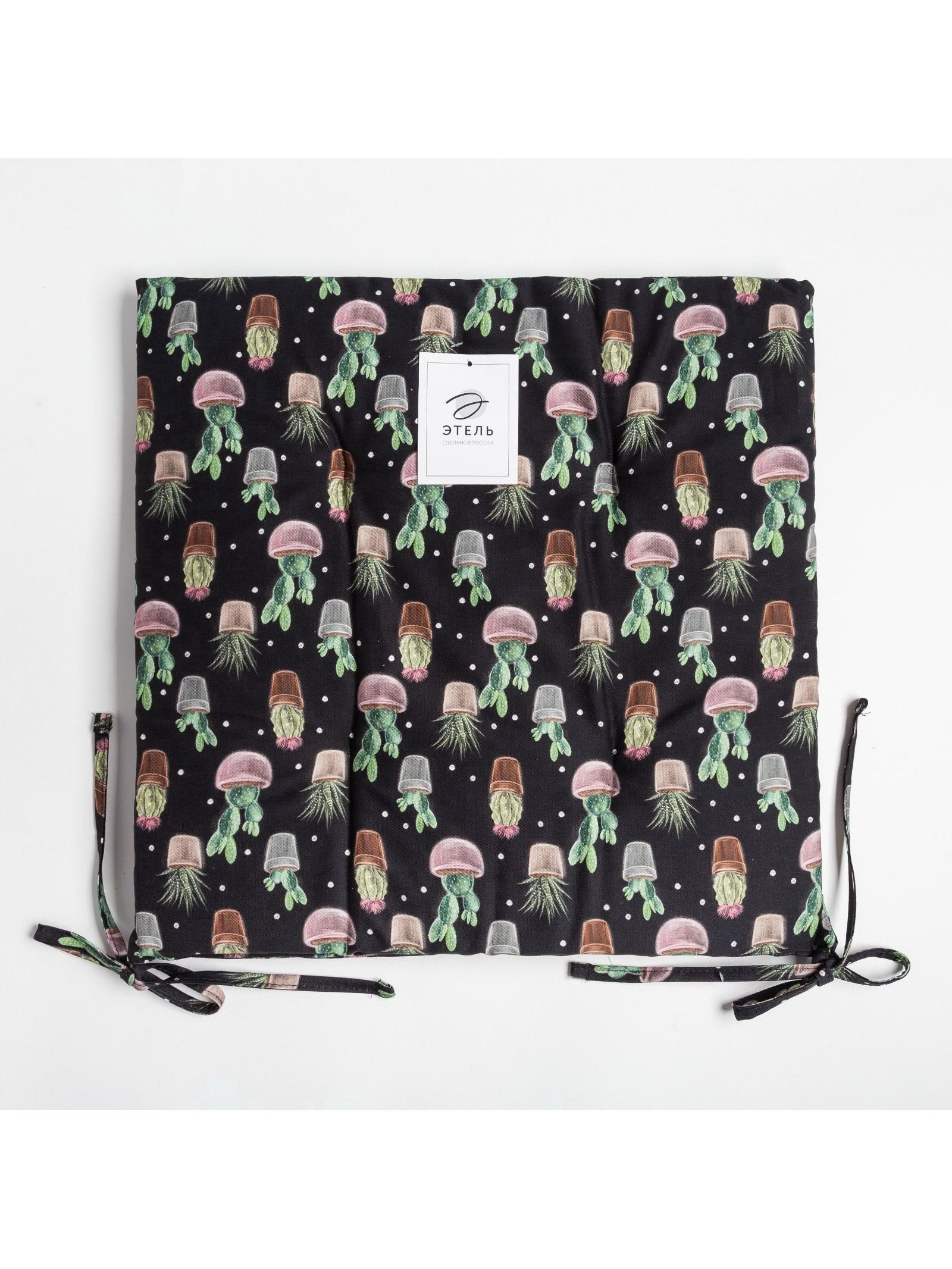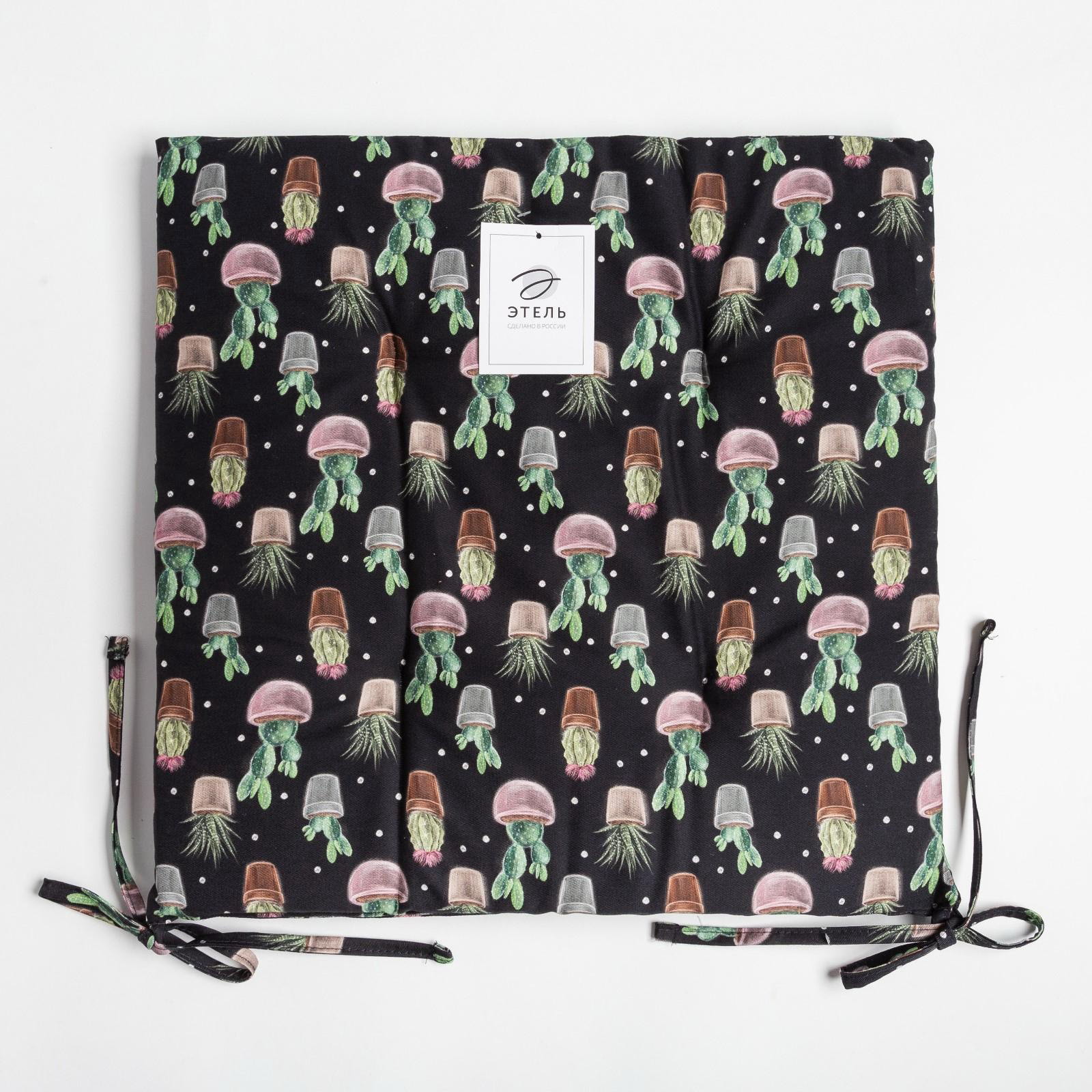 Подушка на стул Succulents, 42x42 см, чёрная, Этель, Россия