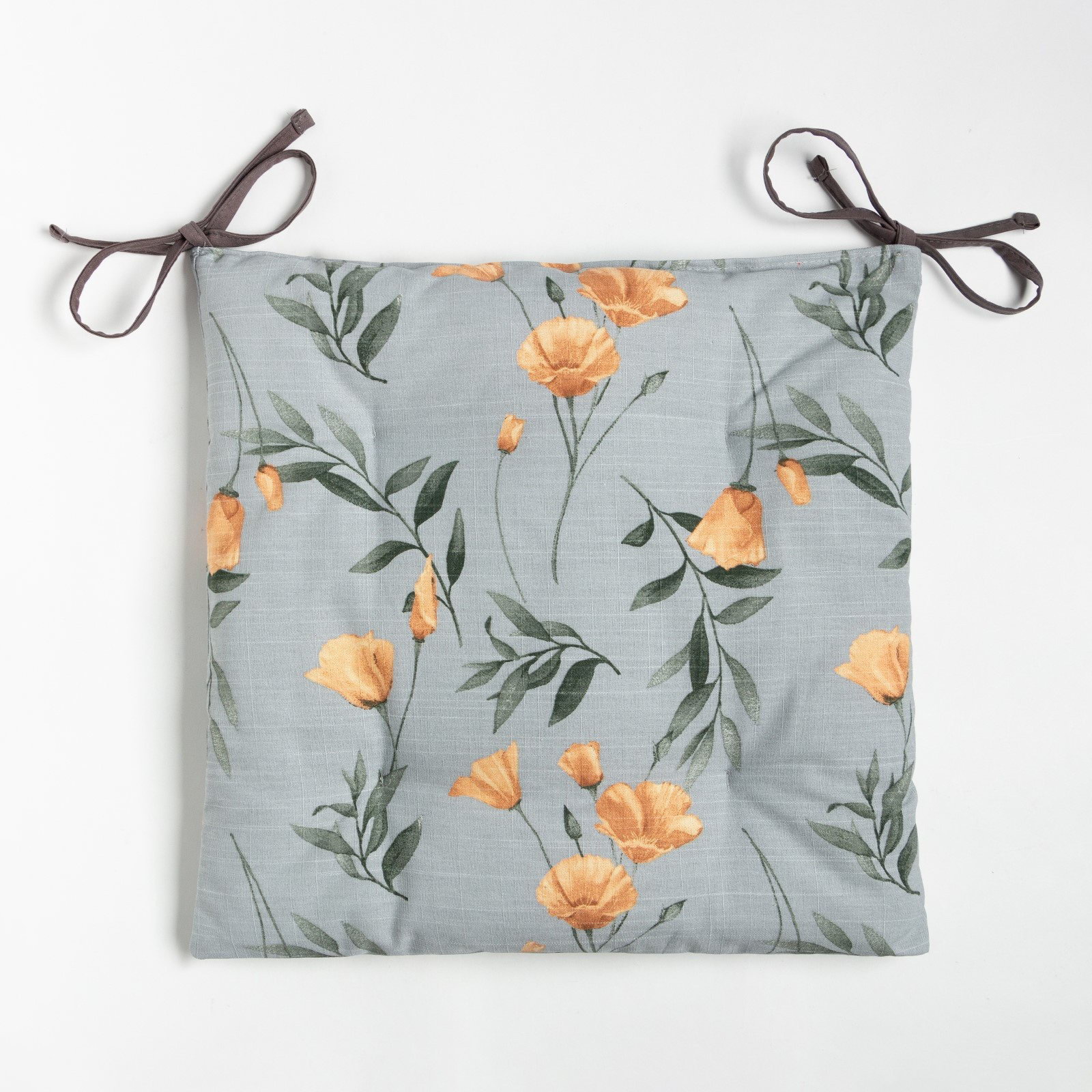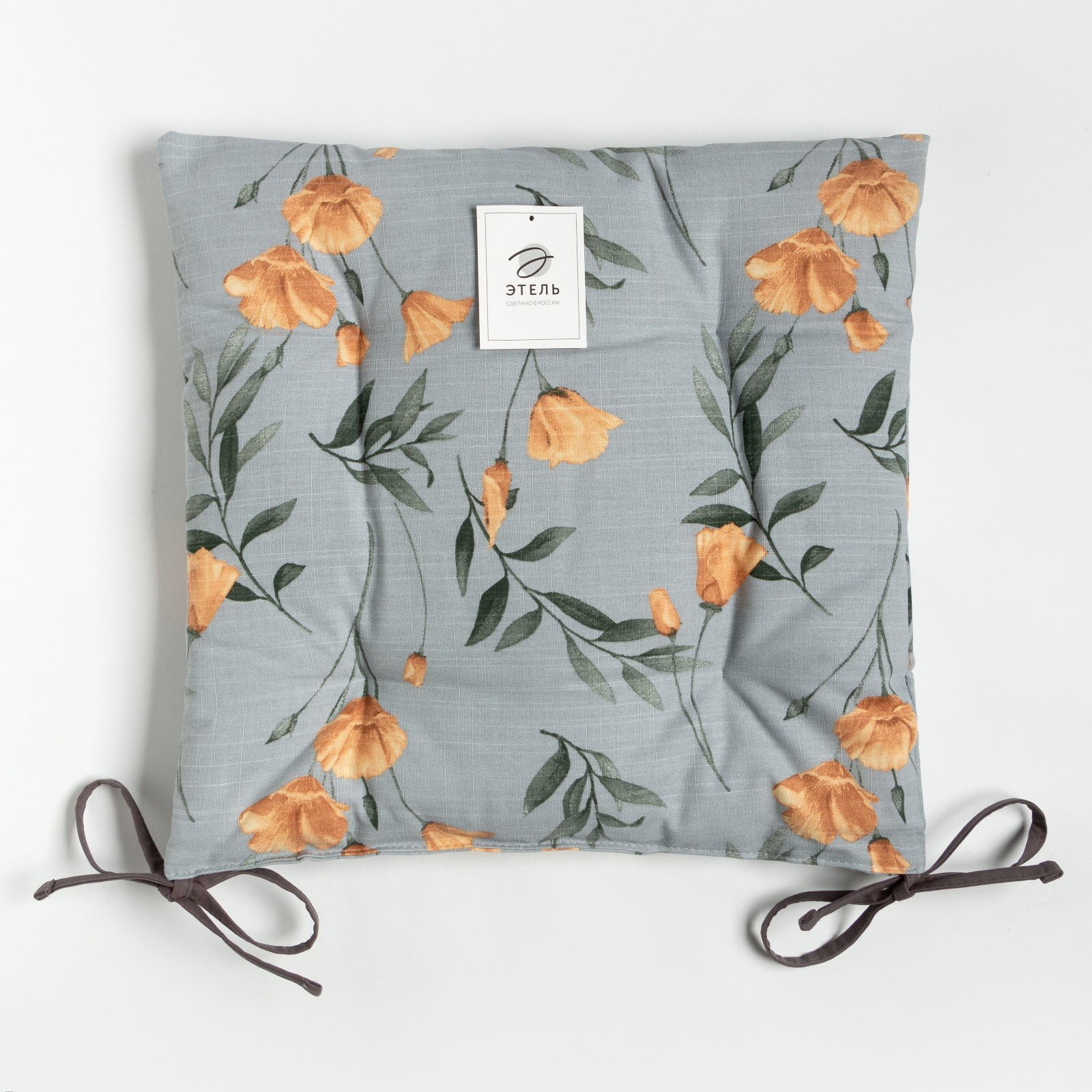 Подушка на стул Yellow poppies, 42x42 см, серая, Этель, Россия