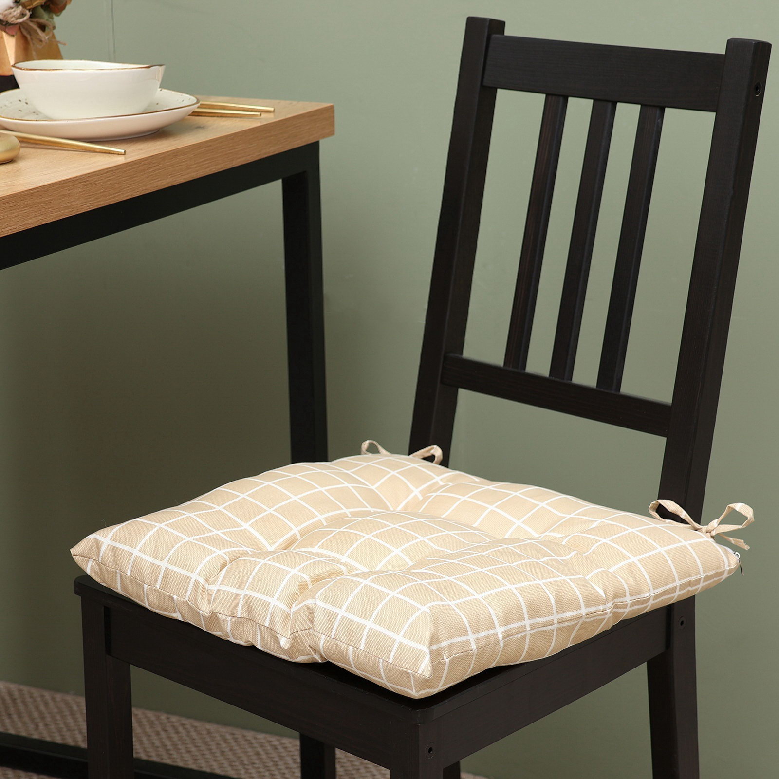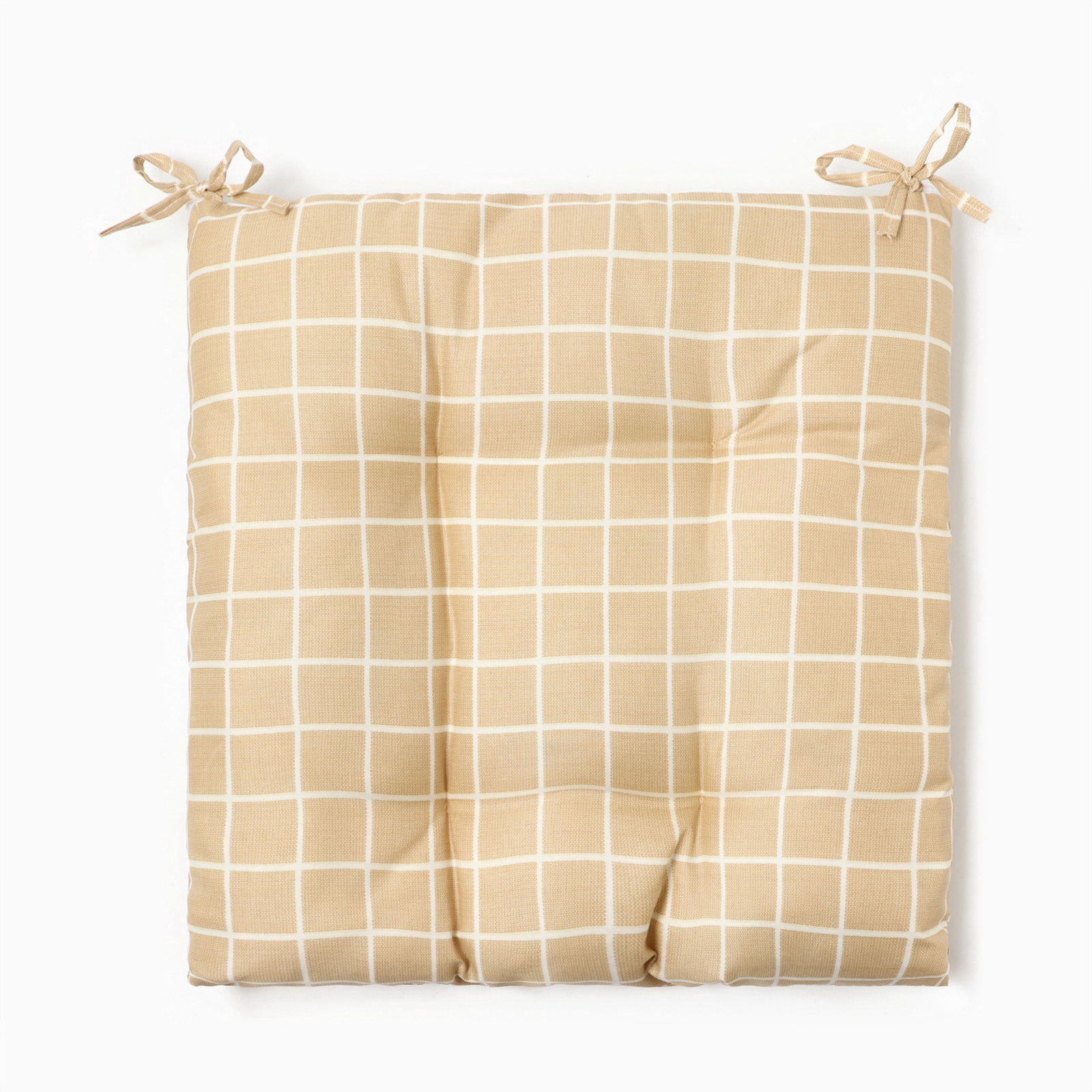 Подушка на стул "Этель. Клетка", 40x40 см, бежевая, Этель, Россия