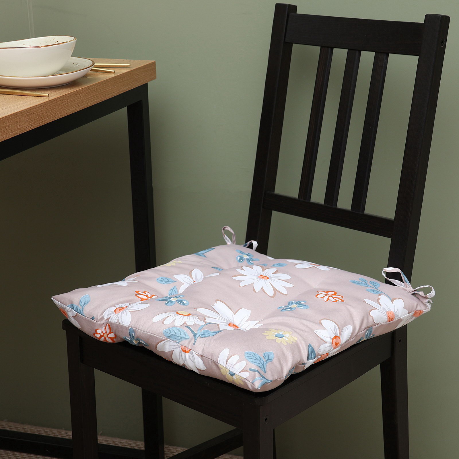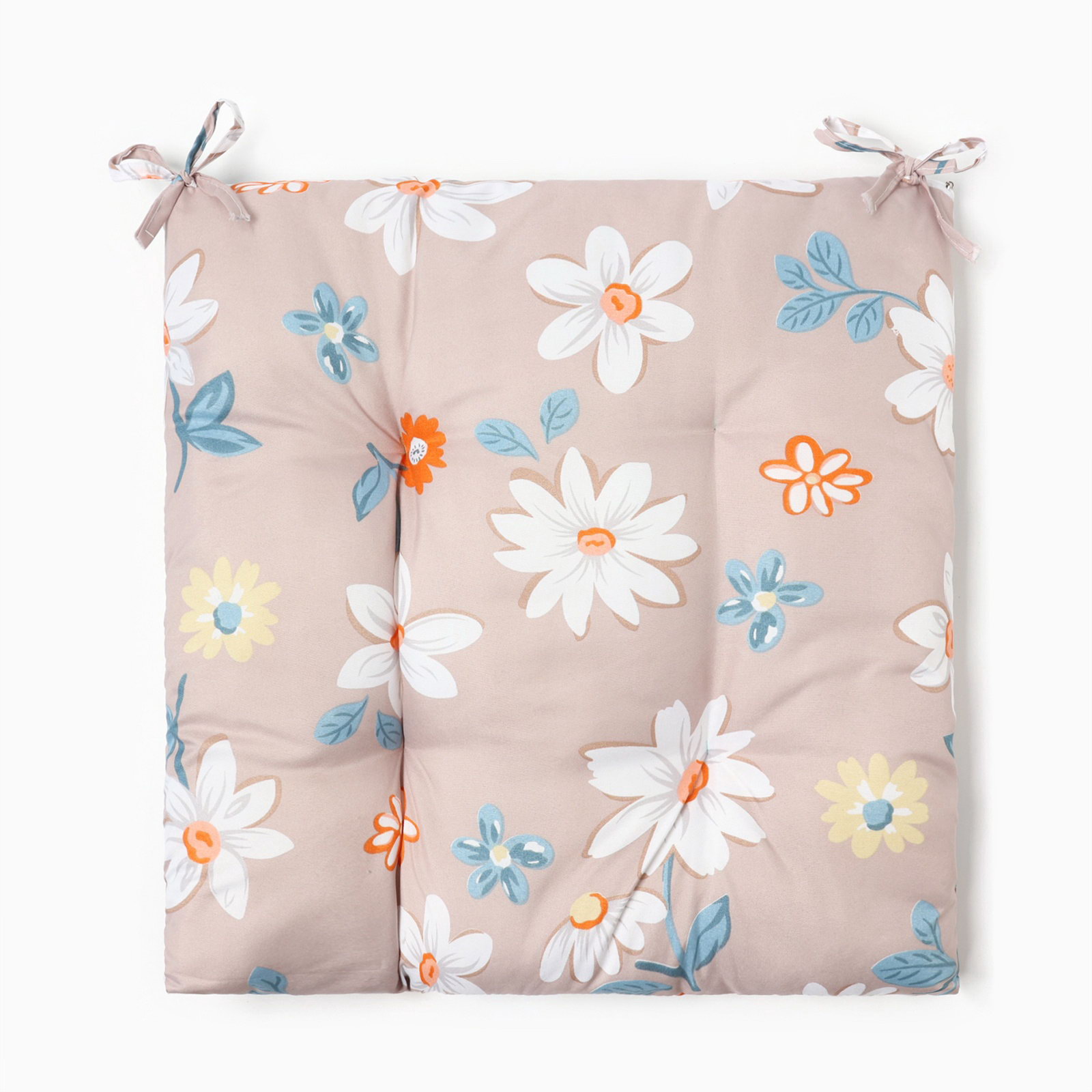 Подушка на стул "Цветы" цв.серый, 40х40 см, 100% п/э, Этель, Россия