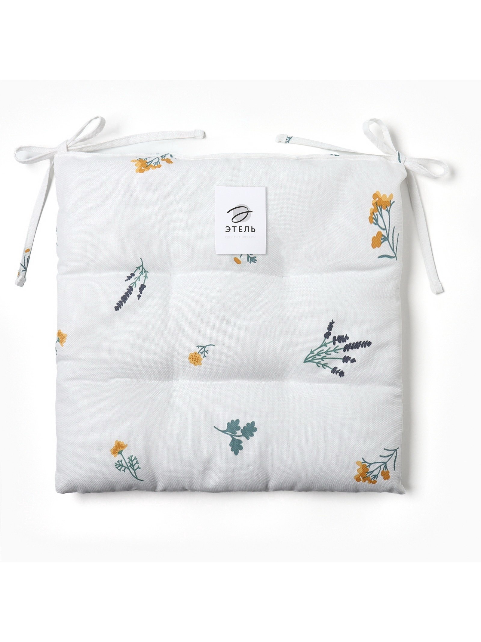 Подушка на стул "Этель. Полевые цветочки", 42x42x7 см, белая, Этель, Россия