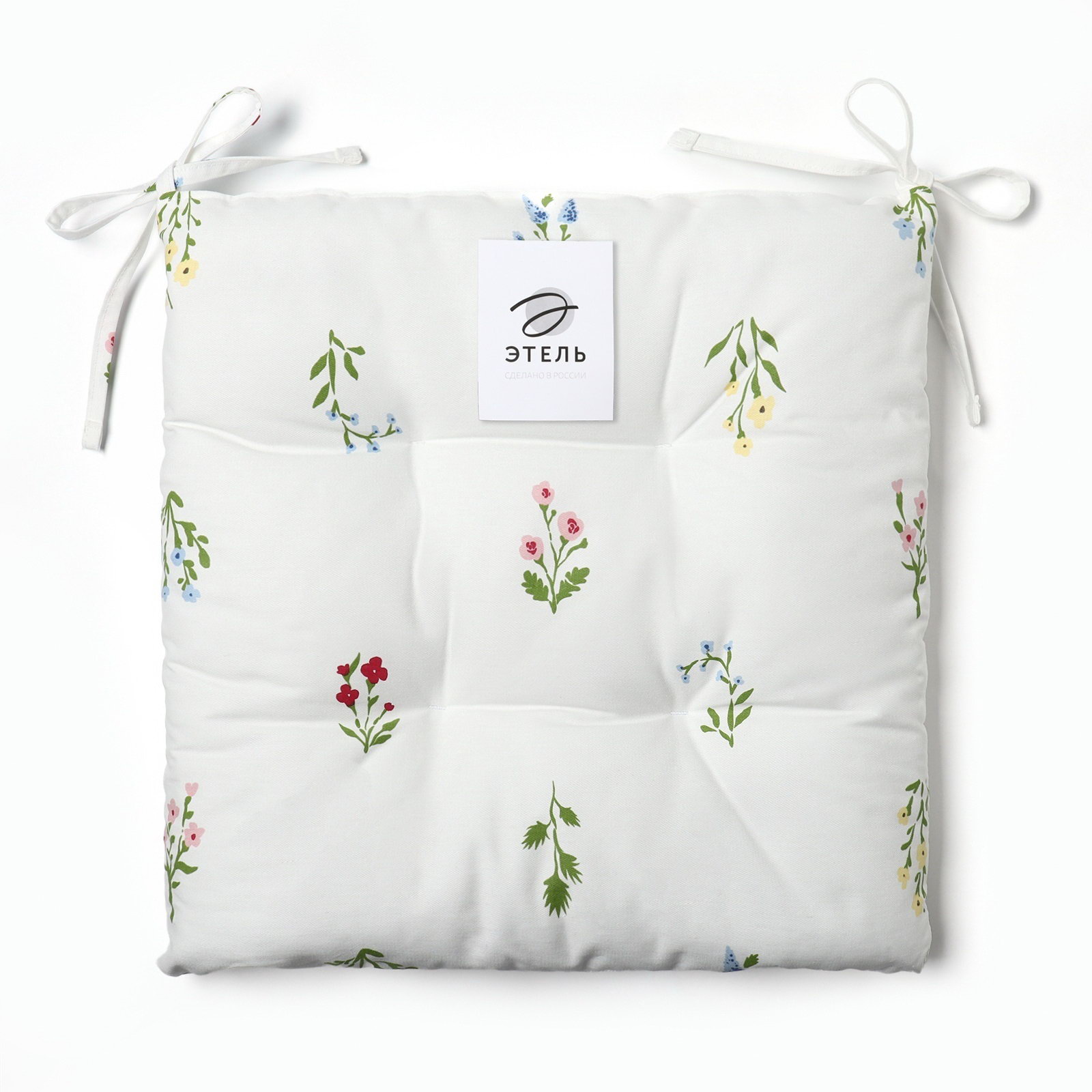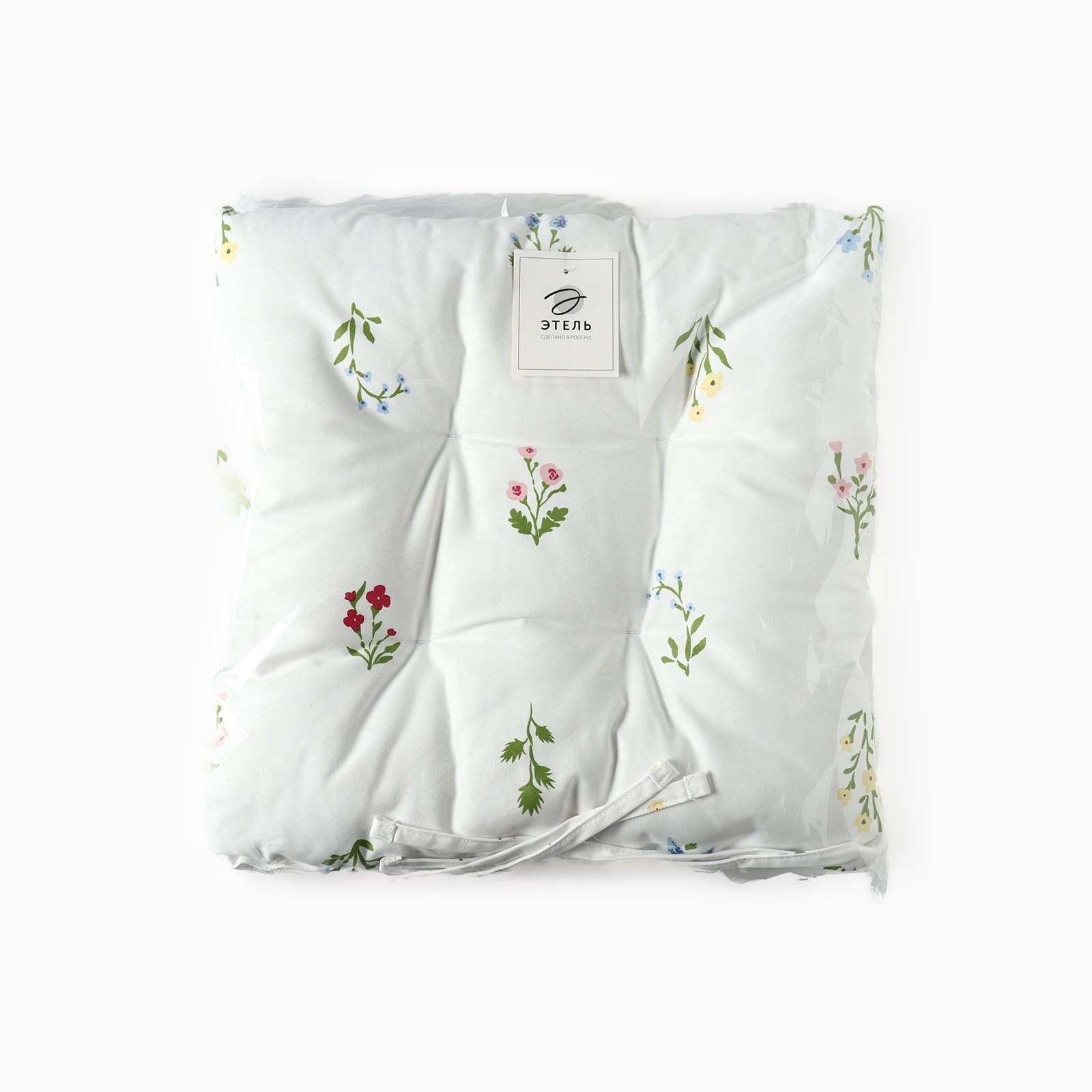 Подушка на стул "Этель. Цветочек", 42x42x7 см, белая, Этель, Россия