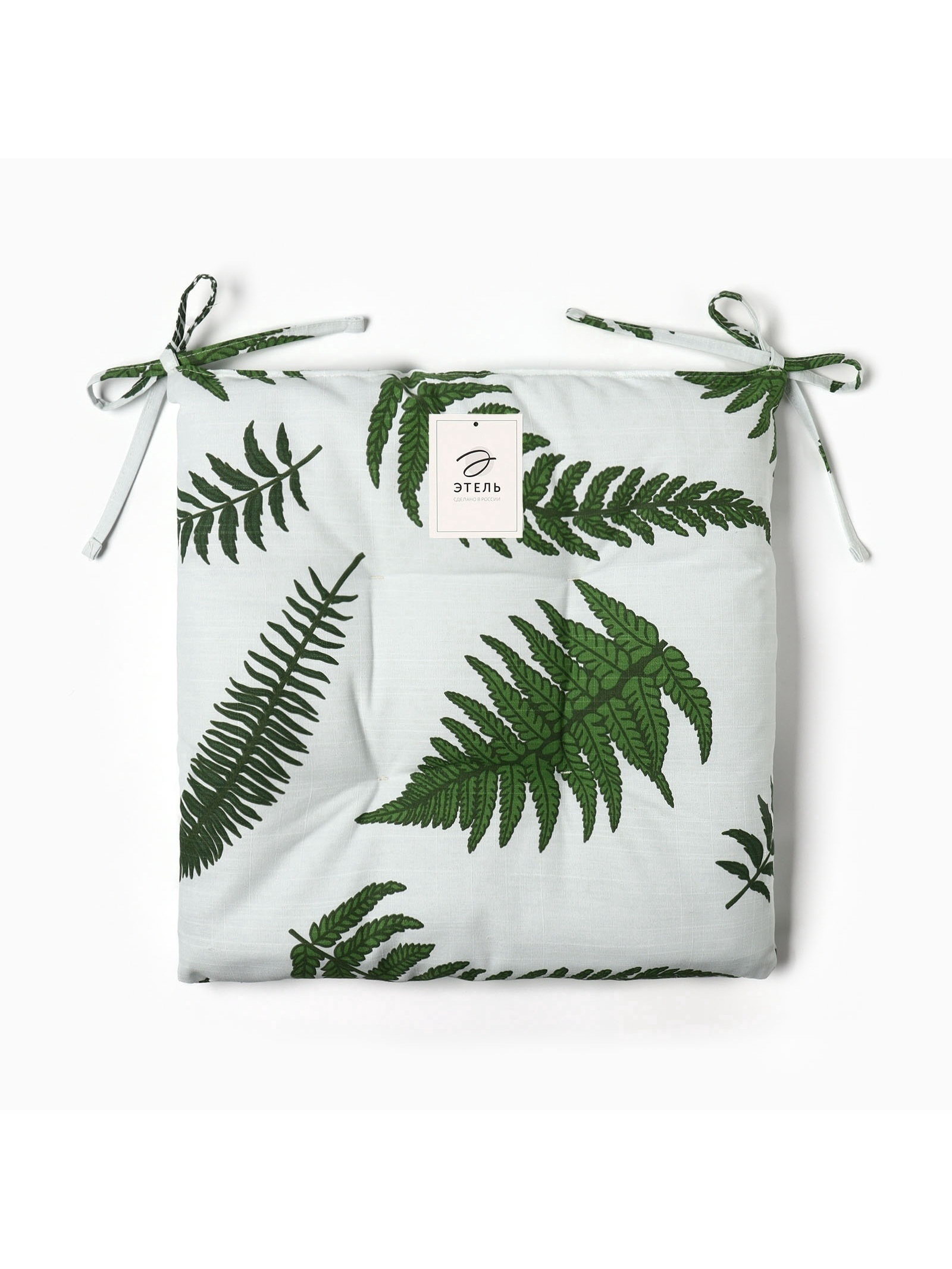 Подушка на стул "Этель. Папоротник", 42x42x7 см, белая, Этель, Россия