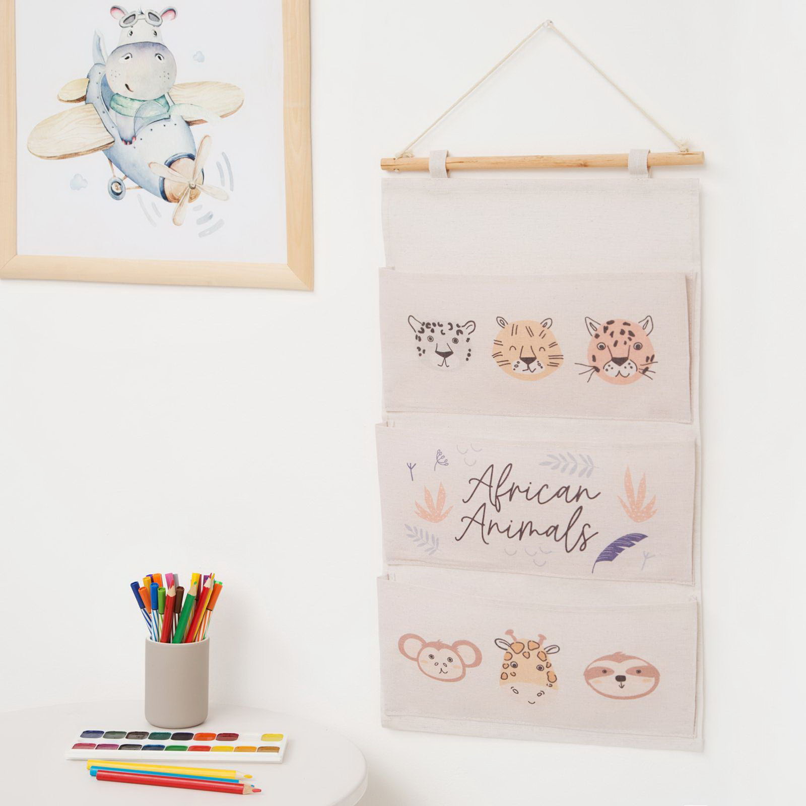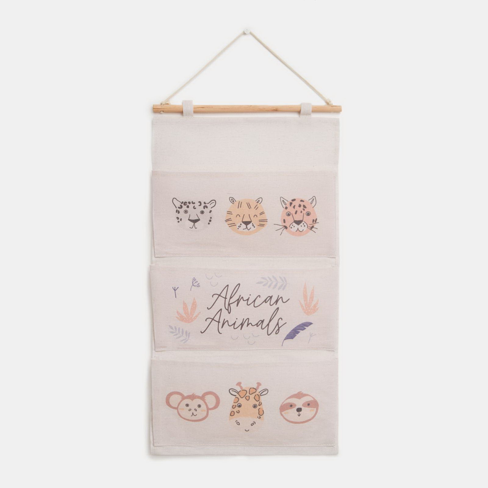 Кармашек текстильный "African animals", 3 отделения, 34*63.5 см, 63.5x34 см., Этель, Китай