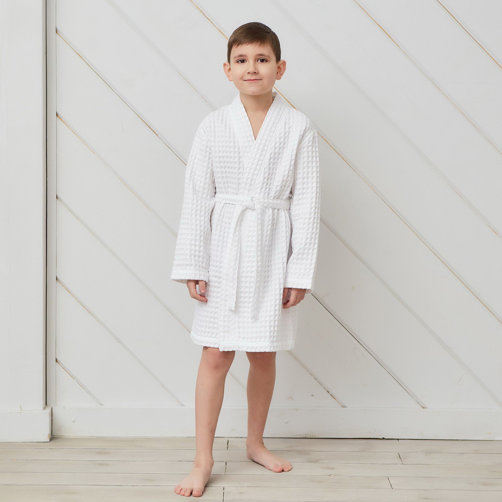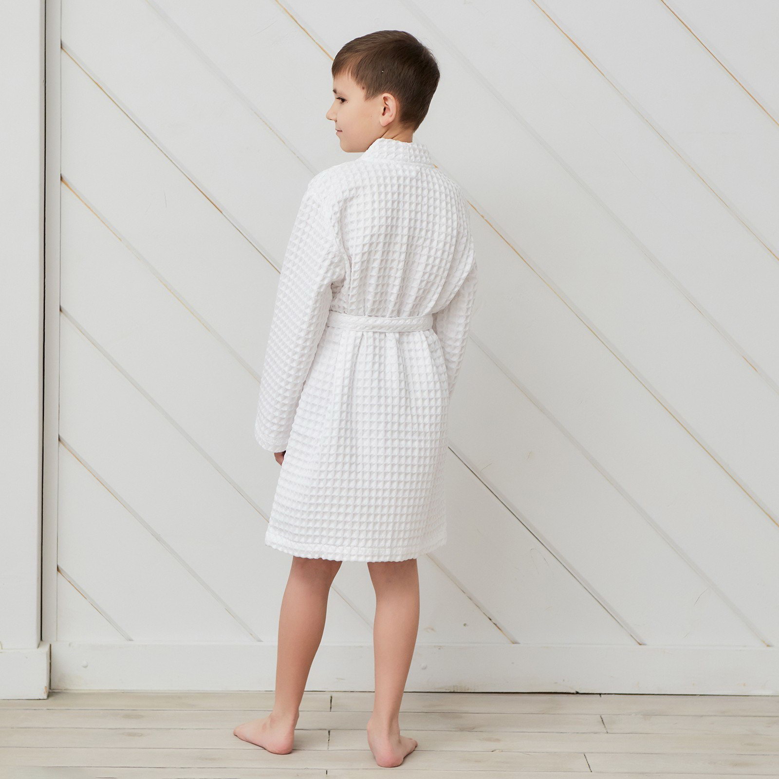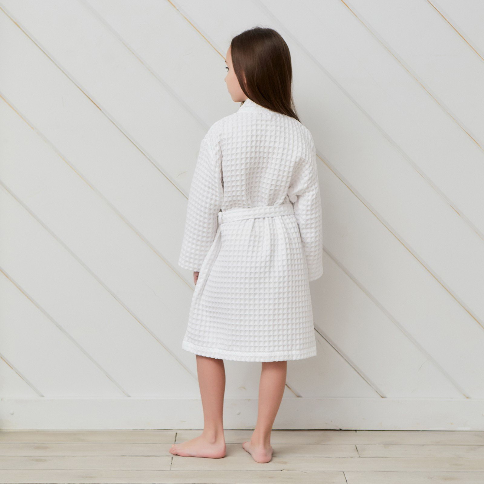 Рекомендации по уходу: Деликатная стирка при 30 ℃, Не отбеливать, Сушка в подвешенном состоянии Сезон: Весна, Всесезонный, Зима, Лето, Осень Для кого: Для девочки, Для мальчика Рост, см: 110, 116 Размер упаковки: 25 x 4 x 25 см. Честный знак: Честный знак Честный знак: Честный знак tnved: 6208910000 Возраст, лет: [4,6] Вид застёжки: Пояс Тематика: Однотонная Тип карманов: Без карманов Назначение: Домашняя Фактура материала: Вафельный С карманом: Нет Цвет: Белый Температурное ограничение: Нет Ткань: Вафельное полотно Вид упаковки: Пакет В подарочной упаковке: Нет Состав ткани: Хлопок Плотность, г/?2: 290 Размер: 32 см