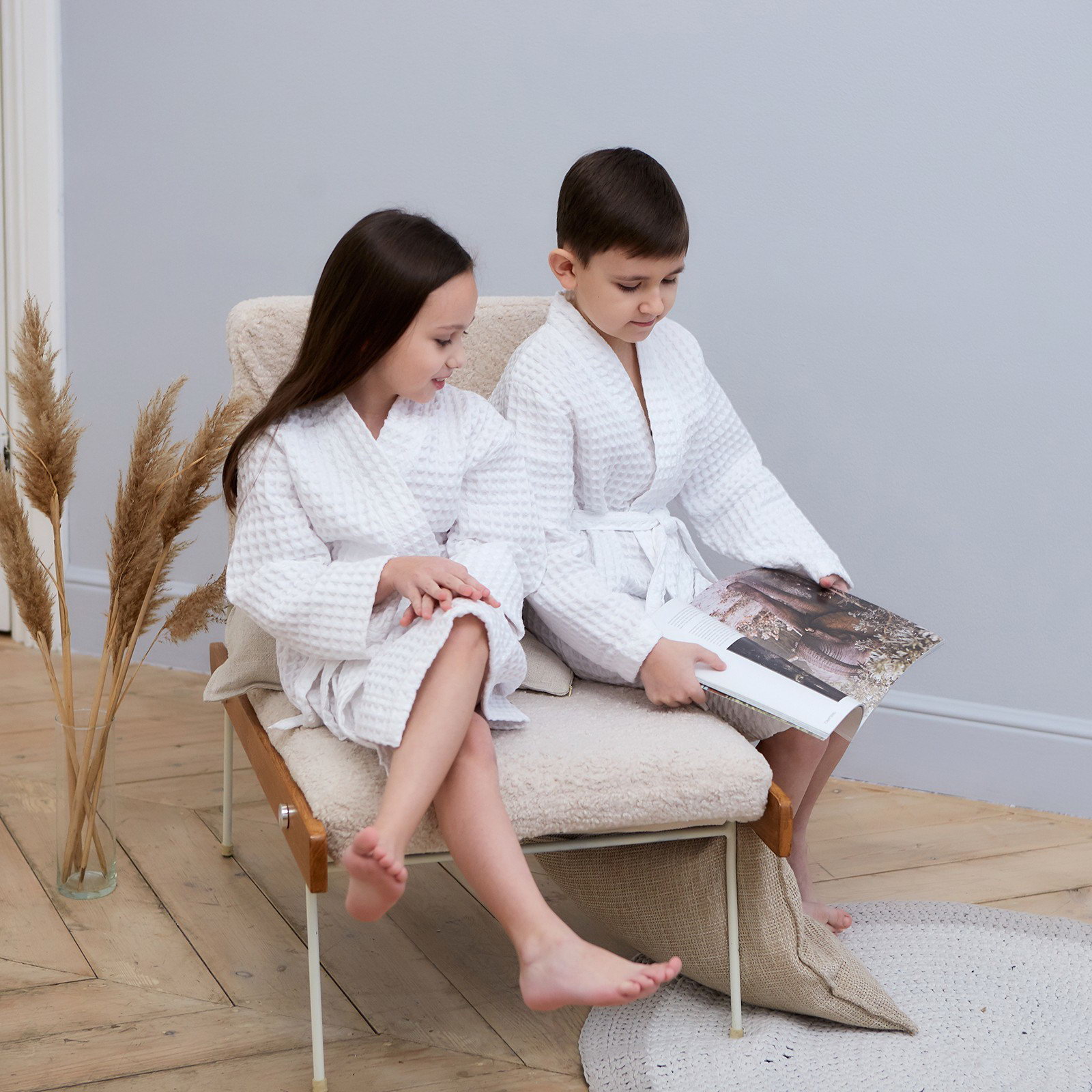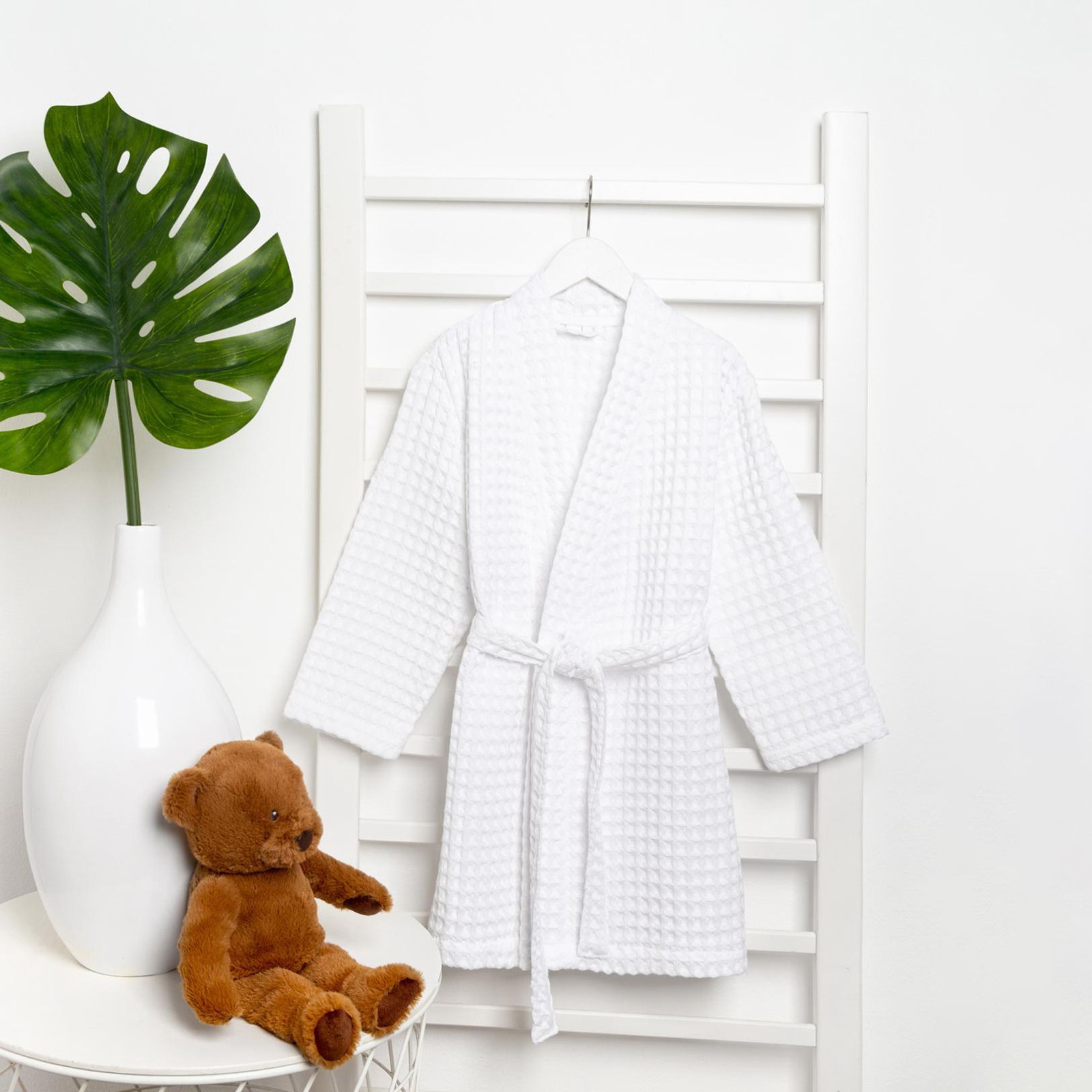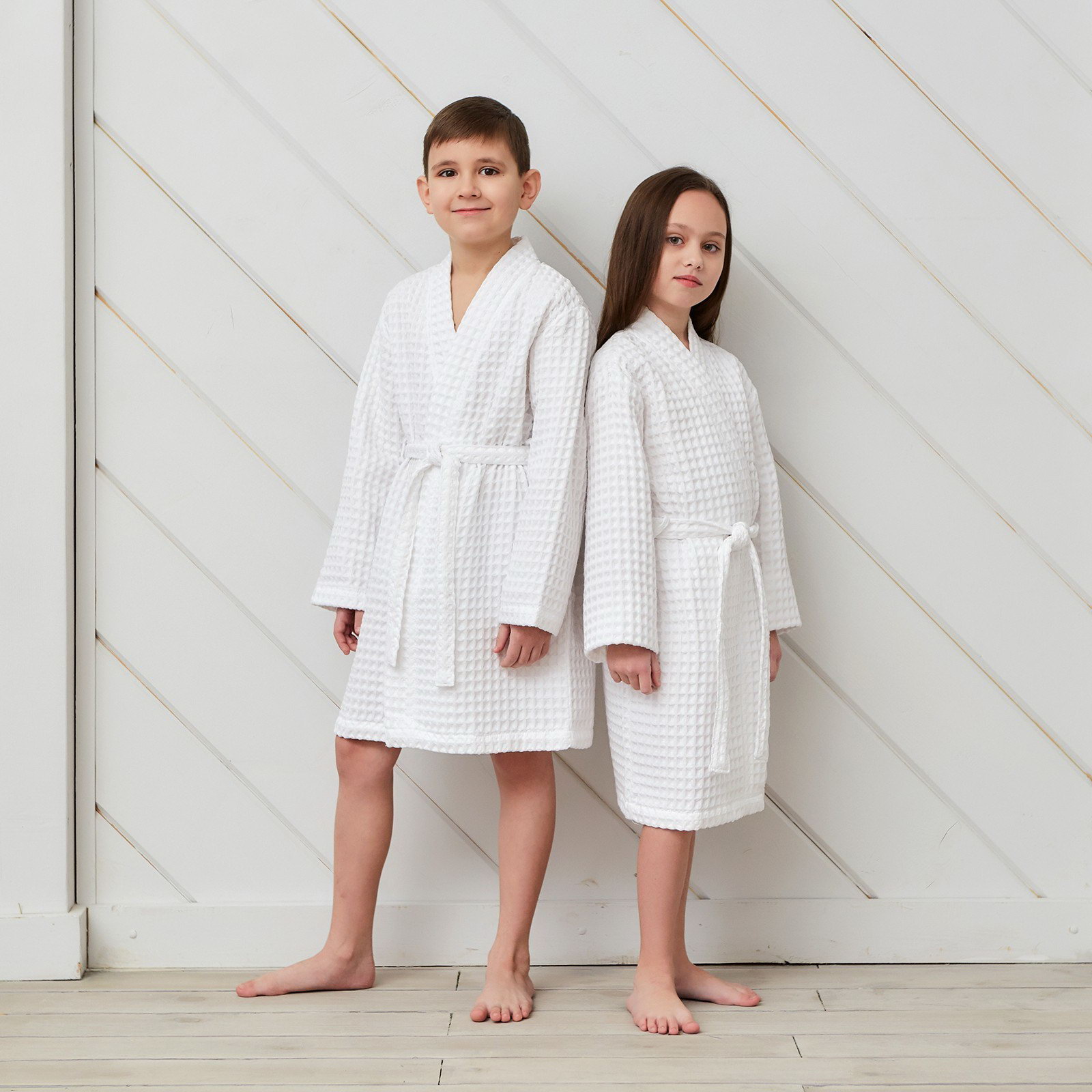 Рекомендации по уходу: Деликатная стирка при 30 ℃, Не отбеливать, Сушка в подвешенном состоянии Сезон: Весна, Всесезонный, Зима, Лето, Осень Для кого: Для девочки, Для мальчика Рост, см: 110, 116 Размер упаковки: 25 x 4 x 25 см. Честный знак: Честный знак Честный знак: Честный знак tnved: 6208910000 Возраст, лет: [4,6] Вид застёжки: Пояс Тематика: Однотонная Тип карманов: Без карманов Назначение: Домашняя Фактура материала: Вафельный С карманом: Нет Цвет: Белый Температурное ограничение: Нет Ткань: Вафельное полотно Вид упаковки: Пакет В подарочной упаковке: Нет Состав ткани: Хлопок Плотность, г/?2: 290 Размер: 32 см