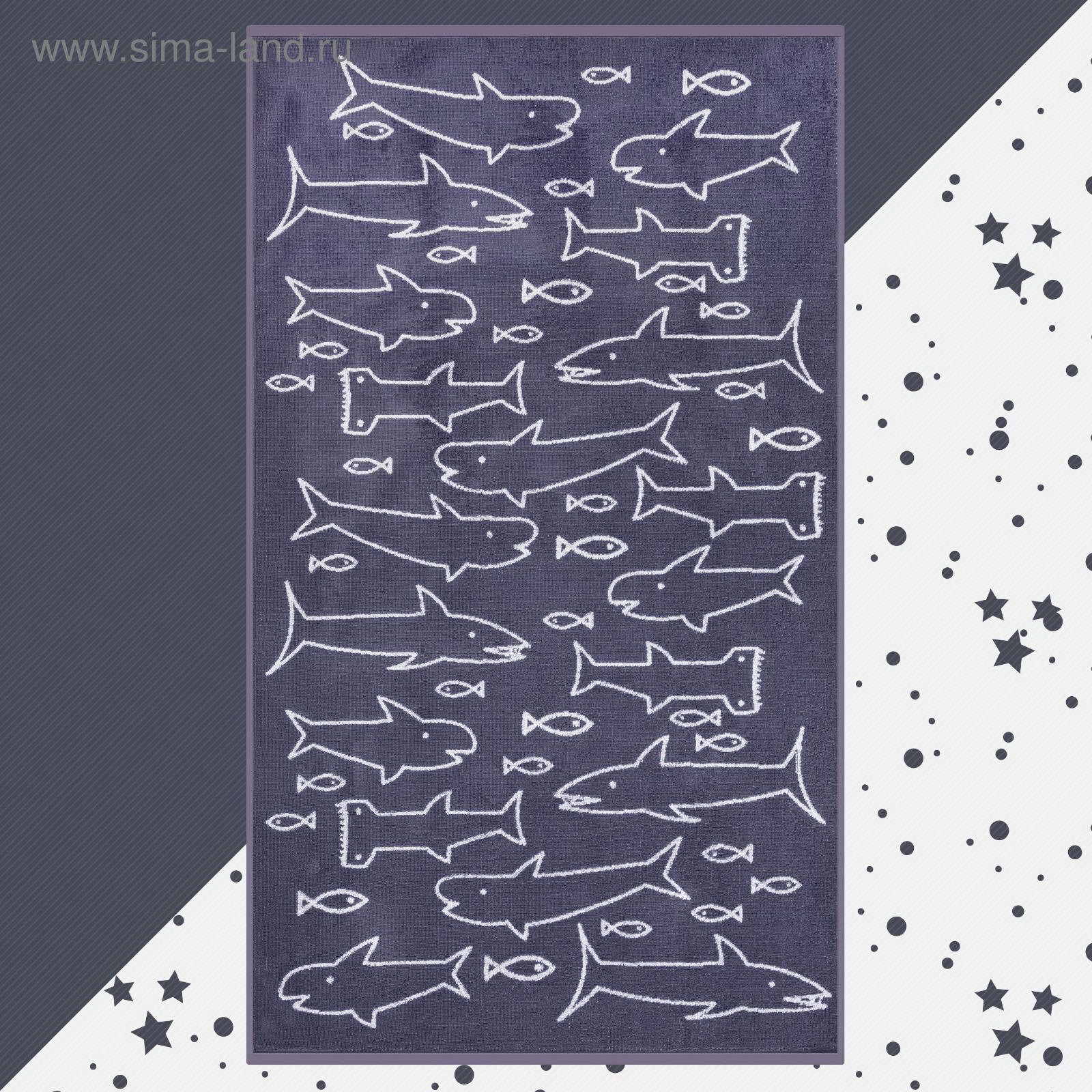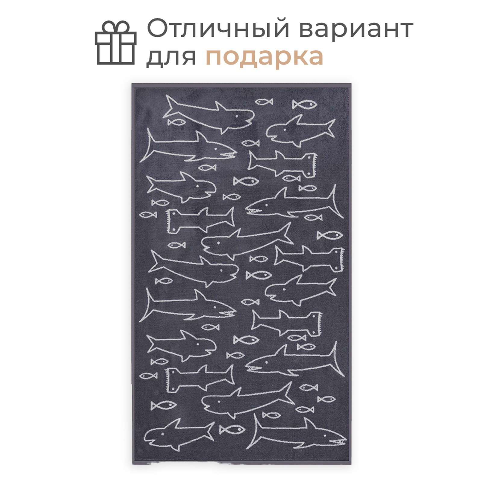 Полотенце махровое "Этель. Акулы", 70x130 см, хлопок 100%, серое, Этель, Россия