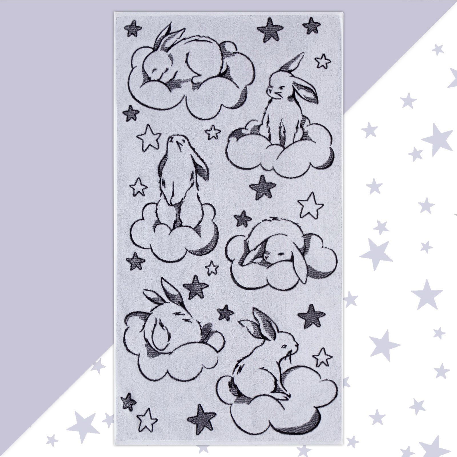 Полотенце махровое "Зайки на облаках", 70x130 см, 100% хлопок, 420 г/?2, чёрно-белое, Этель, Россия