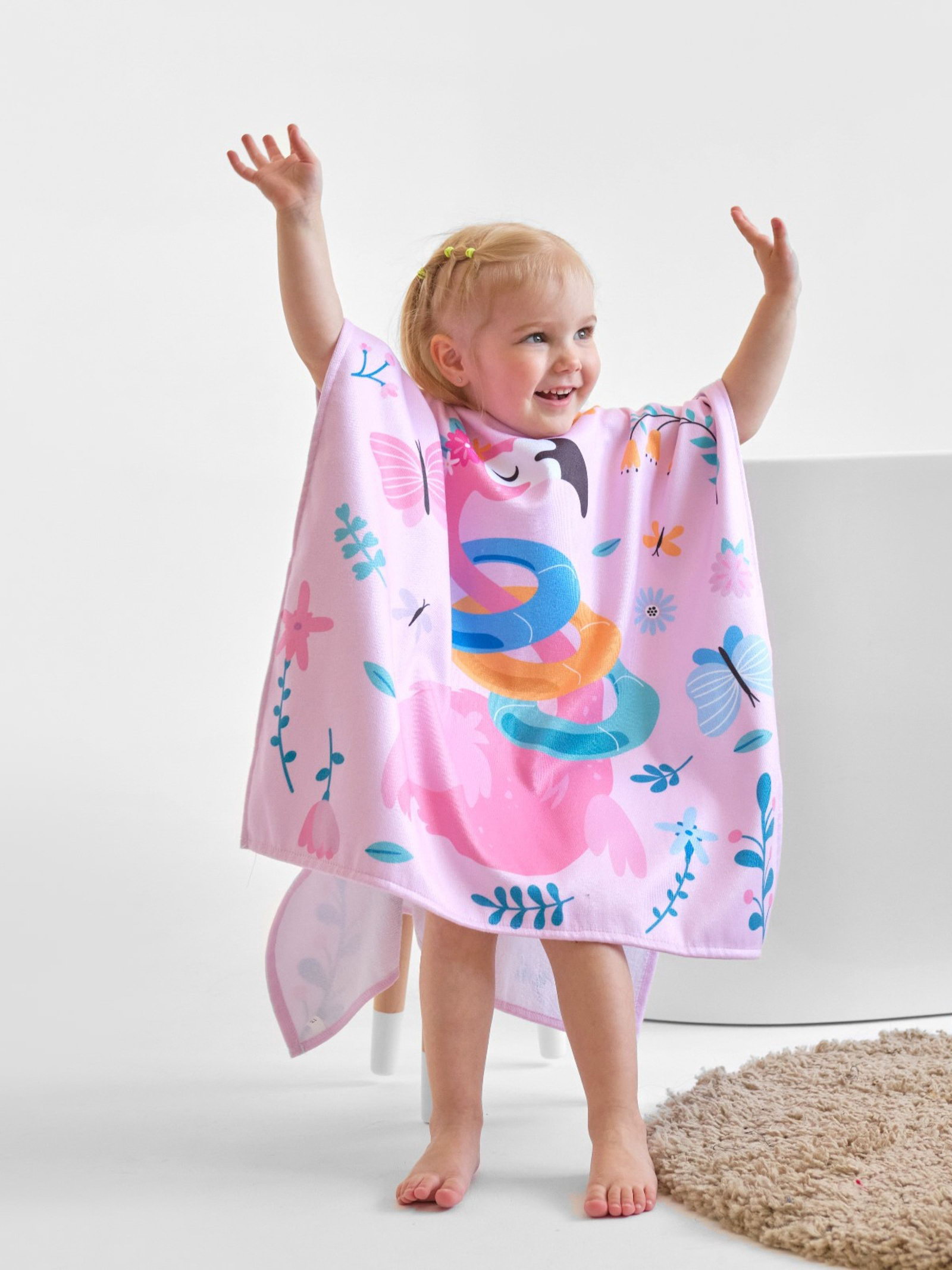 Полотенце - пончо детское махровое "Крошка Я. Фламинго", 60x120 см, розовое, Крошка Я, Россия
