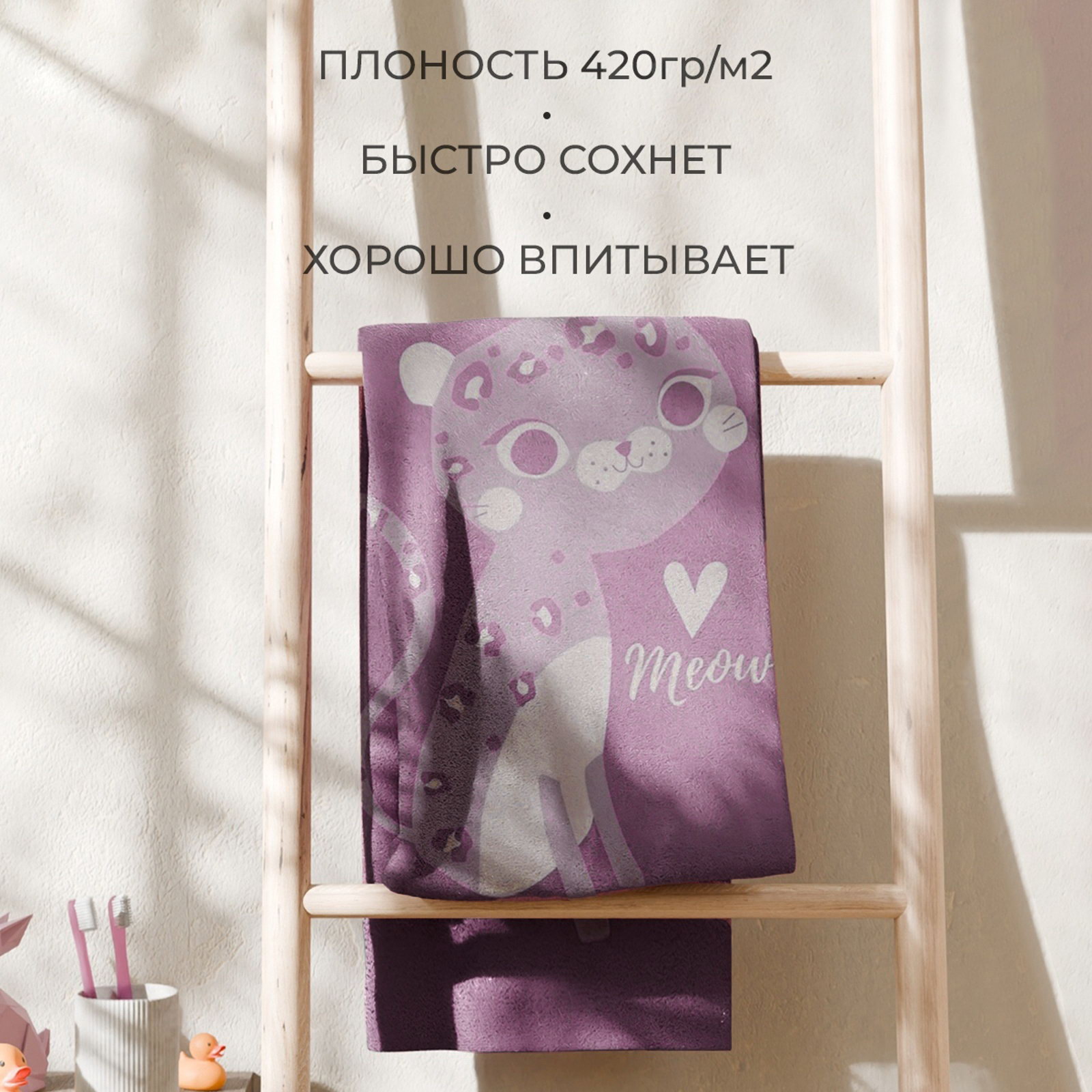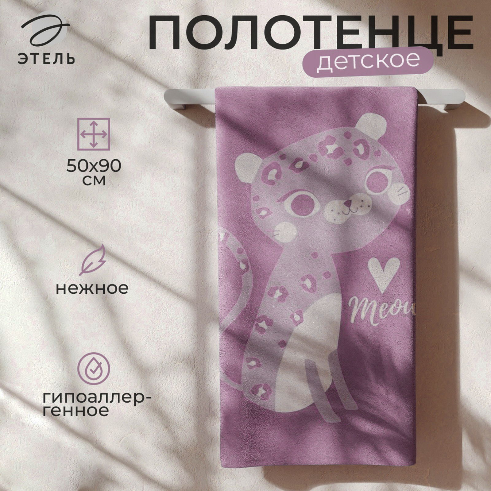 Полотенце детское махровое "Этель. Милый леопард", 50x90 см, хлопок 100%, розовое, Этель, Россия