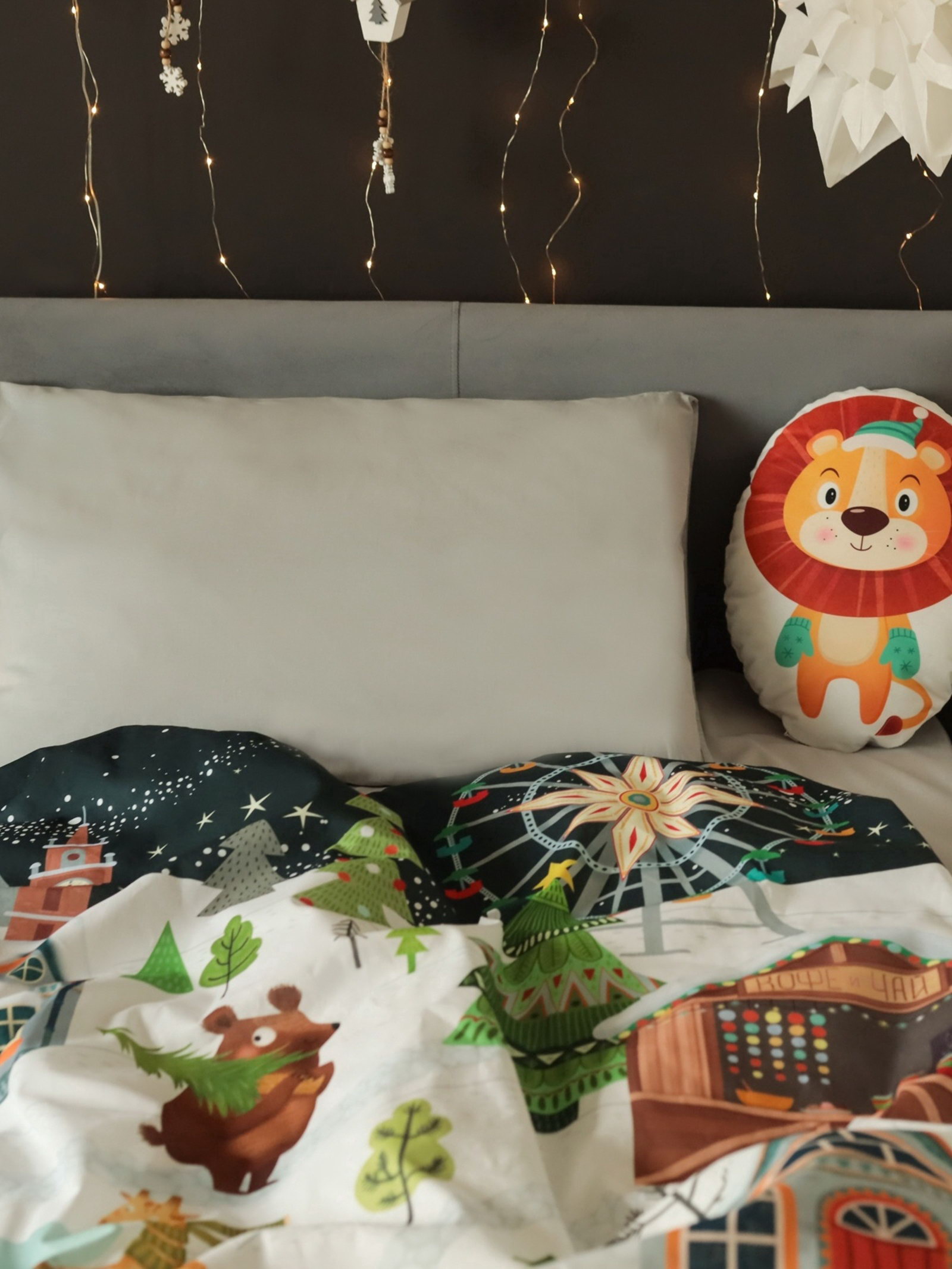 Комплектация: Наволочка, Пододеяльник, Простыня Цвет: Серый, Синий Рекомендации по уходу: Барабанная сушка при низкой температуре, Глажка при 150 ℃, Не отбеливать, Стирка при 40 ℃ Размер упаковки: 29.5 x 6 x 30 см. Размер упаковки: 29.5 x 6 x 30 см. tnved: 6302210000 Ткань: Бязь Размер простыни, см: 150 x 214 Количество наволочек: 1 Тематика праздника: Новый год Размер пододеяльника, см: 143 x 215 Размер: 1.5-спальное см Размер наволочки, см: 50 x 70 Состав ткани: Хлопок Плотность, г/?2: 125 На резинке: Нет Температурное ограничение: Нет На молнии: Нет Вид упаковки: PVC-пакет Простыня в комплекте: Да Фактура материала: Гладкий Особенности простыни: Стандартная Назначение: Детям Для кого: Унисекс Вид застёжки: Клапан Честный знак: Да Вид застёжки наволочки: Клапан Вид застёжки пододеяльника: Без застёжки Сезон: Зима Тип принадлежности к праздникам: Новый год Декоративные элементы: Без элементов Подарите вашему ребенку волшебные сны этой зимой с нашим детским полутораспальным комплектом постельного белья "Зимние забавы". Мягкая и нежная бязь из 100% хлопка с ярким и забавным рисунком создаст уютную атмосферу в детской комнате и подарит тепло и комфорт на всю ночь. Почему этот детский новогодний комплект постельного белья - отличный выбор:
