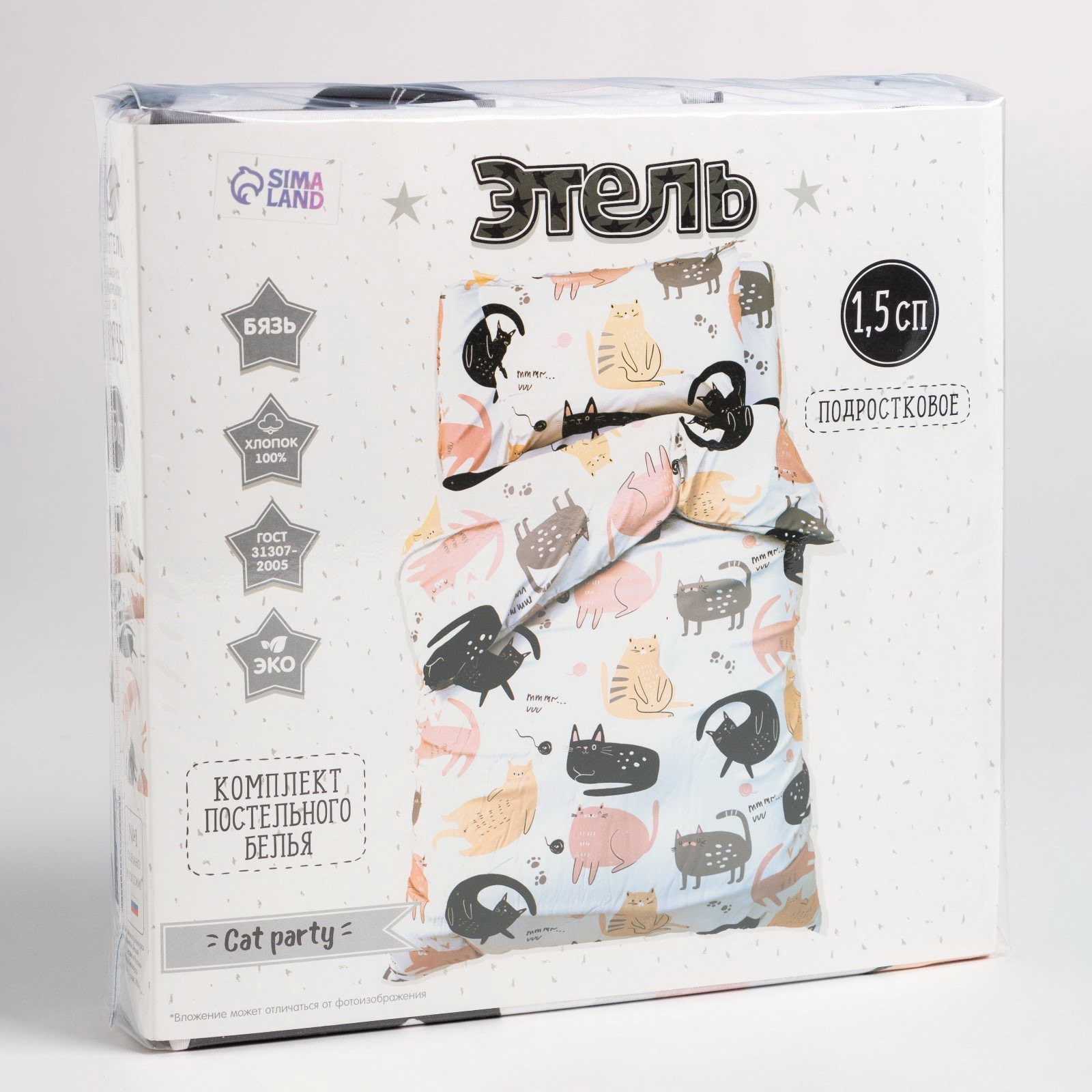 Постельное бельё 1.5-спальное Cat party, бязь, Этель, Россия