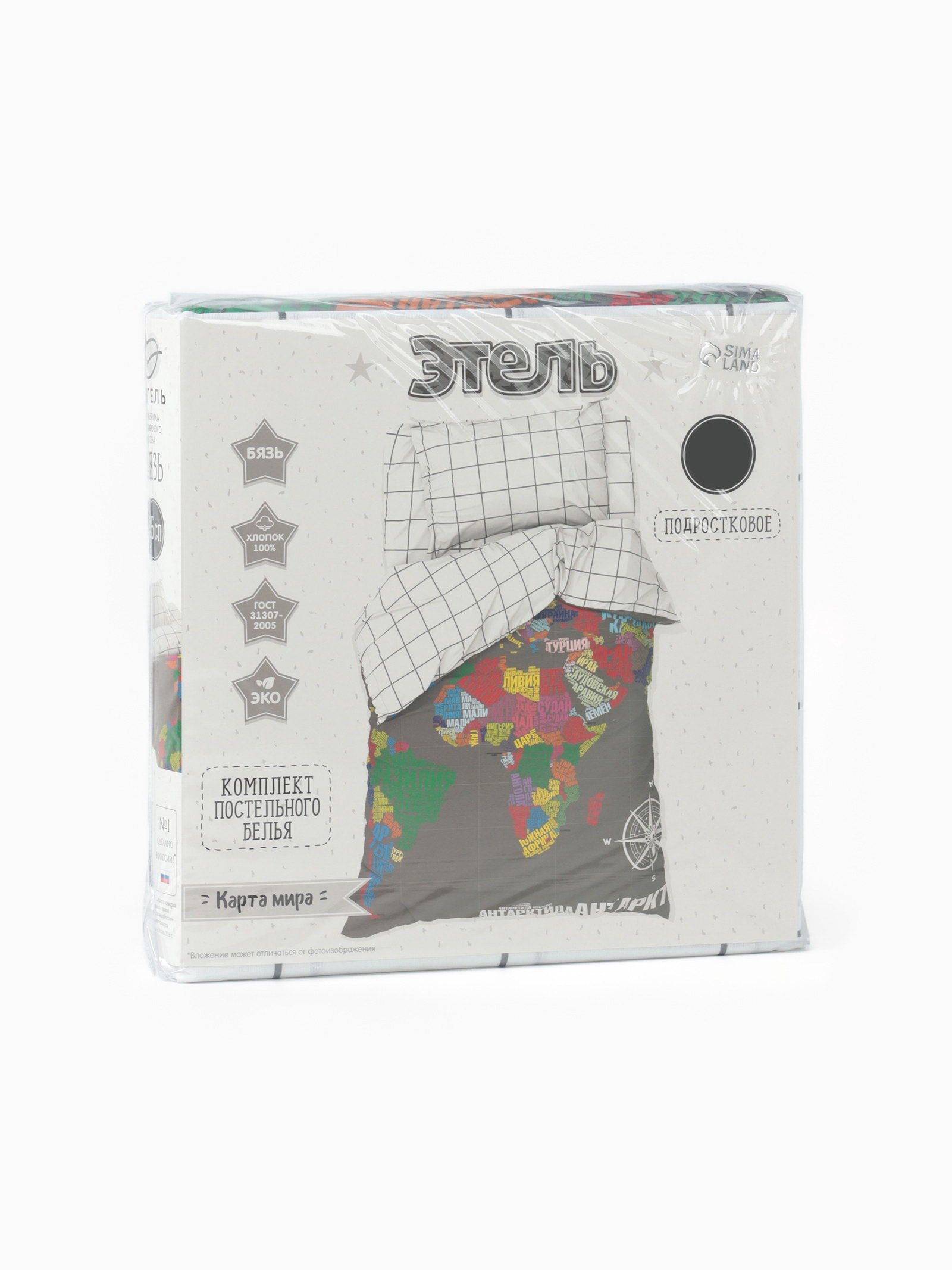 Постельное бельё 1.5-спальное "Этель. Карта мира", бязь, Этель, Россия