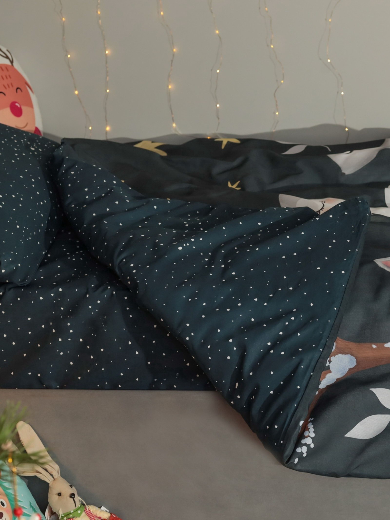 Комплектация: Наволочка, Пододеяльник, Простыня Сезон: Зима, Осень Для кого: Для девочки, Для мальчика, Унисекс Цвет: Серый, Синий Тематика: Зима, Новогодняя Рекомендации по уходу: Барабанная сушка при низкой температуре, Глажка при 150 ℃, Не отбеливать, Стирка при 40 ℃ Размер упаковки: 29 x 6 x 30 см. Размер упаковки: 29 x 6 x 30 см. tnved: 6302210000 Вид упаковки: PVC-коробка Температурное ограничение: Нет Честный знак: Да Декоративные элементы: Без элементов Размер пододеяльника, см: 143 x 215 Размер простыни, см: 150 x 214 Плотность, г/?2: 125 Тип принадлежности к праздникам: Новый год Размер наволочки, см: 50 x 70 Размер: 1.5-спальное см Вид застёжки пододеяльника: Без застёжки Фактура материала: Гладкий Особенности простыни: Стандартная Назначение: Детям Вид застёжки наволочки: Клапан Состав ткани: Хлопок Ткань: Бязь На резинке: Нет Количество наволочек: 1 Тематика праздника: Новый год Простыня в комплекте: Да Подарите вашему ребенку сказочные сны в зимнюю пору с нашим детским полутораспальным комплектом постельного белья "Winter Fairytale". Мягкая и нежная бязь из 100% хлопка с волшебным зимним рисунком создаст атмосферу тепла и уюта, погружая в мир сновидений и новогодних чудес. Почему этот детский новогодний комплект постельного белья станет особенным:
