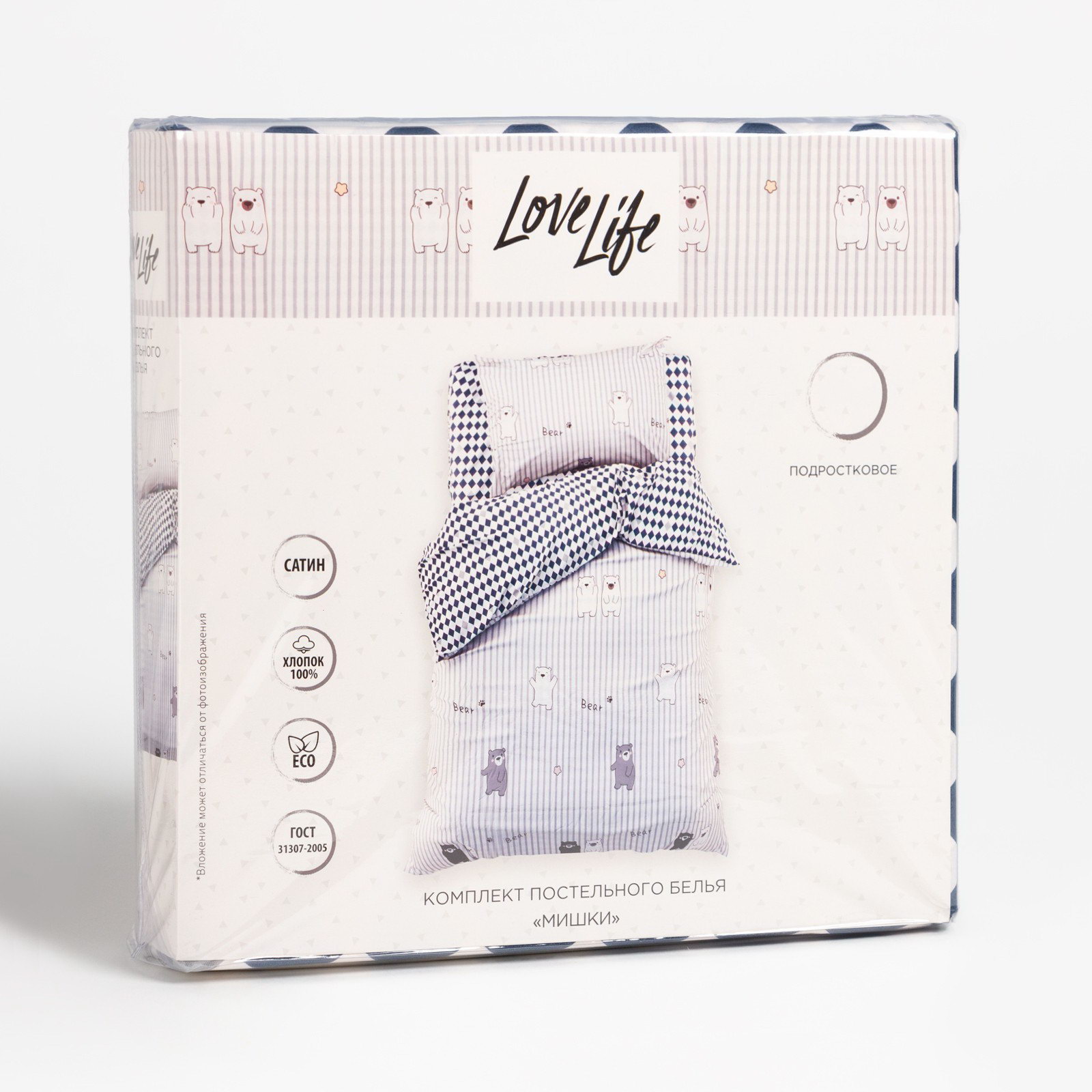 Постельное бельё 1.5-спальное "Мишки", сатин, LoveLife, Россия
