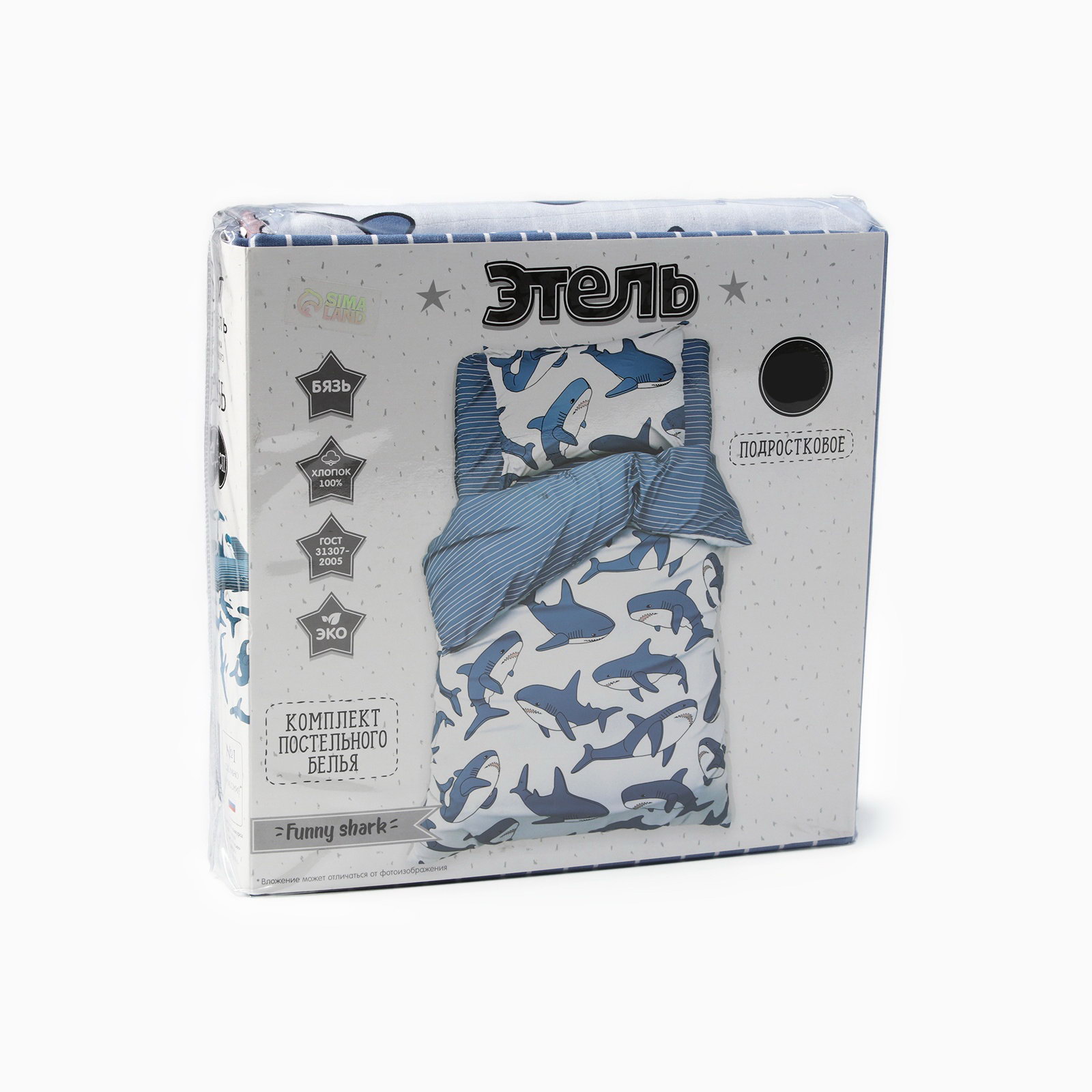 Постельное бельё 1.5-спальное Funny shark, бязь, Этель, Россия