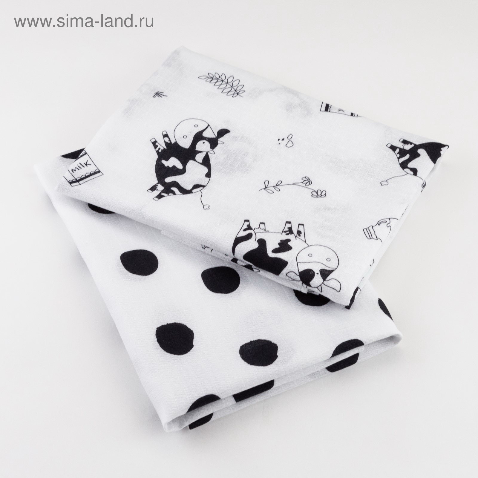 Набор муслиновых пеленок Happy cow 75*120 см - 2 шт, хлопок 100%, Крошка Я, Россия