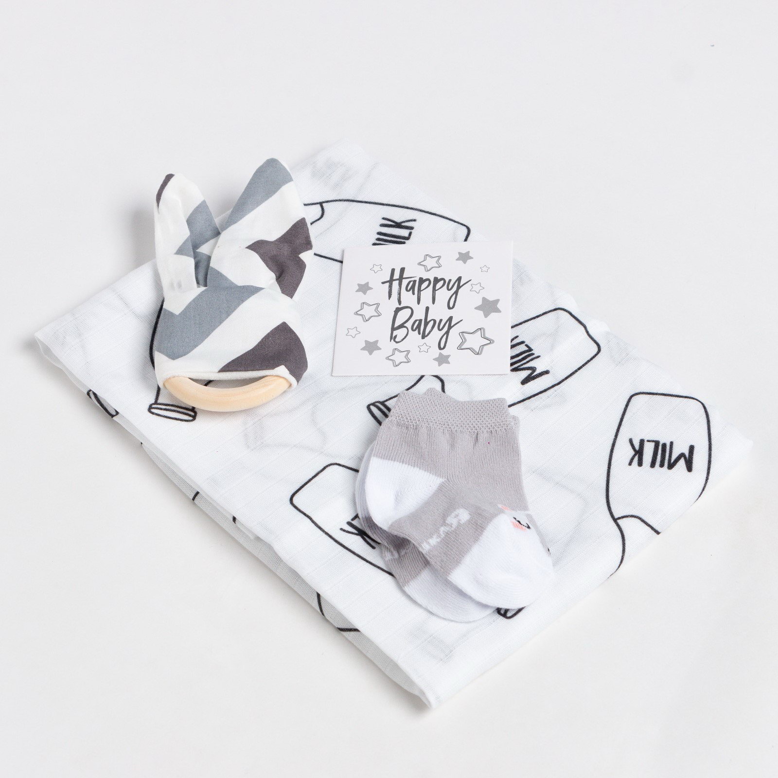 Набор "Milk", Пелёнка муслиновая 75х120см, носки 8-10см, аксессуар, Крошка Я, Россия