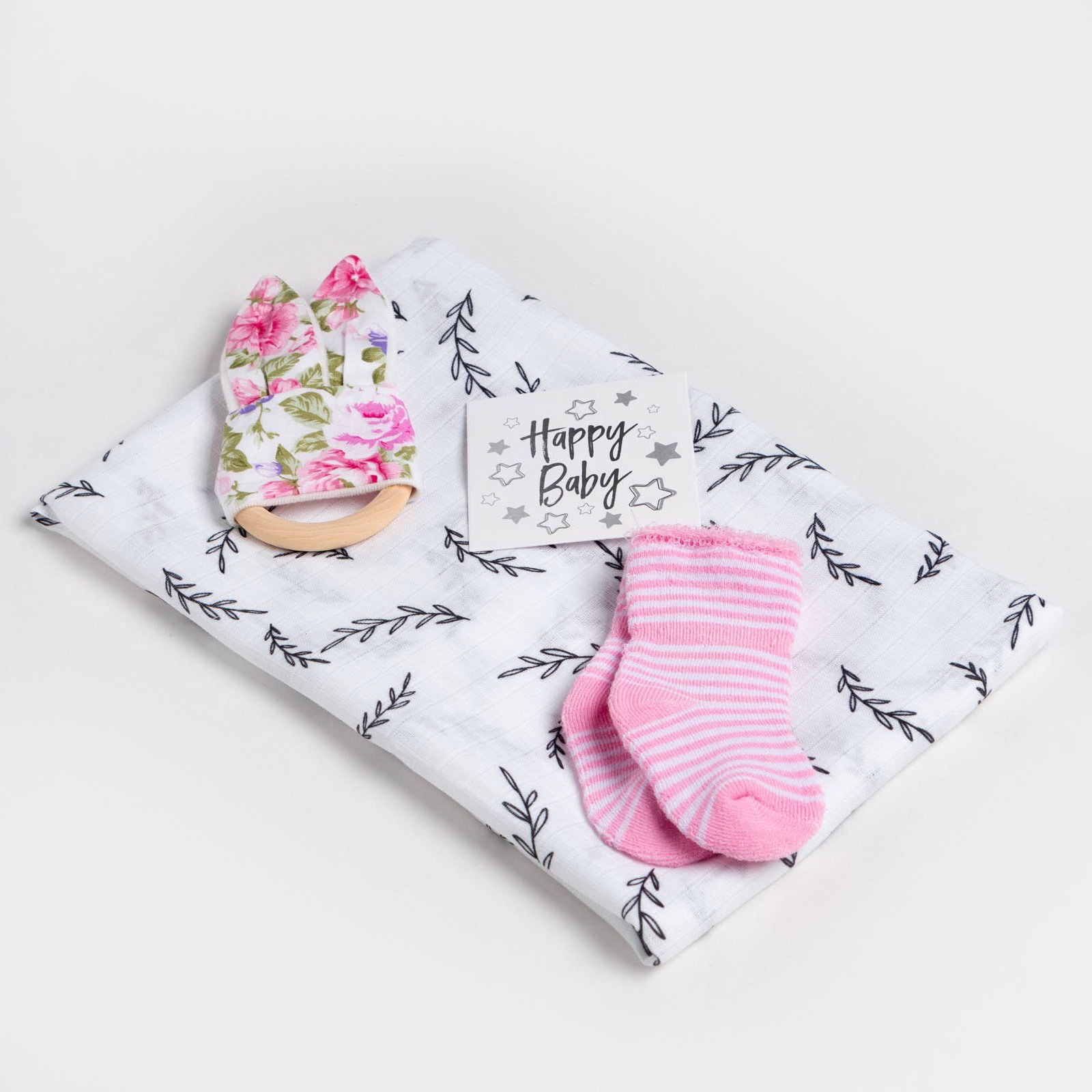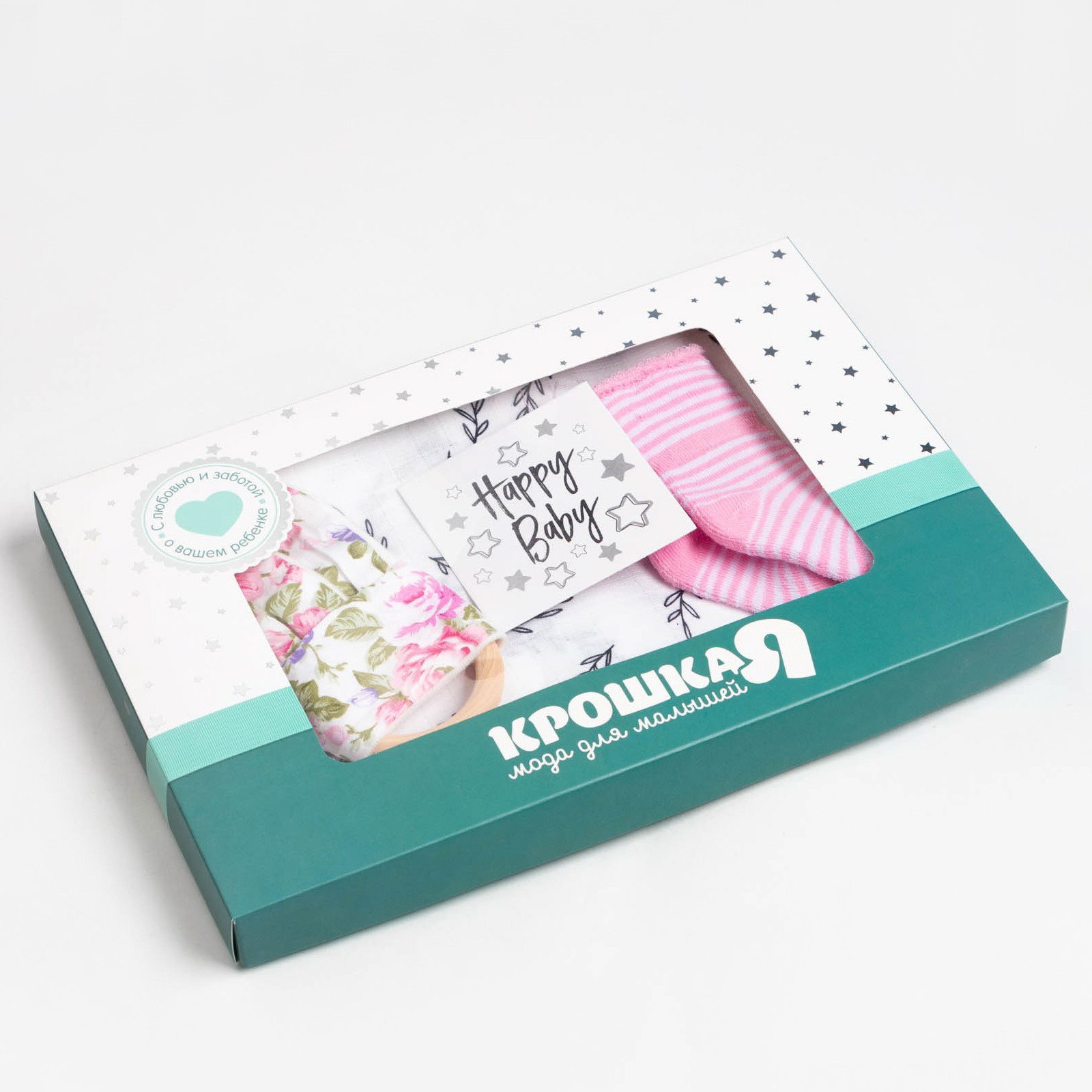 Набор "Flowers" Пелёнка муслиновая 75x120 см, носки 8-10 см, аксессуар, Крошка Я, Россия