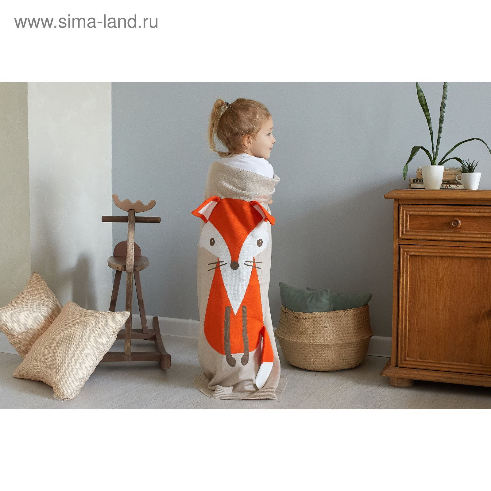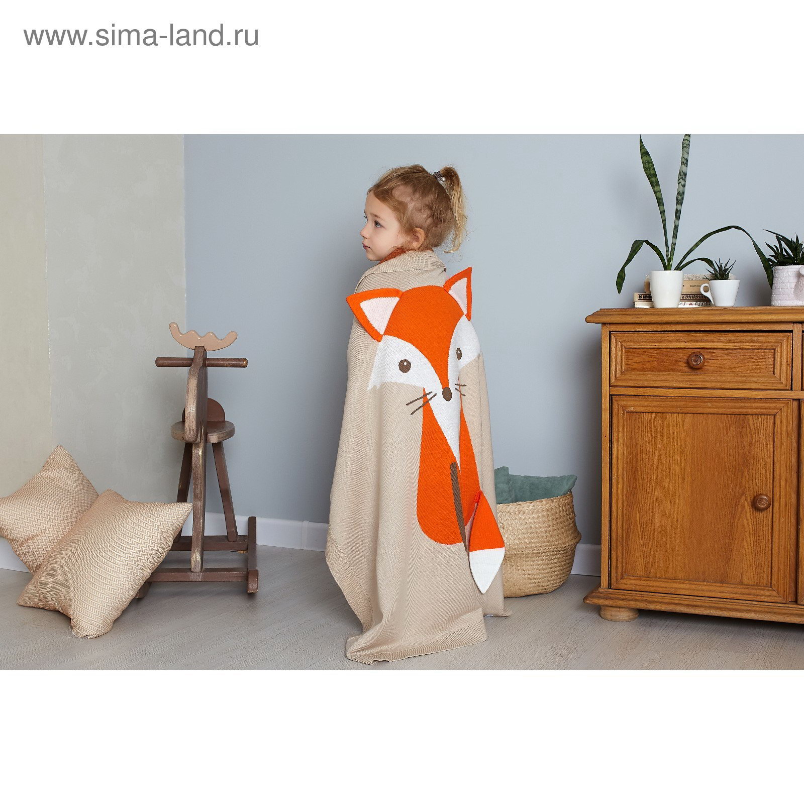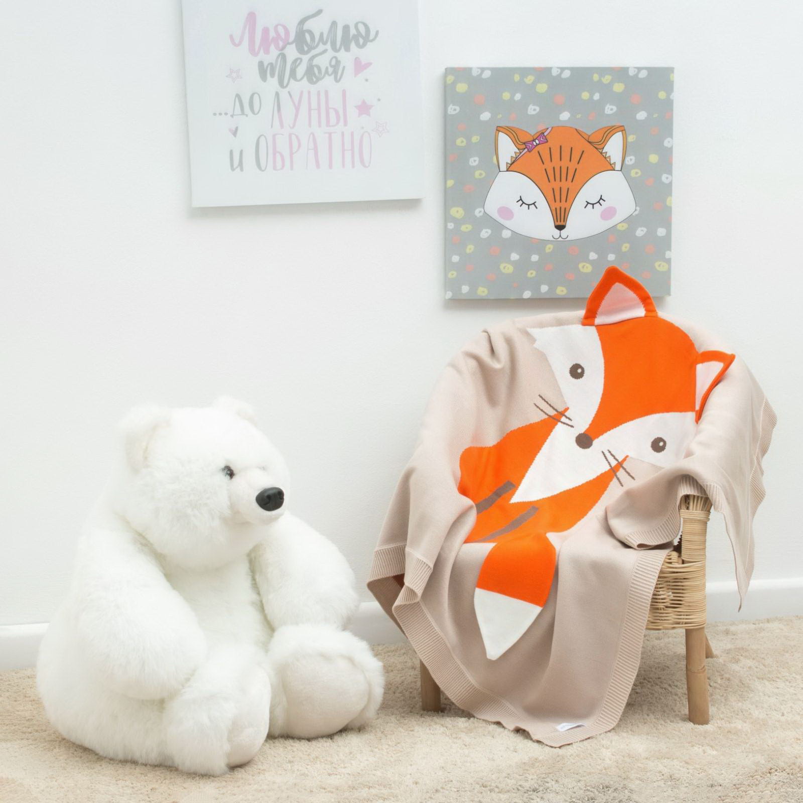 Вязаный плед Лисица, размер 90х90 см, цвет оранжевый, 90x90 см., Крошка Я, Россия
