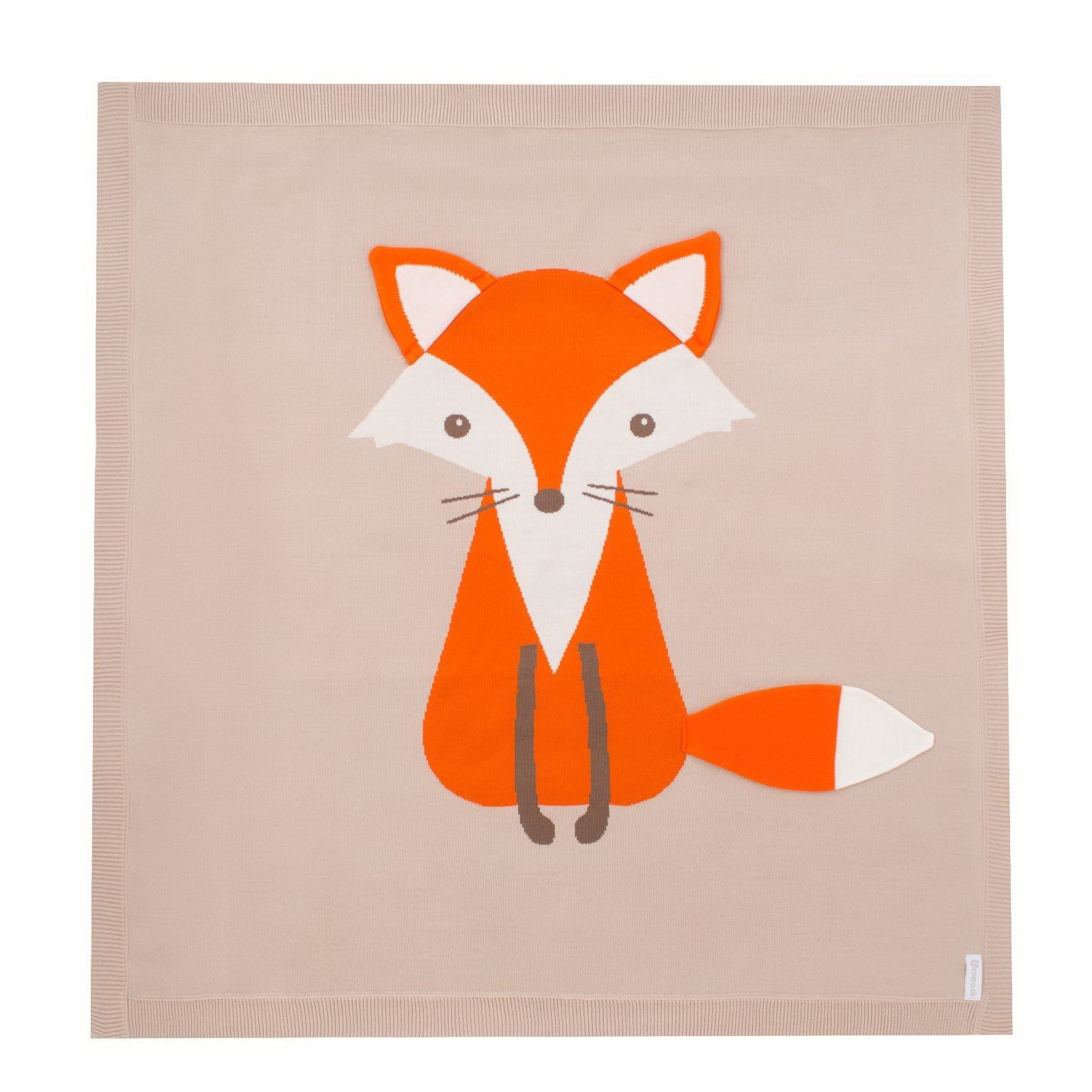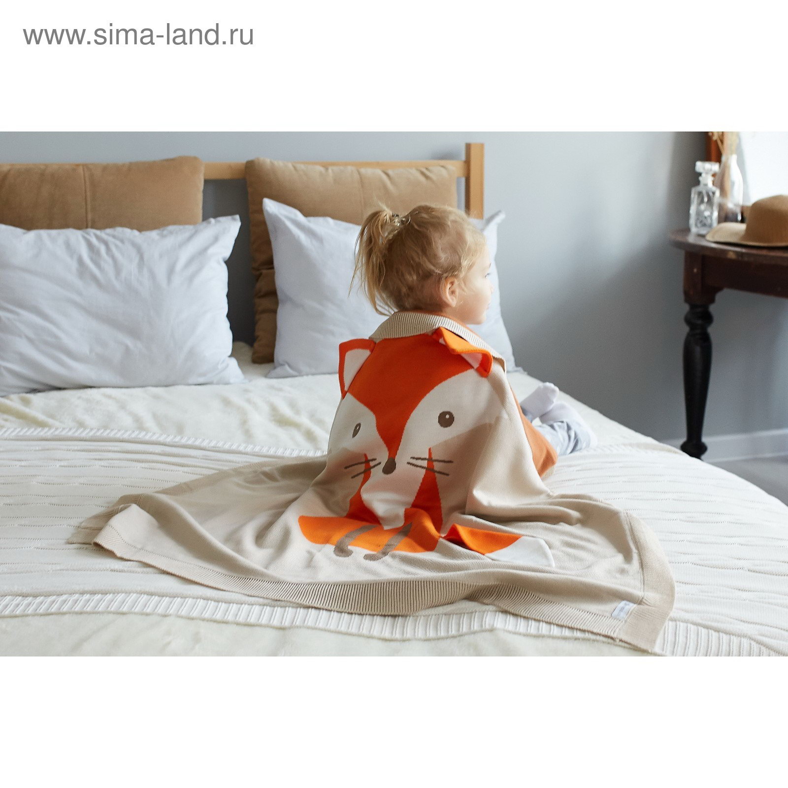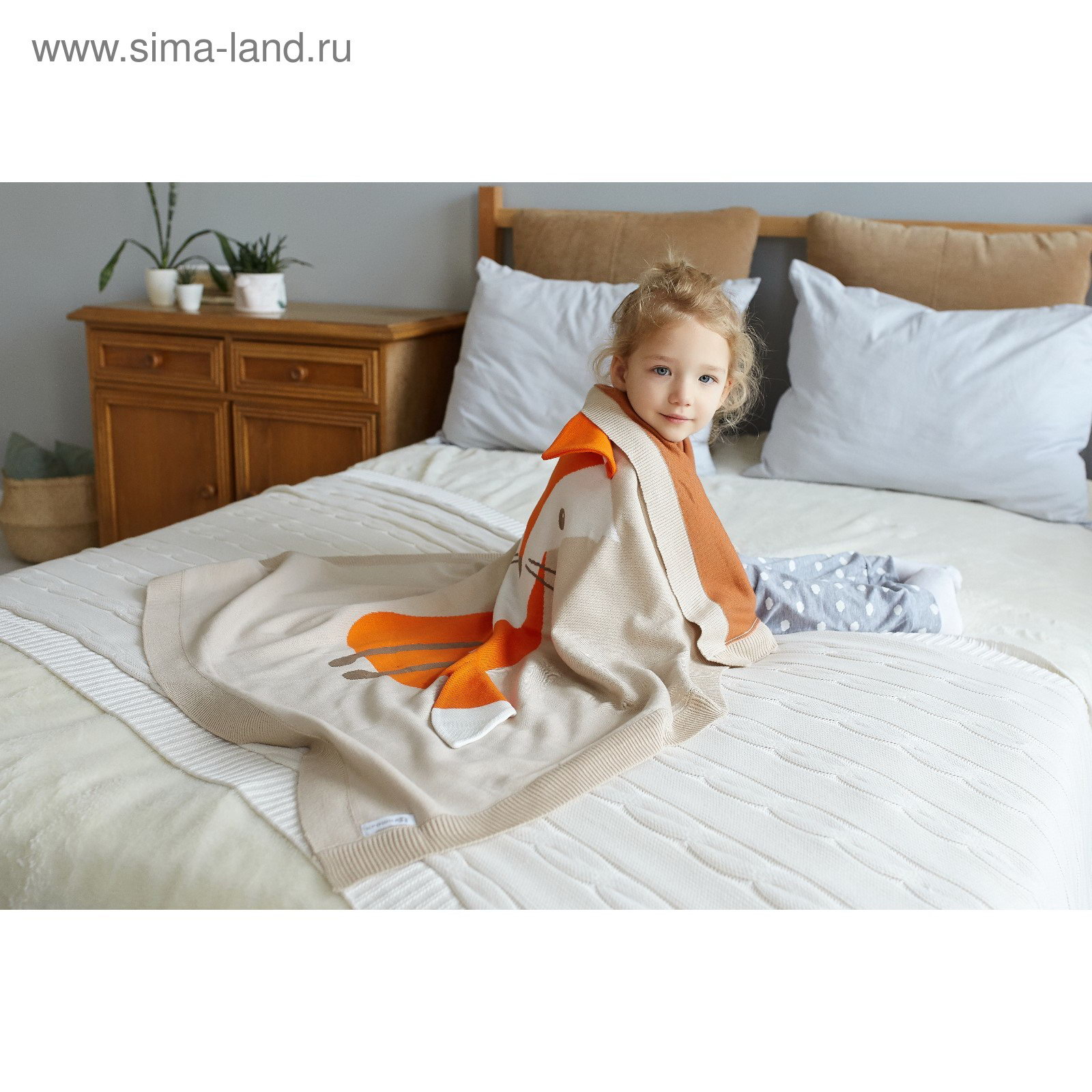 Вязаный плед Лисица, размер 90х90 см, цвет оранжевый, 90x90 см., Крошка Я, Россия