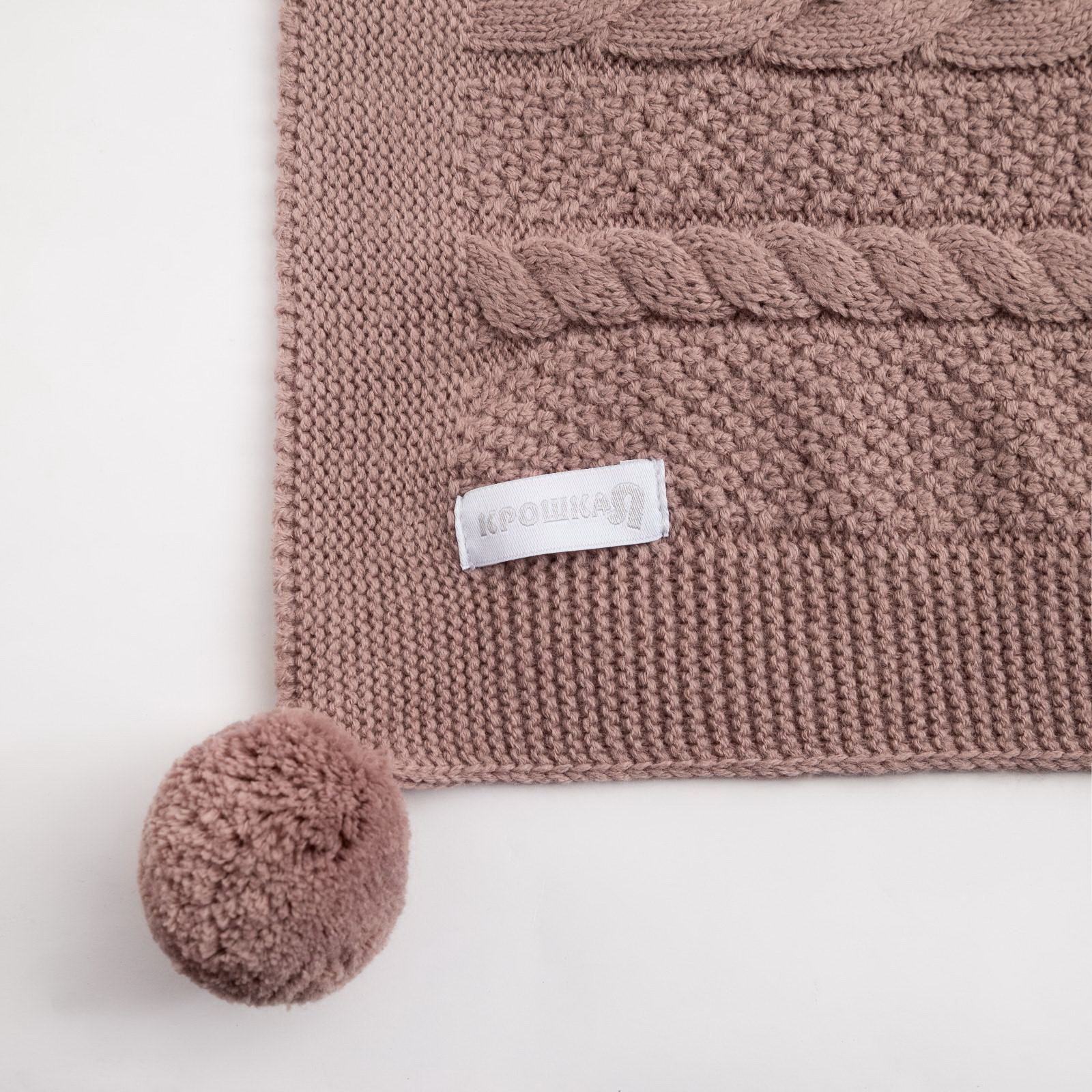 Вязаный плед Рисунок косичка, 90х90 см, коричневый, 90x90 см., Крошка Я, Россия