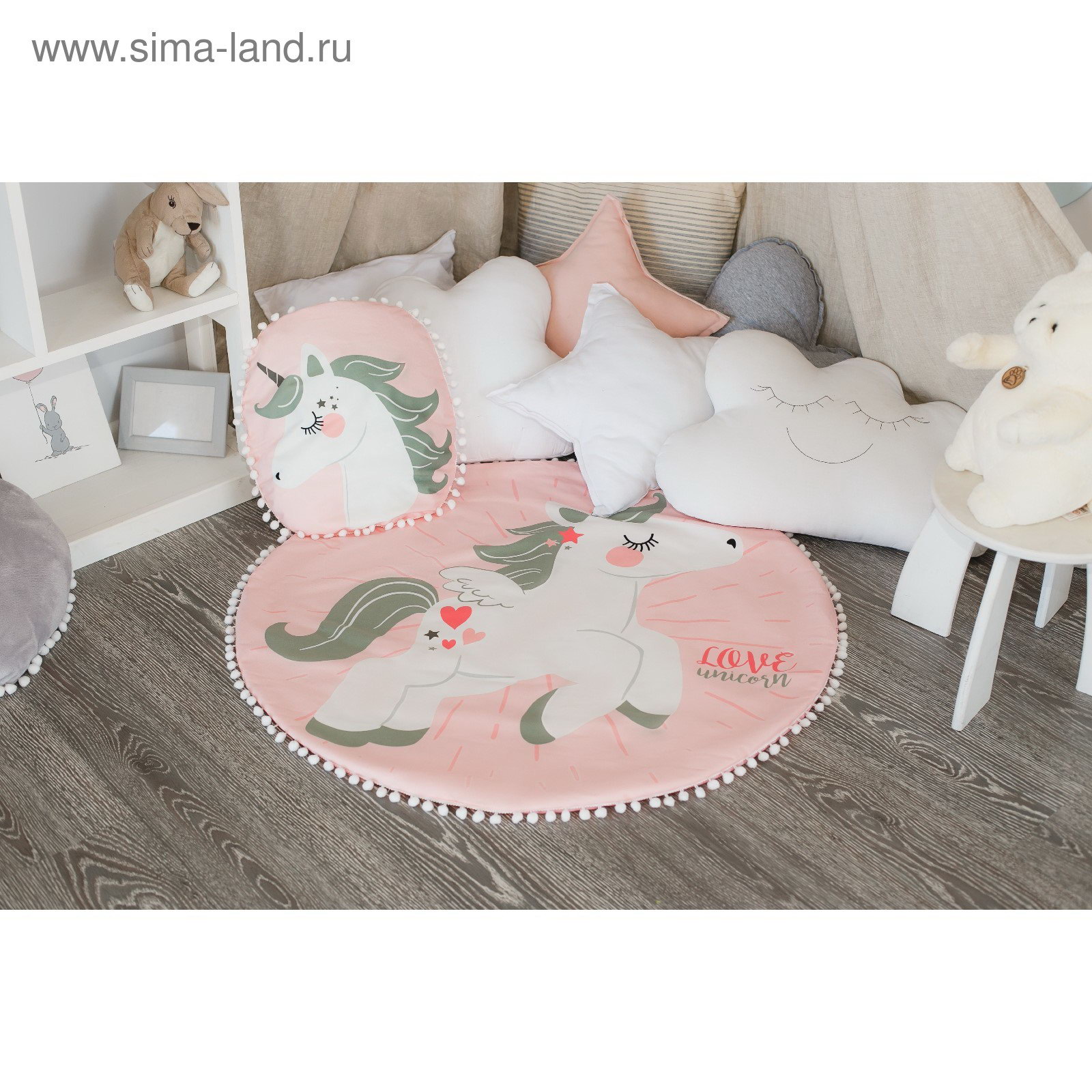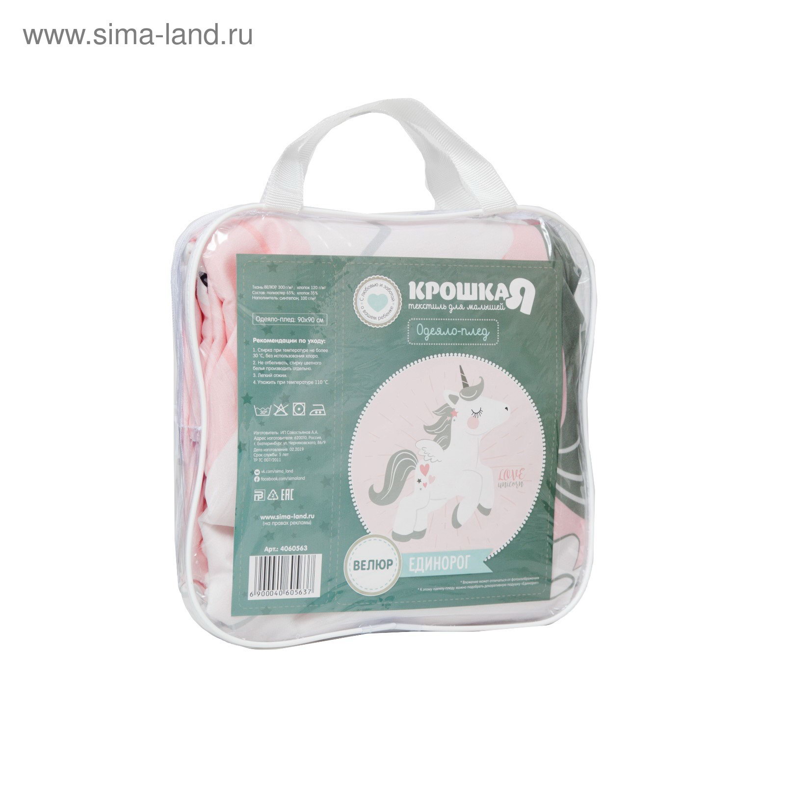 Одеяло-плед Единорог 90х90 см, велюр, 100% пэ, синтепон 100г/м2, 90x90 см., Крошка Я, Россия