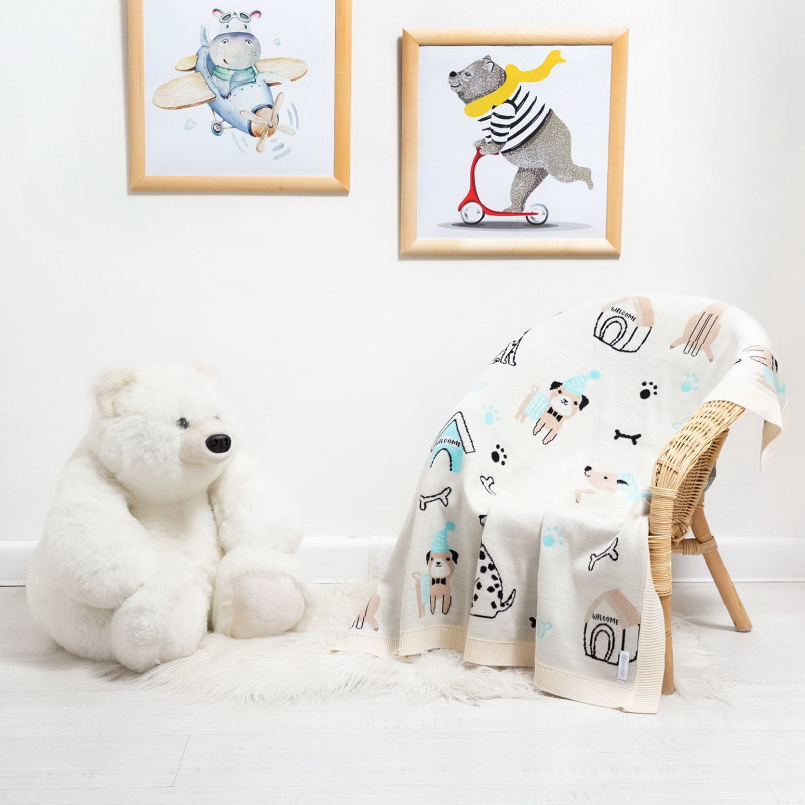 Вязаный плед Happy dogs, 90х90 см, Крошка Я, Россия