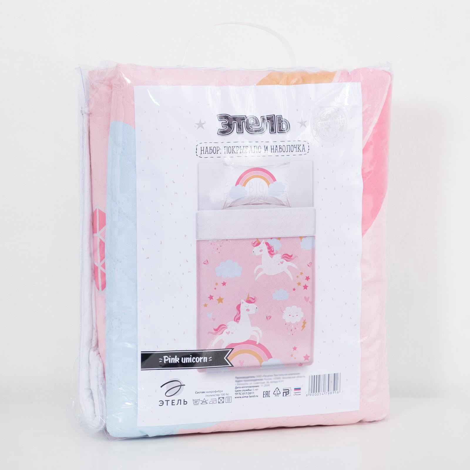 Комплект 1.5-спальный Pink unicorn, покрывало детское 145x210 см, наволочка 40x60 см, микрофибра, Этель, Россия